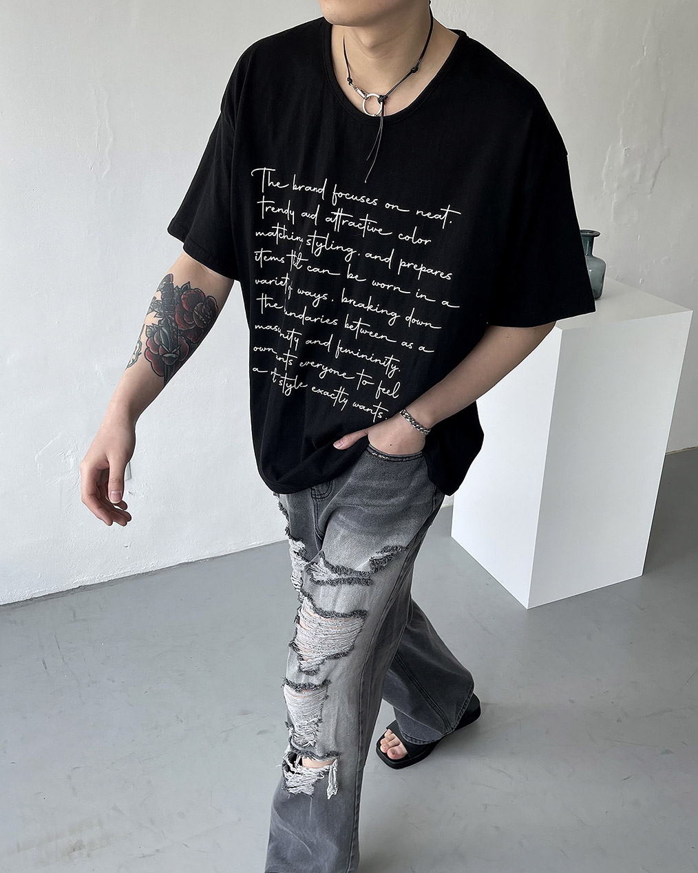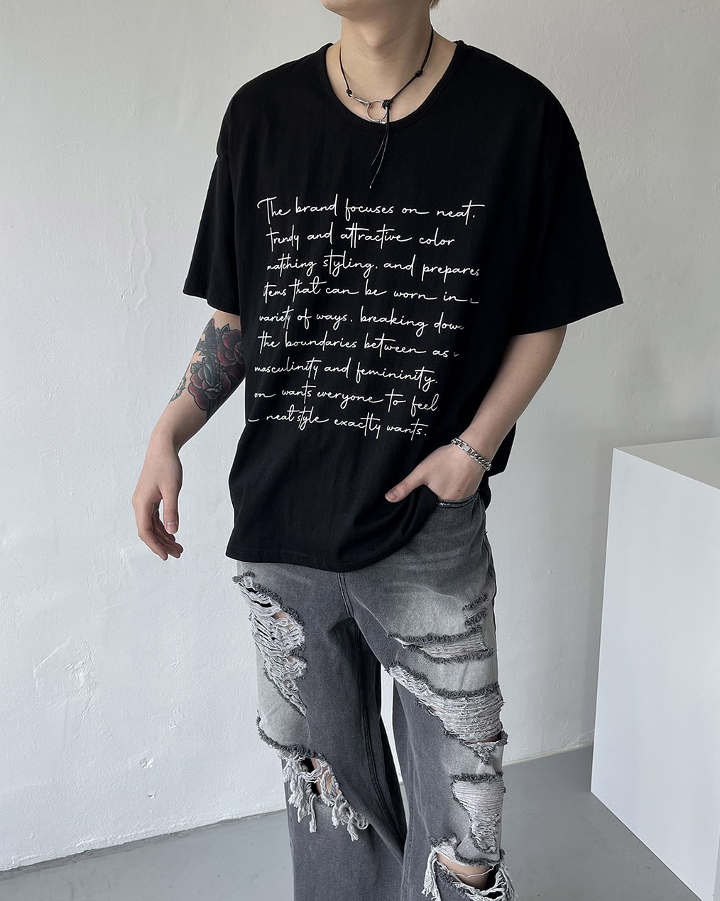 - 넉넉한 오버핏에 깊은 유넥 디테일로 편하게 착용 가능