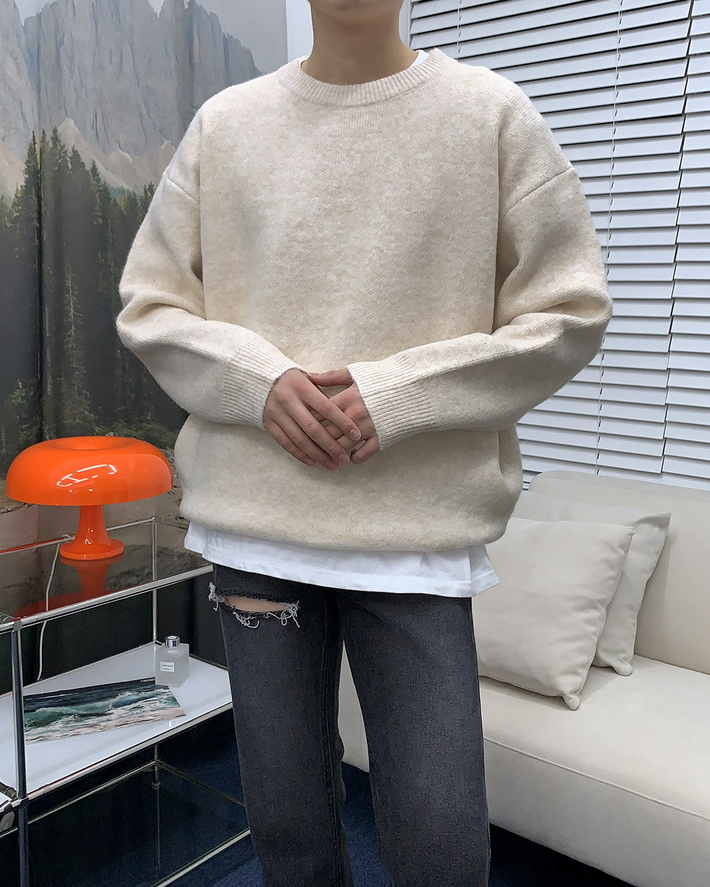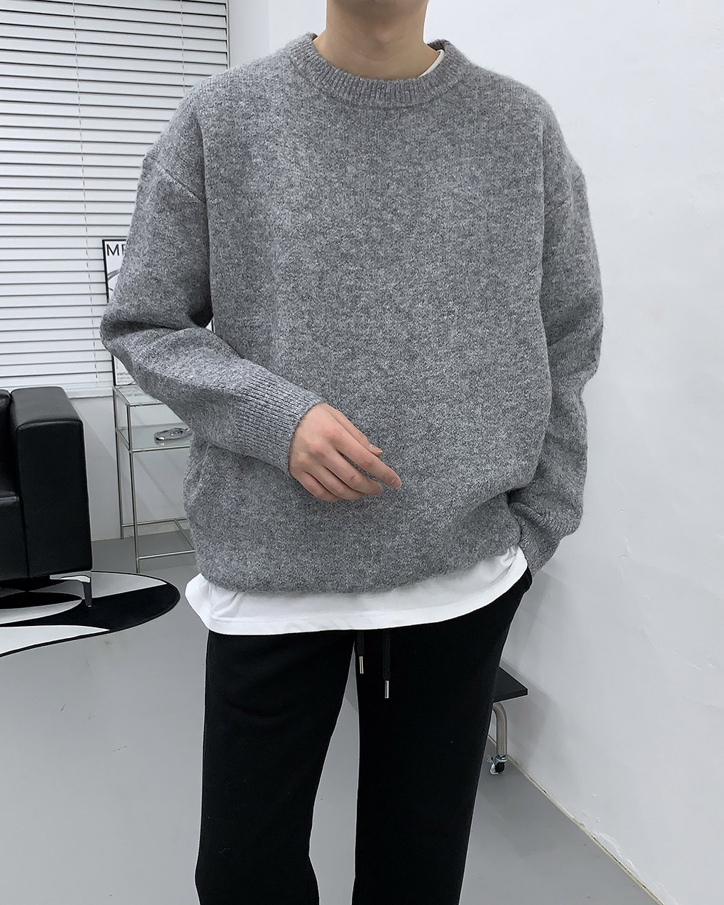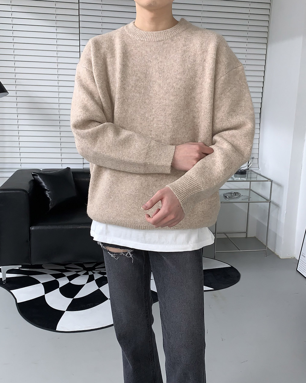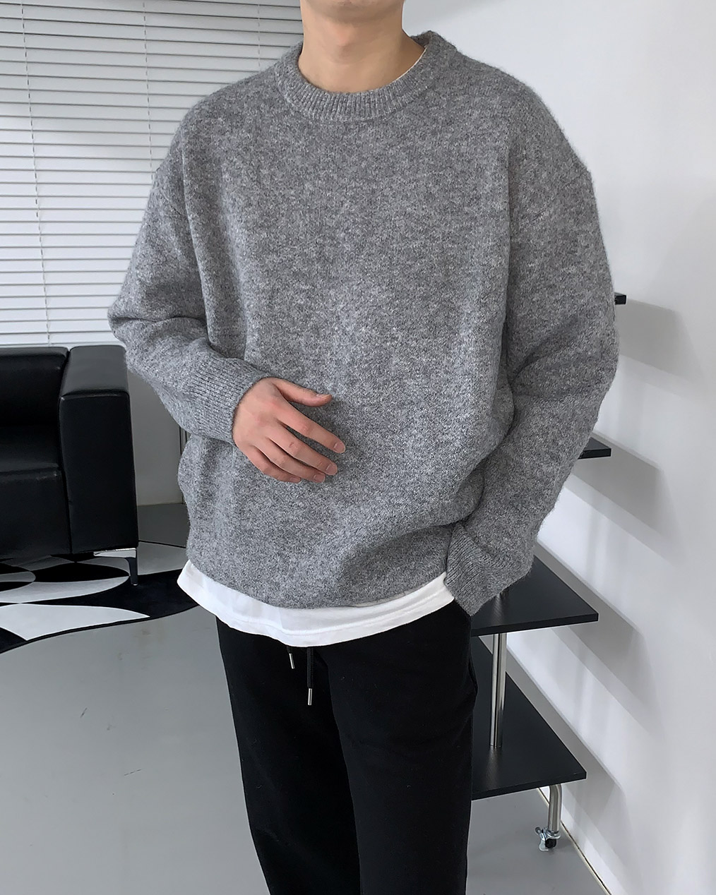- 루즈하게 떨어지는 오버핏 울 니트