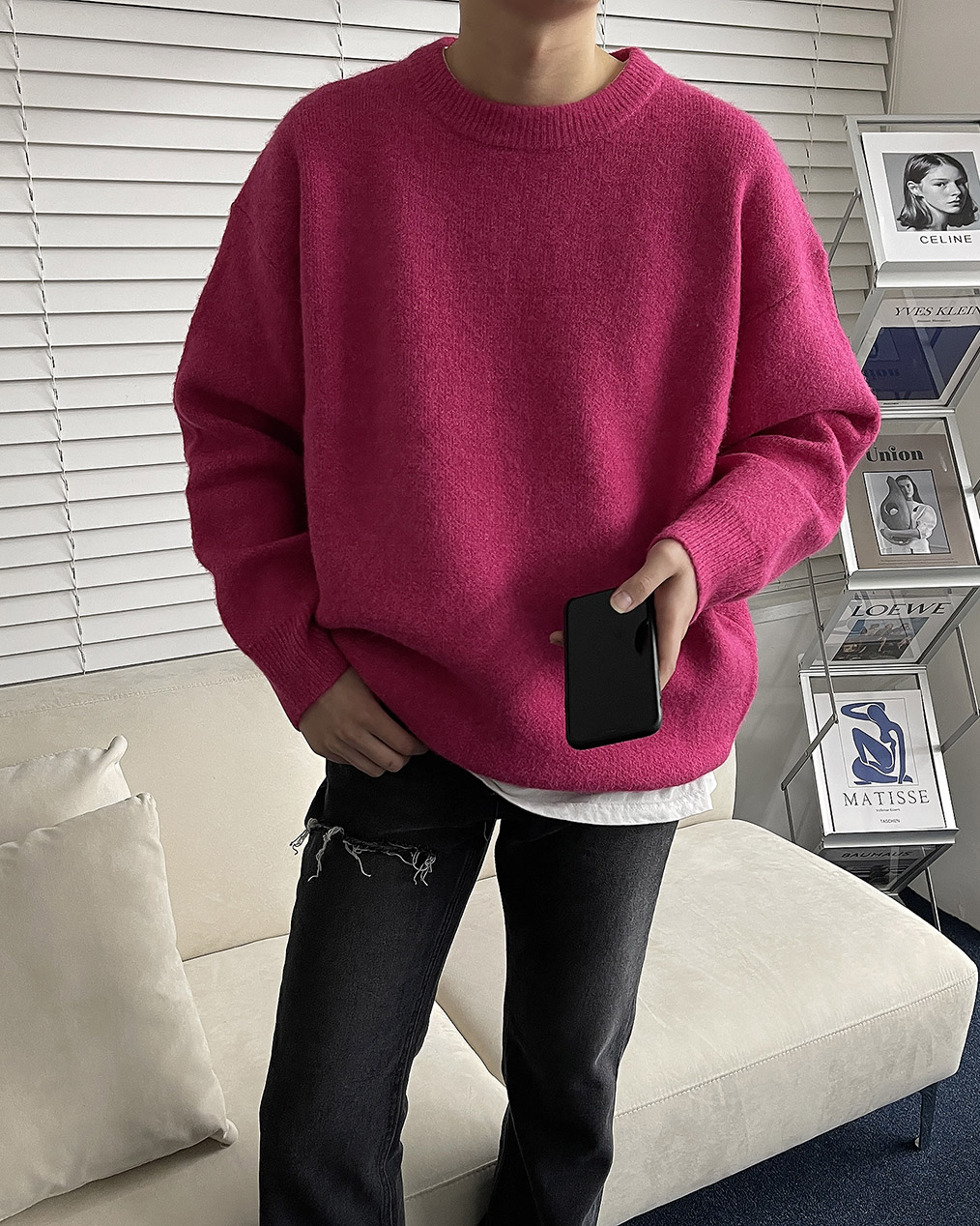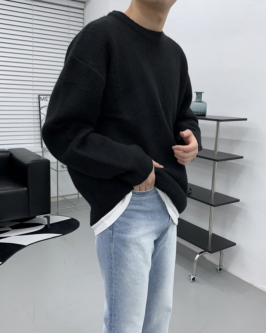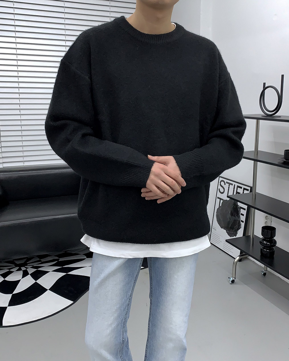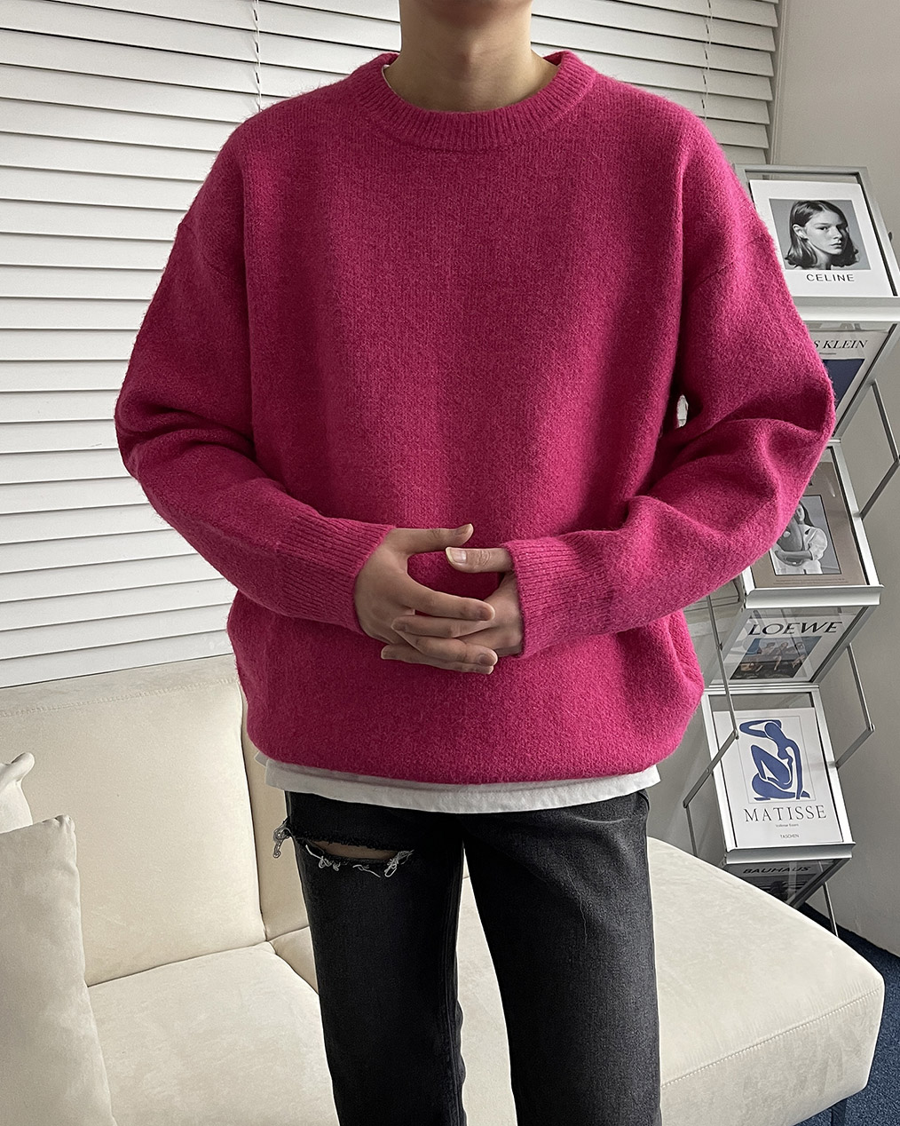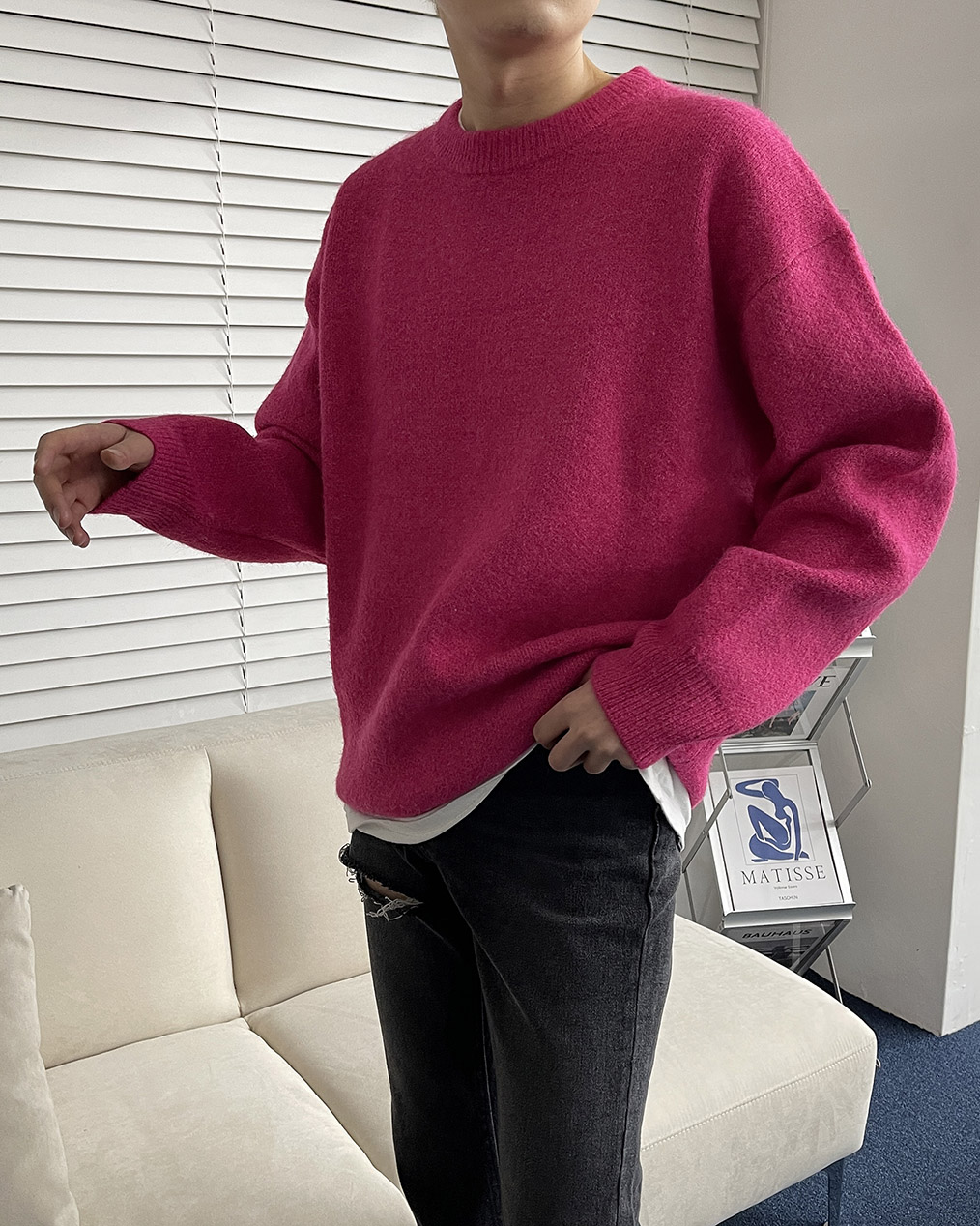 - 루즈하게 떨어지는 오버핏 울 니트