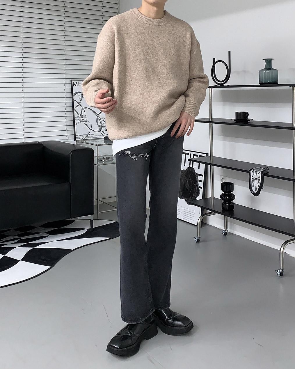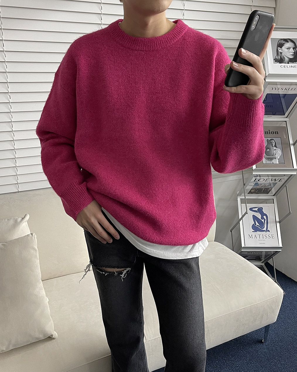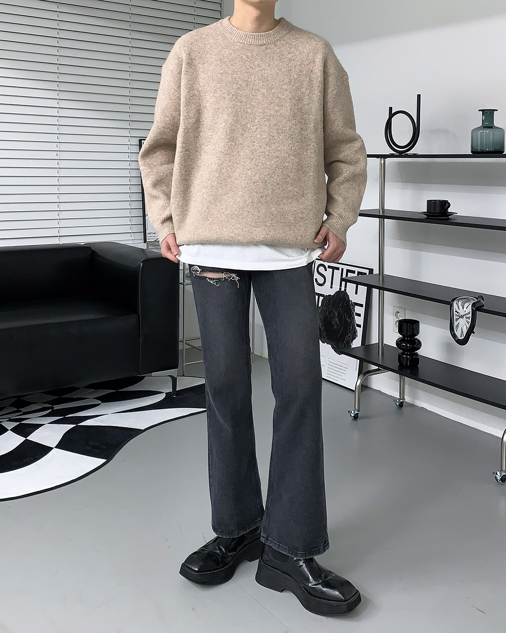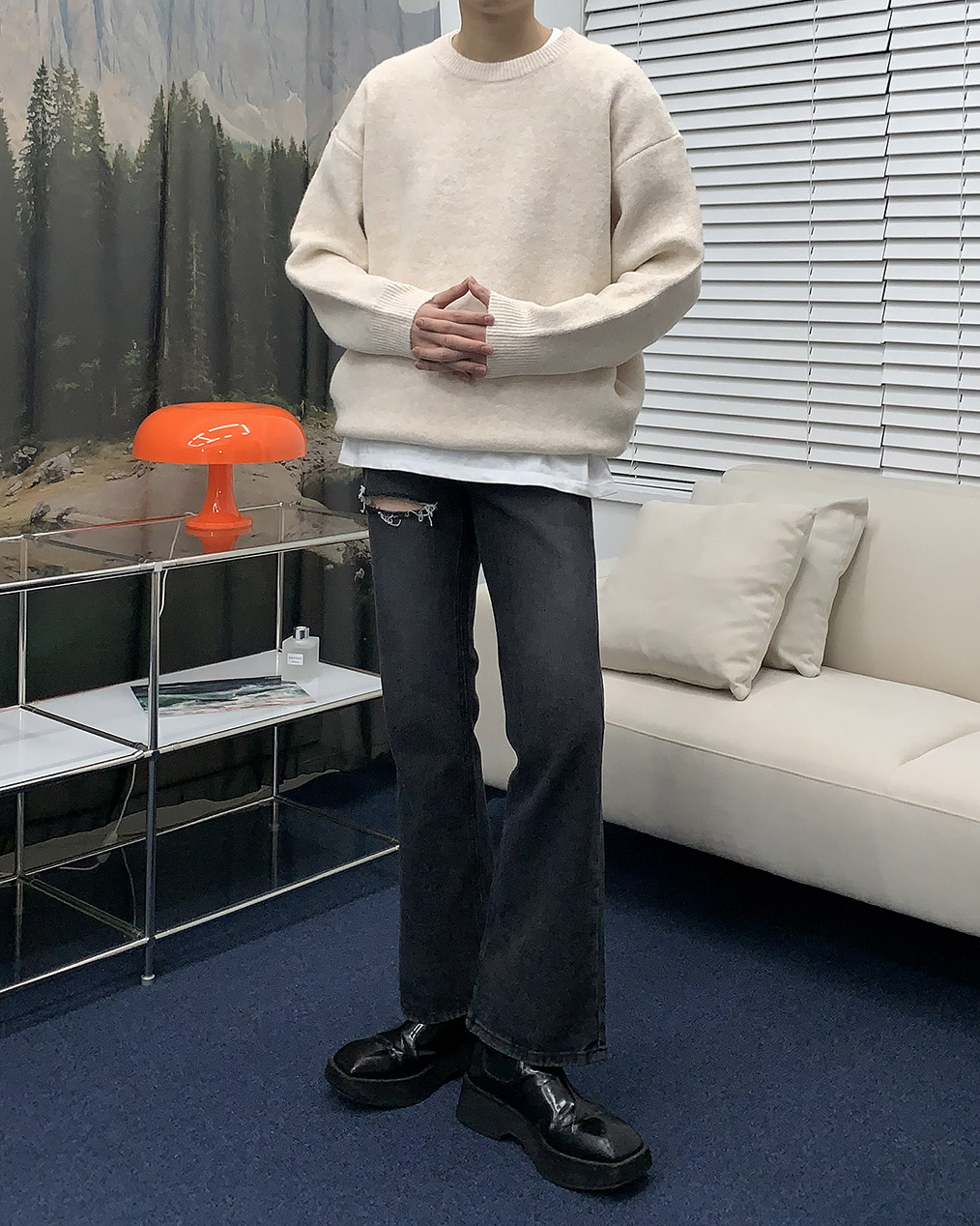 - 루즈하게 떨어지는 오버핏 울 니트