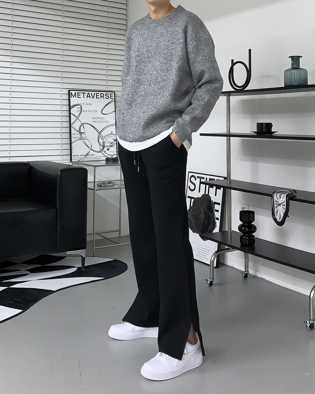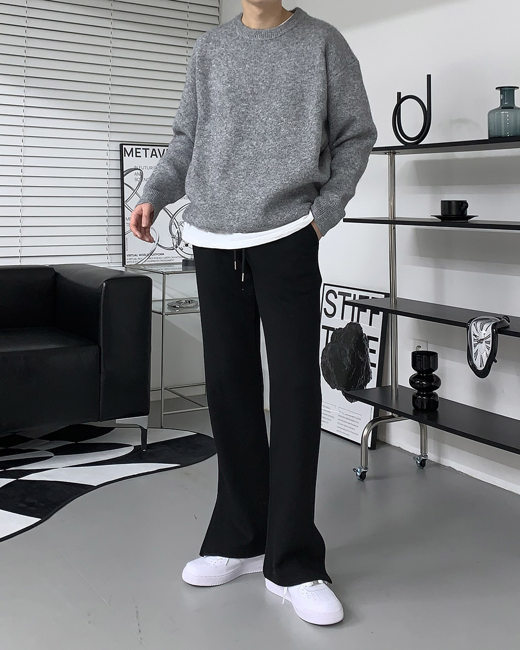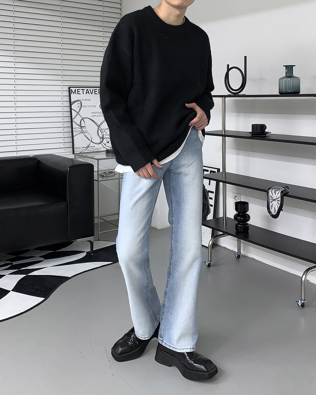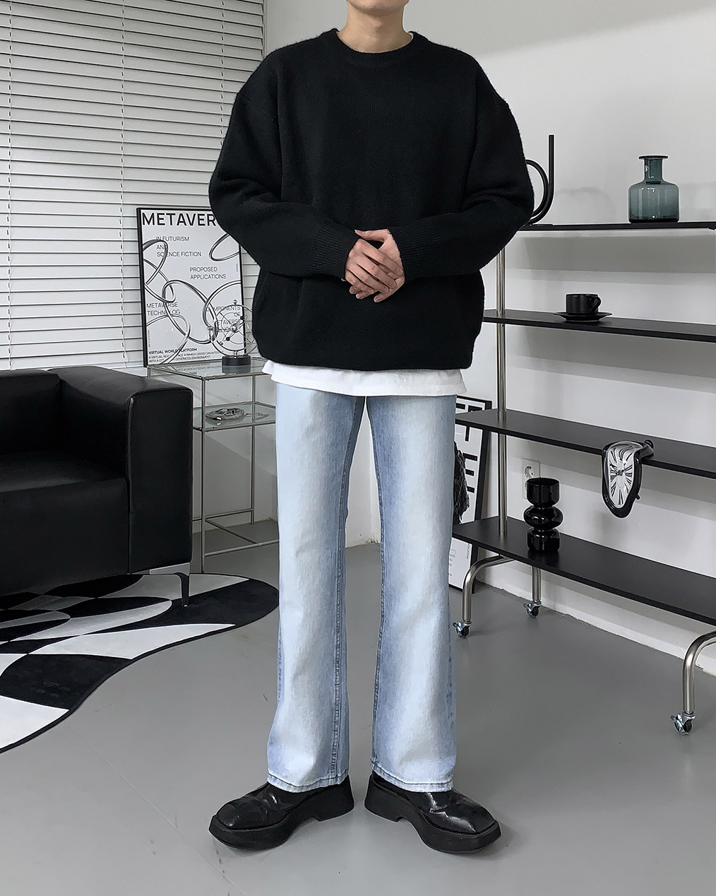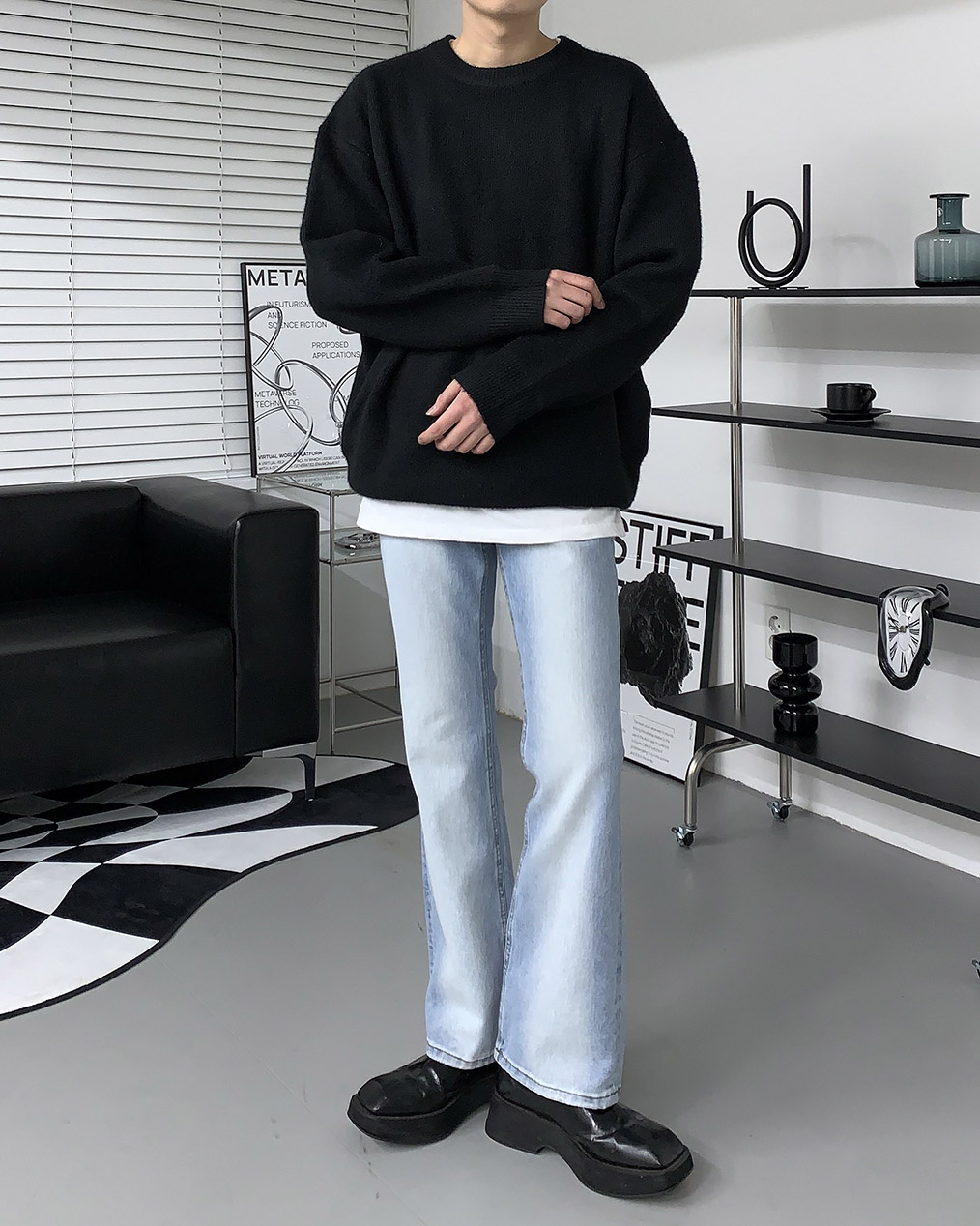 - 루즈하게 떨어지는 오버핏 울 니트