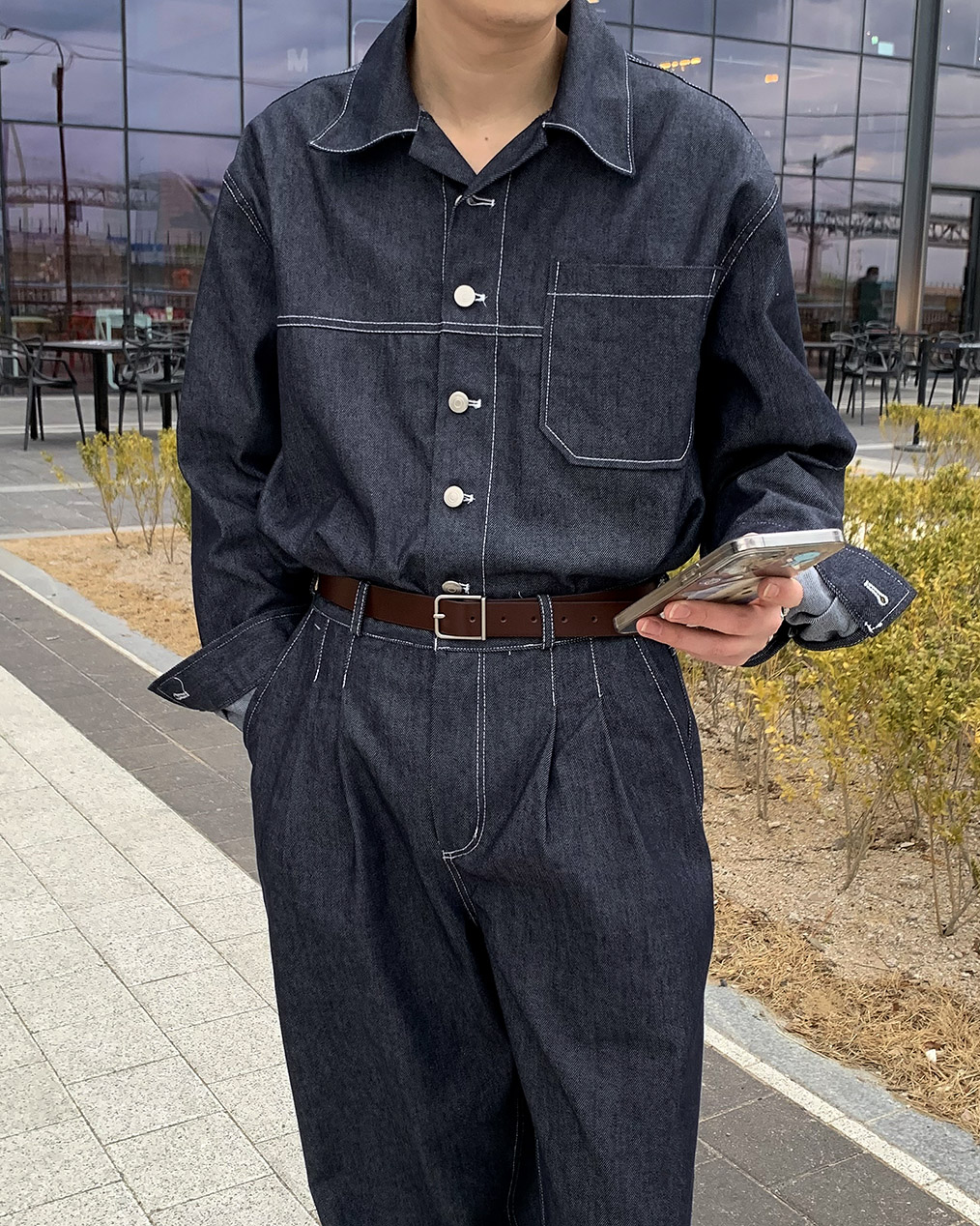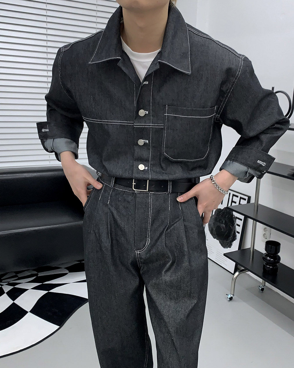 - 스티치 디테일의 데님 셋업