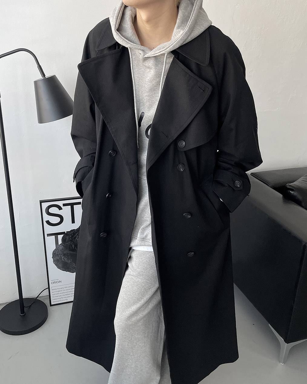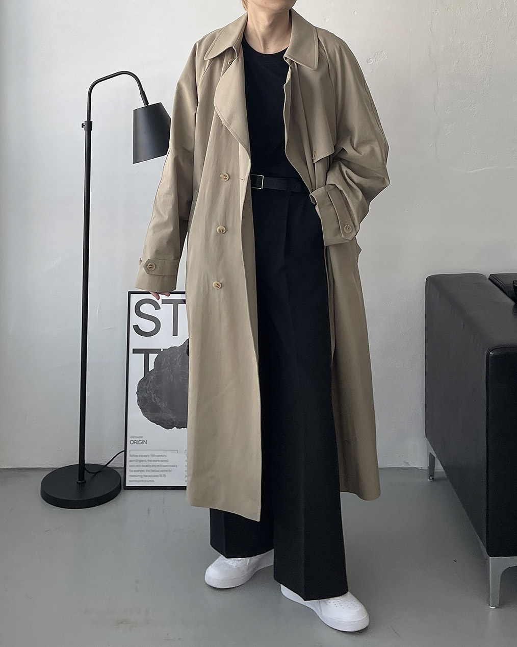 - 간절기 착용하기 좋은 오버핏 롱 트렌치 코트