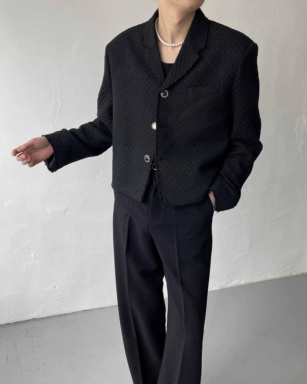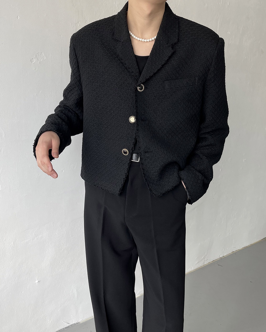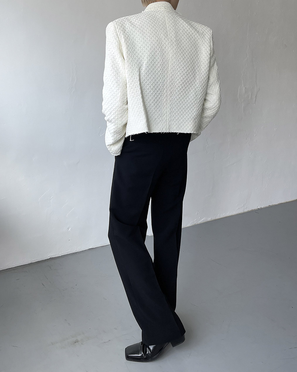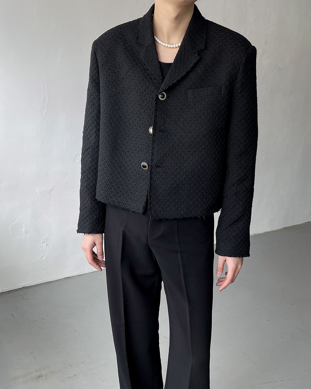 - 크롭 기장의 트위드 자켓