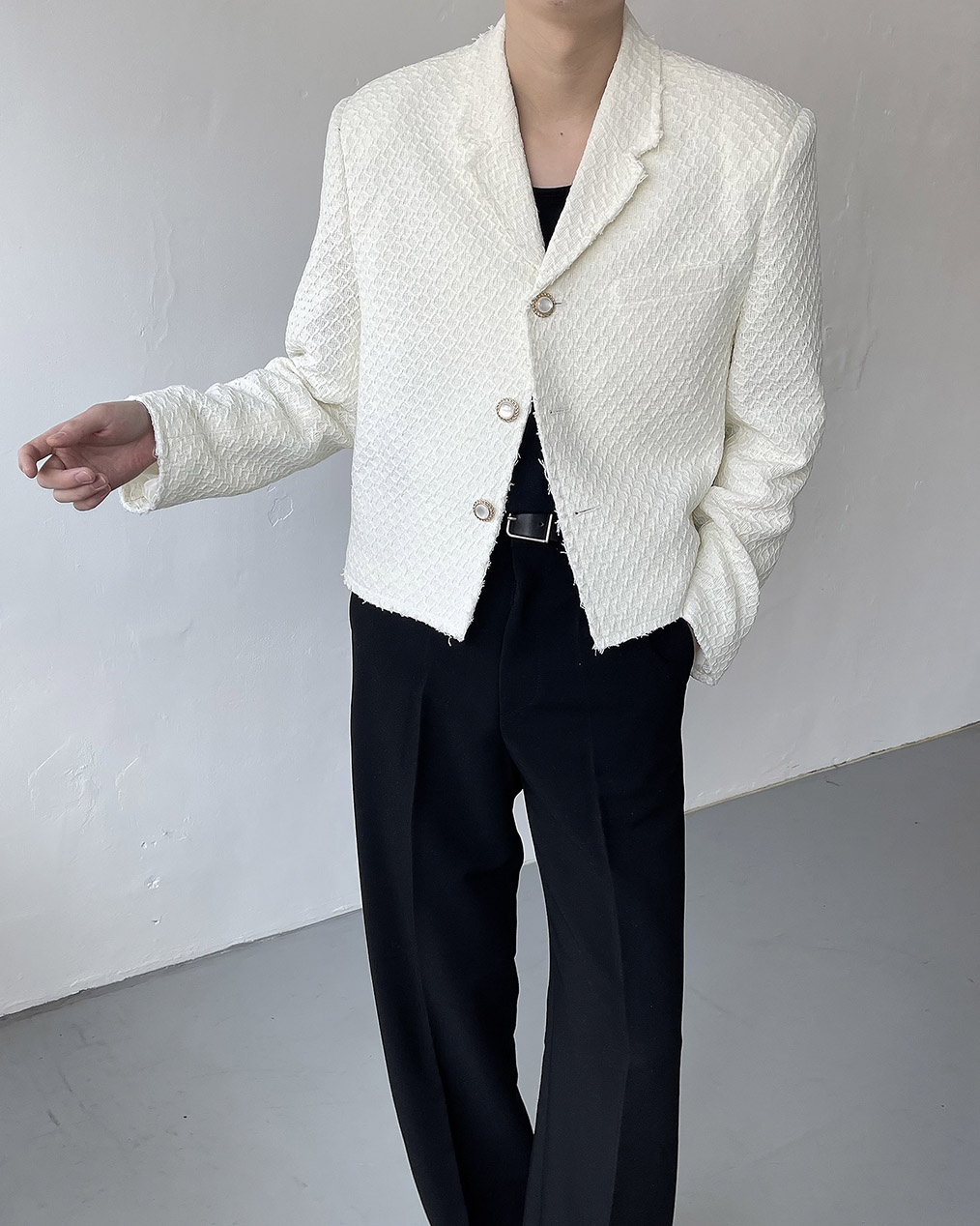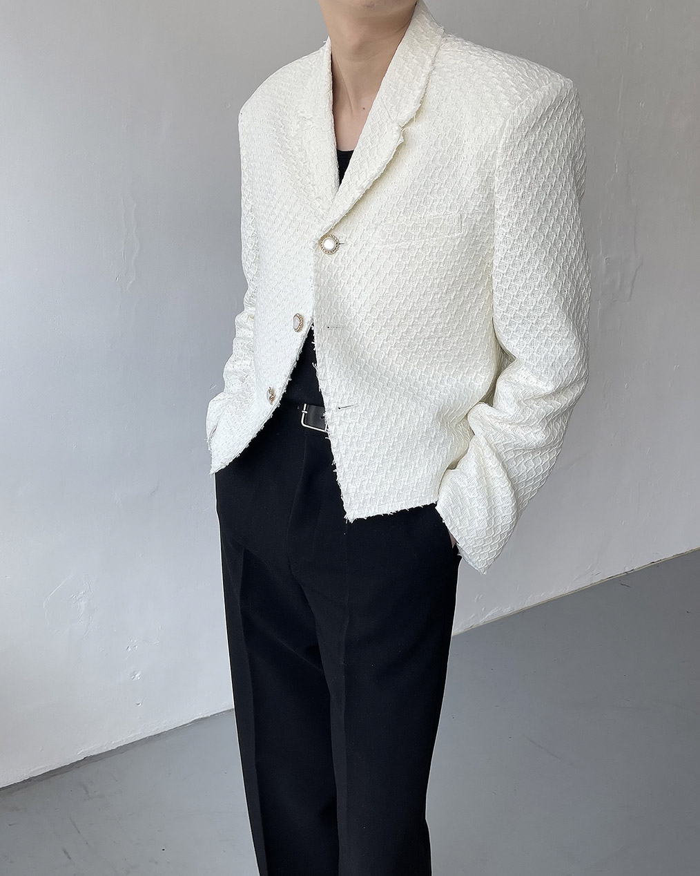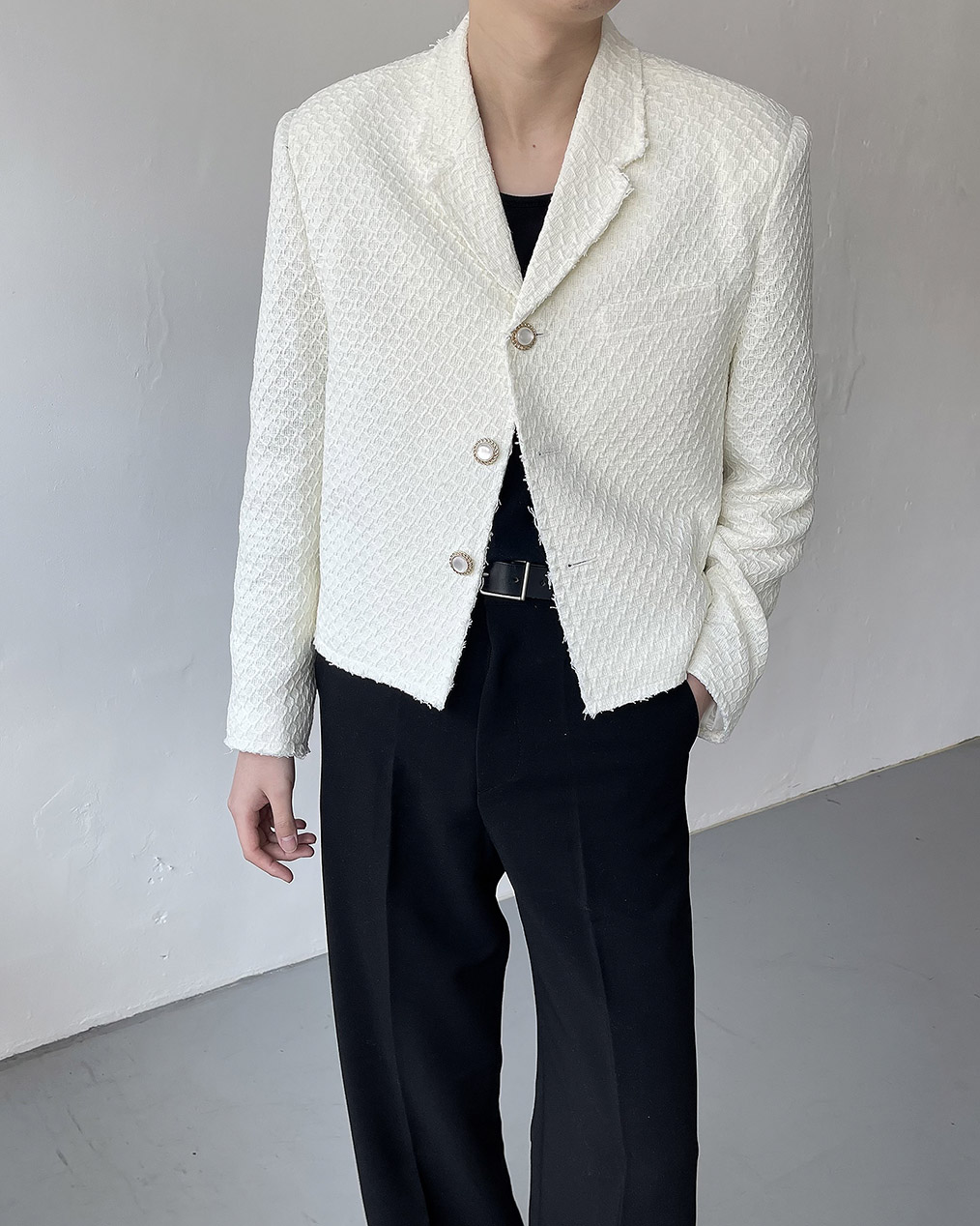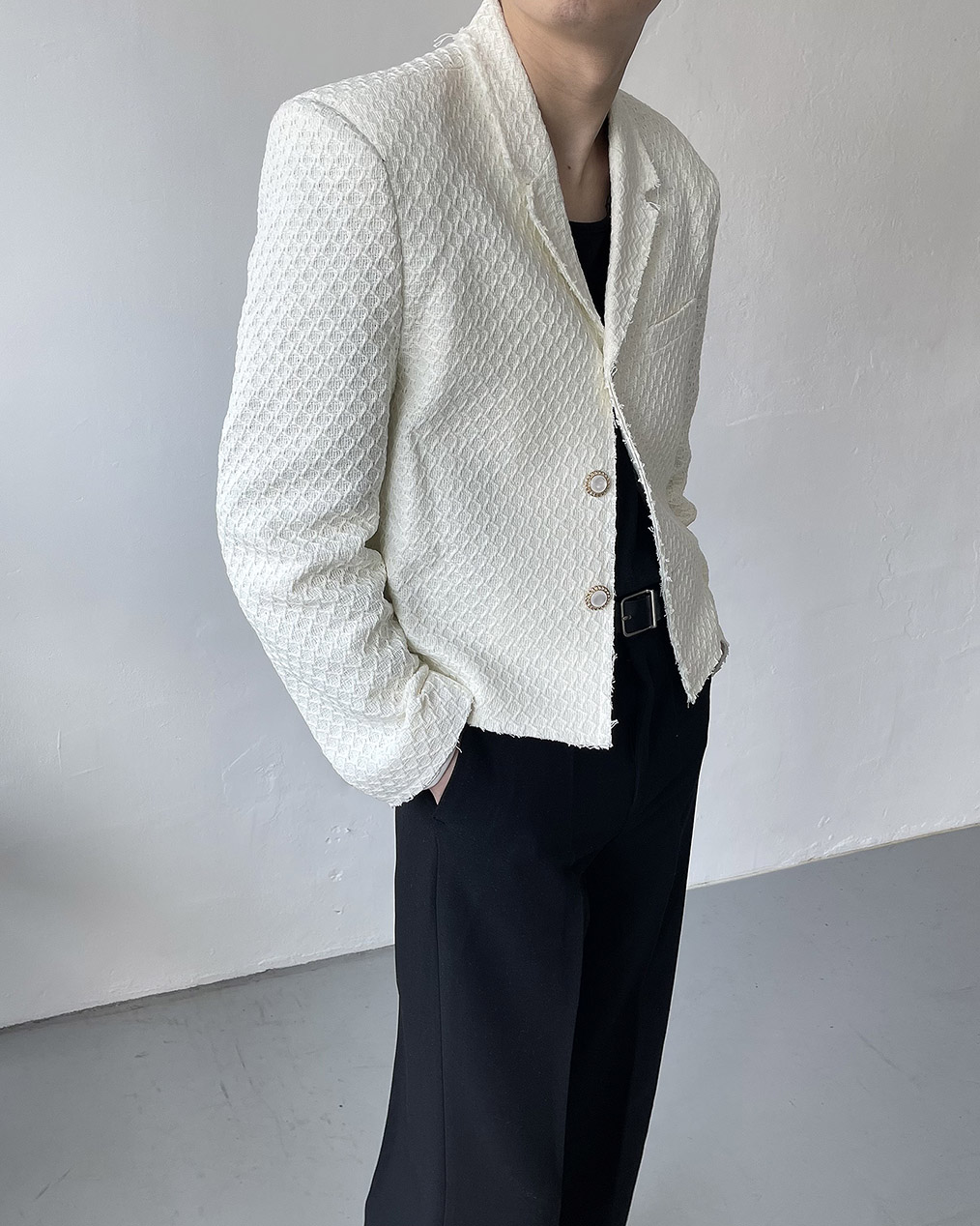 - 크롭 기장의 트위드 자켓