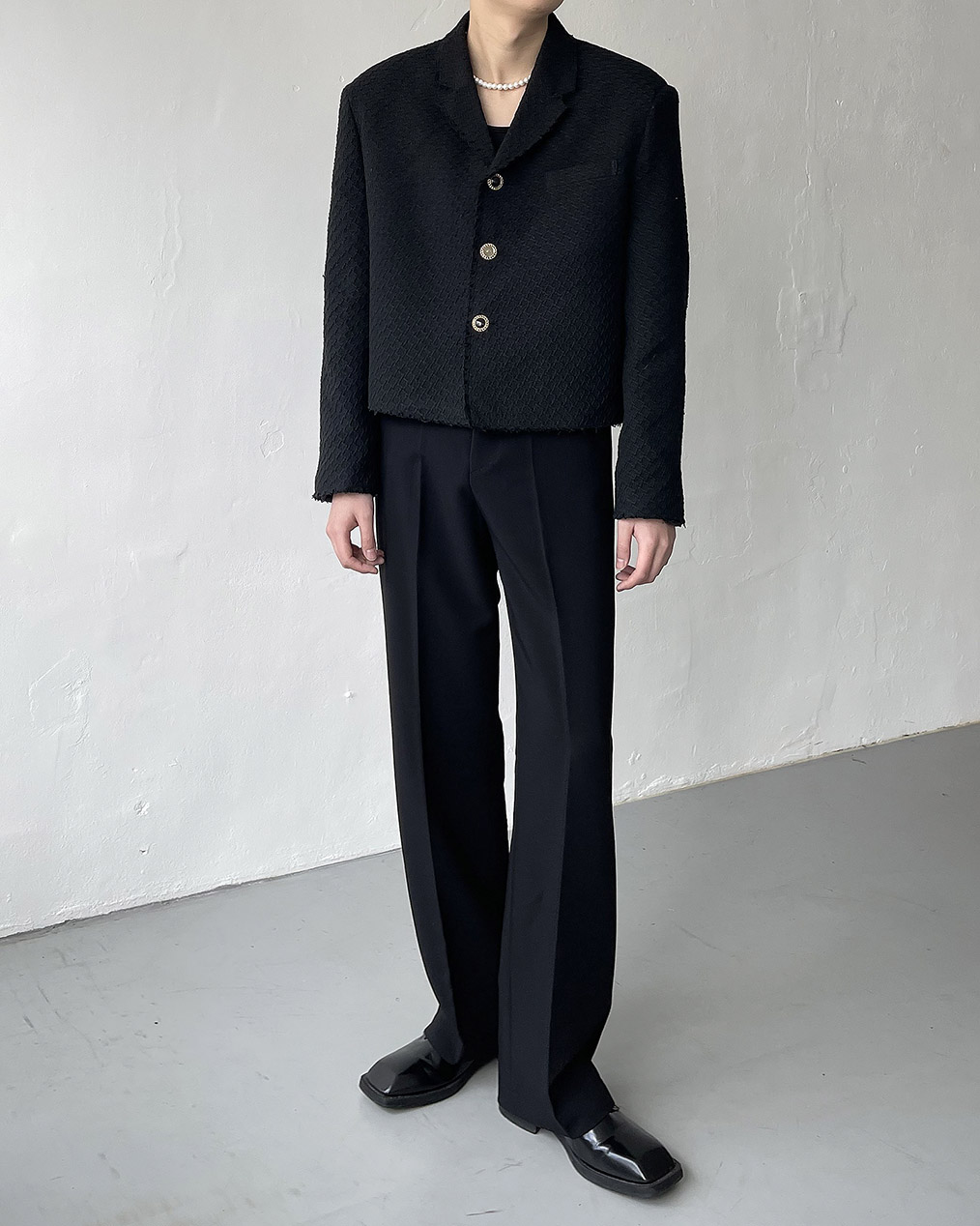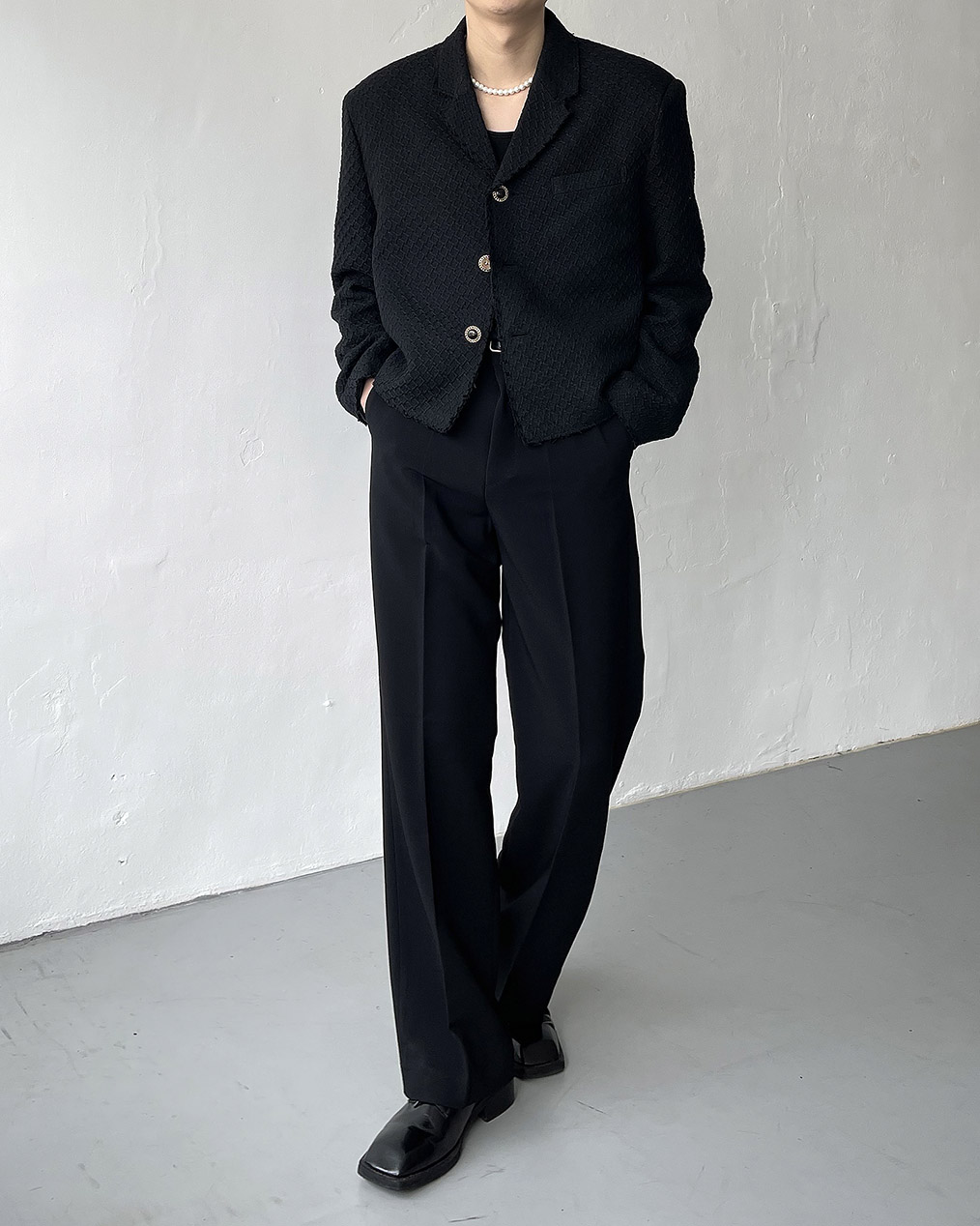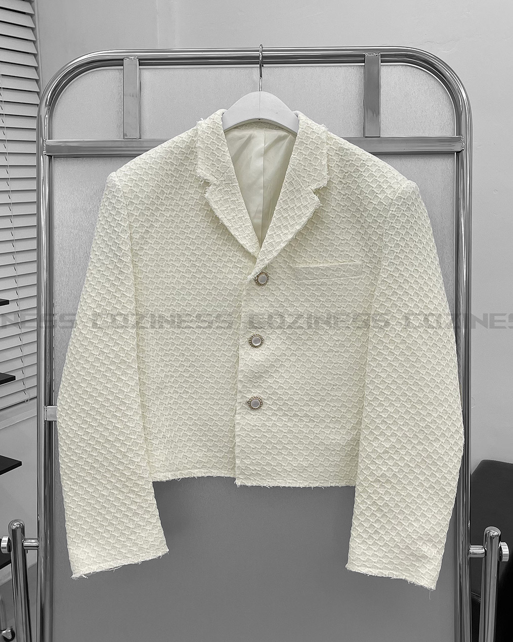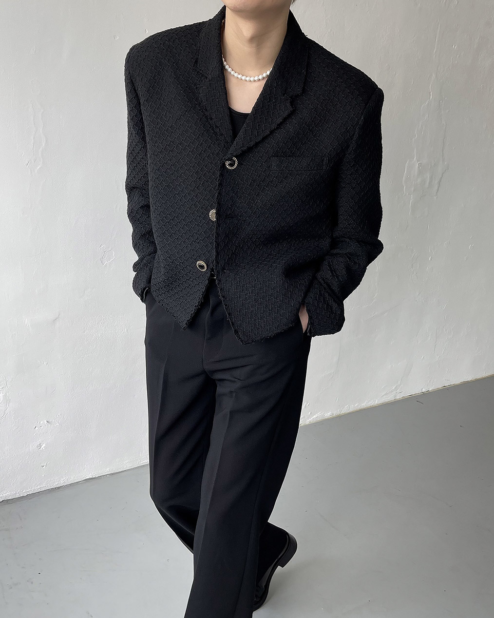 - 크롭 기장의 트위드 자켓