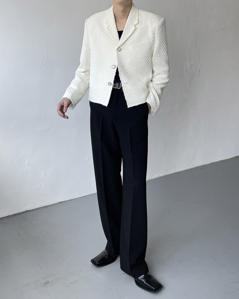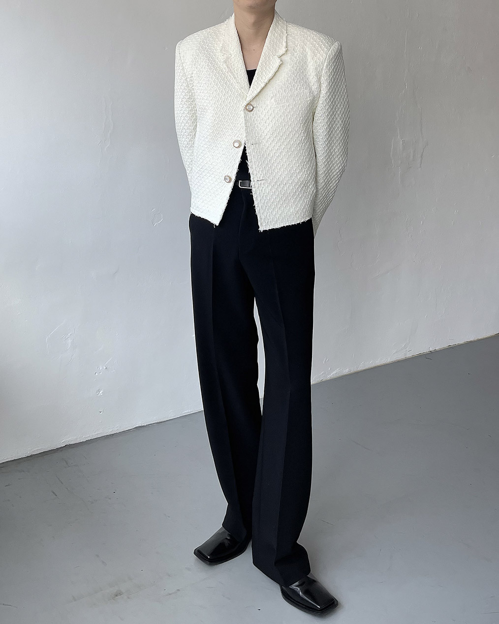 - 과하지 않은 어깨 패드가 체형 보완, 핏 잡아줌