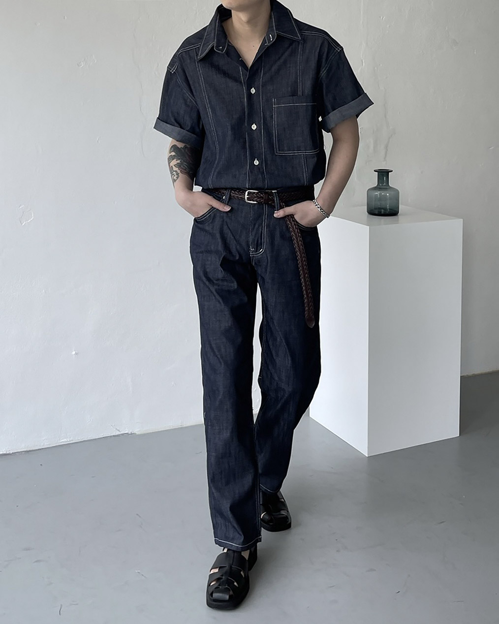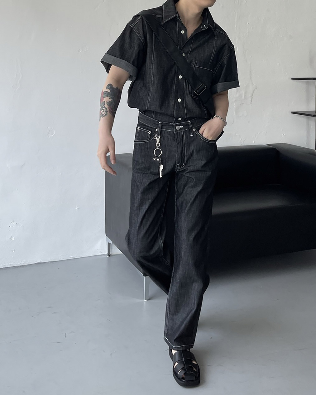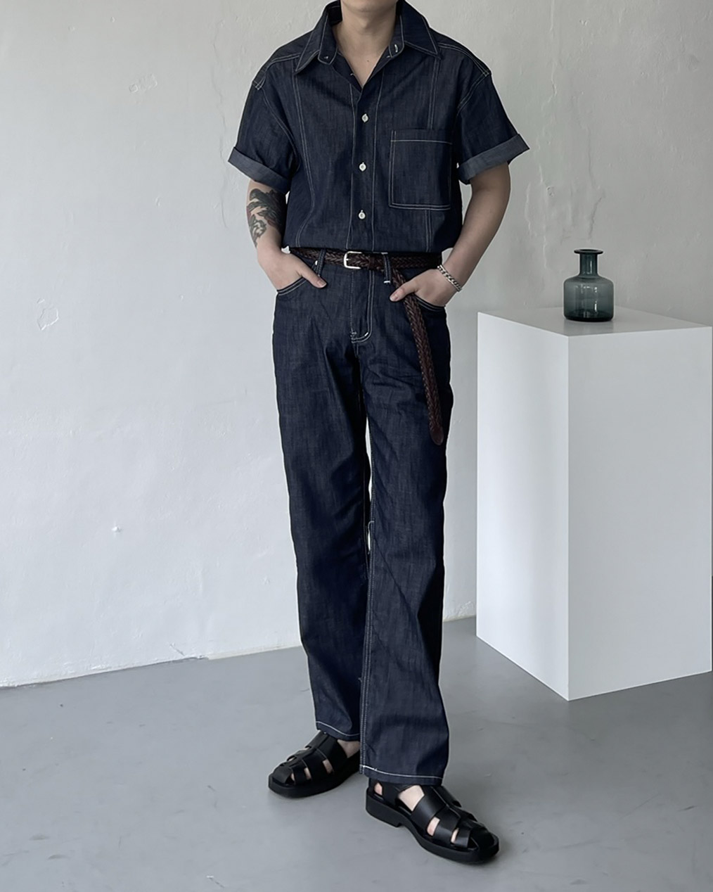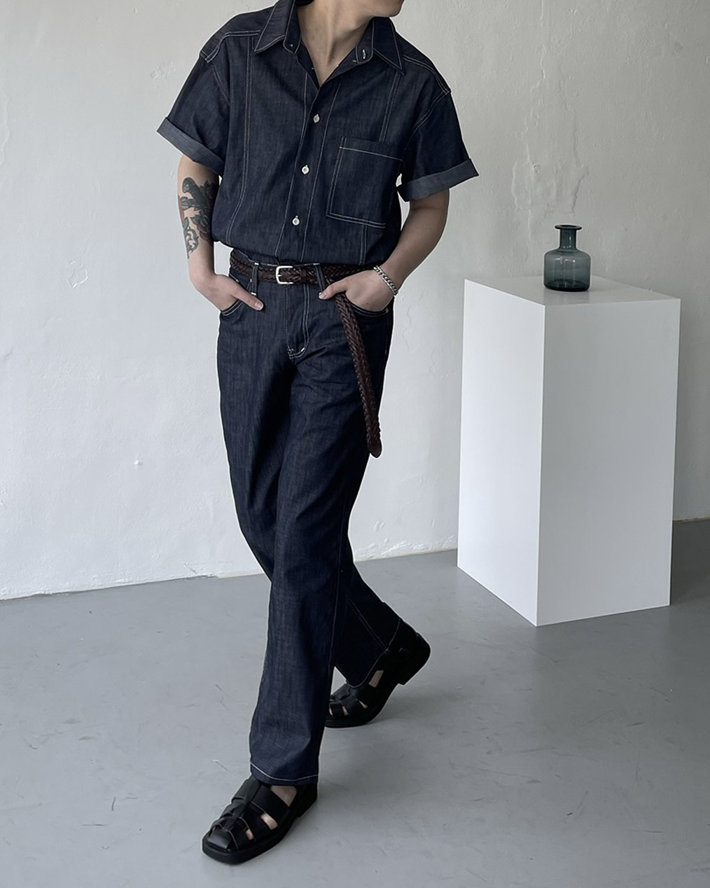 175cm 60kg / 팬츠 S size, 반팔 셔츠 Free Size 착용