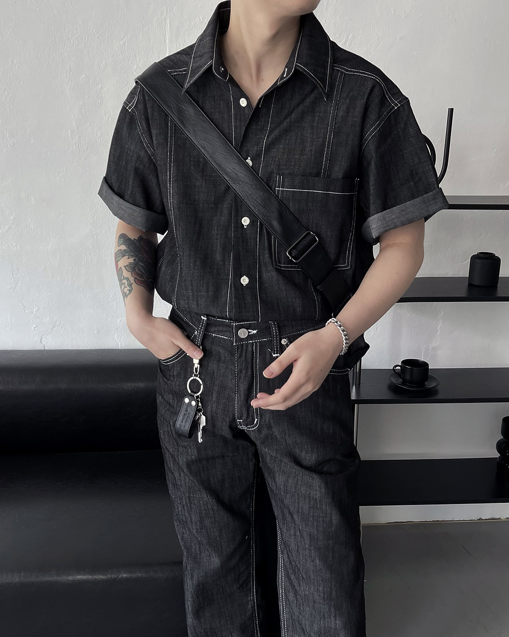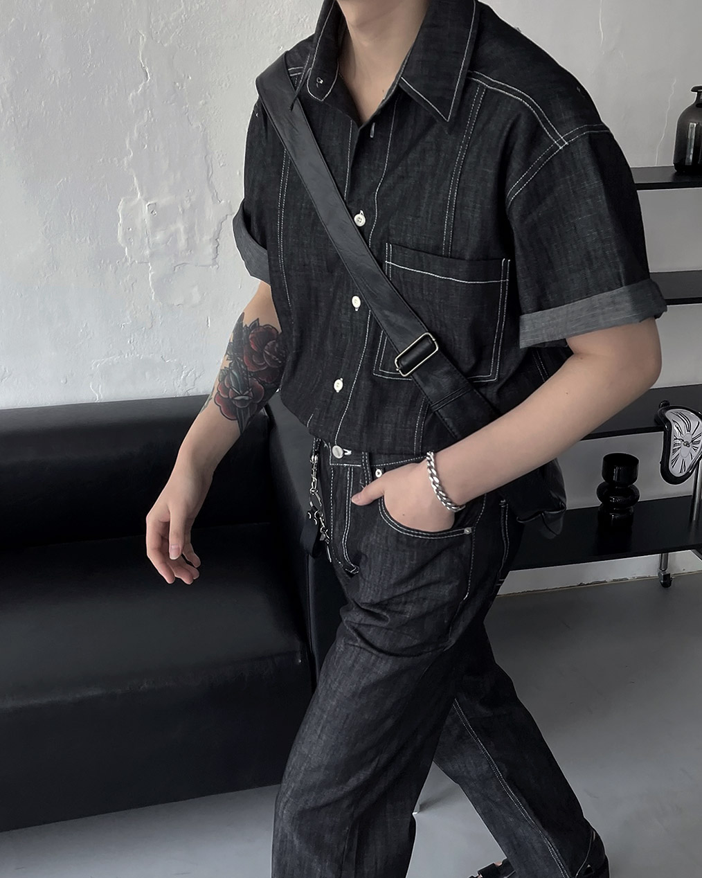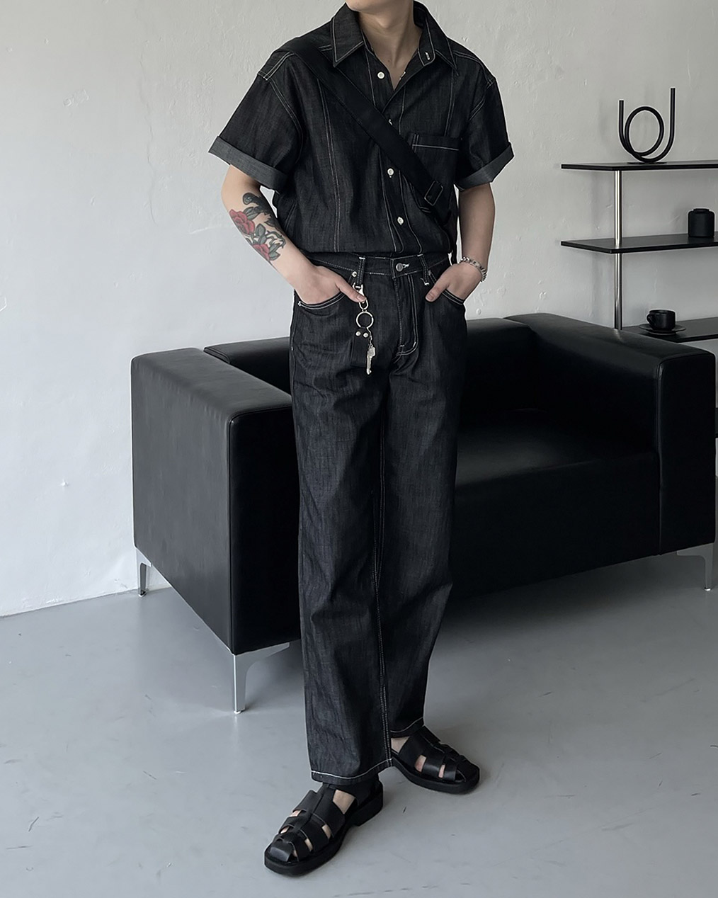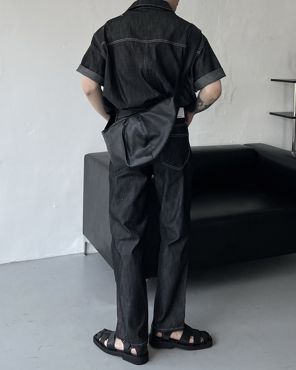 175cm 60kg / 팬츠 S size, 반팔 셔츠 Free Size 착용