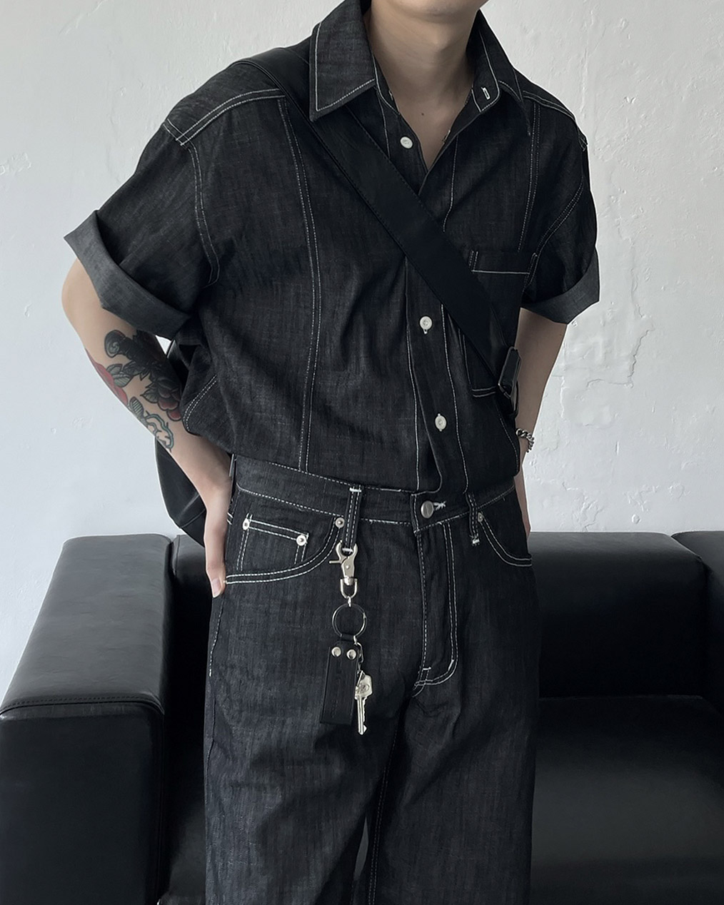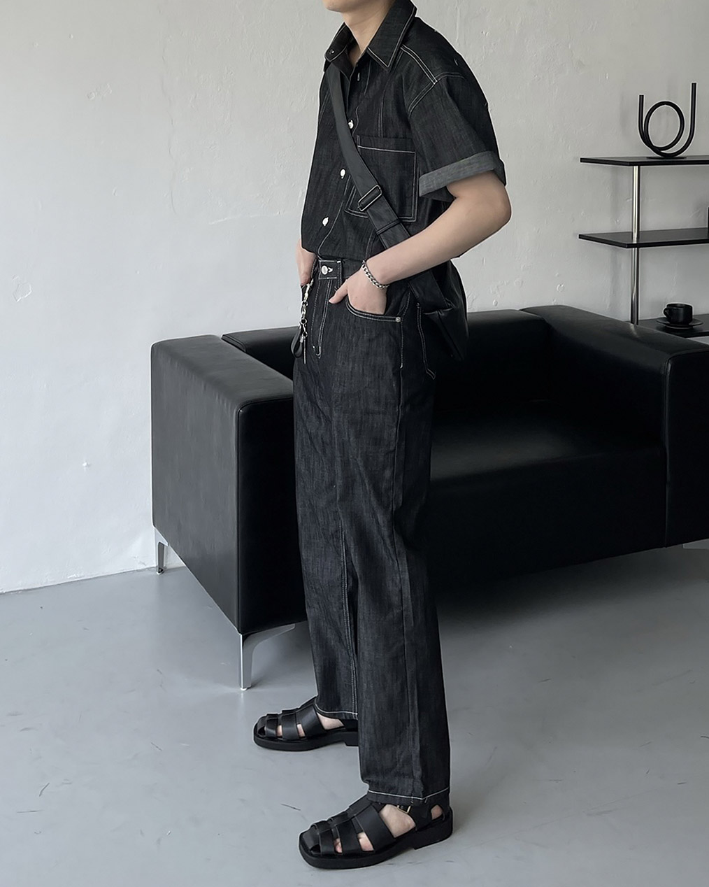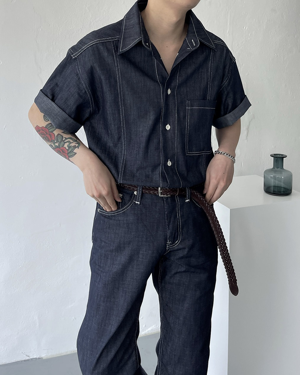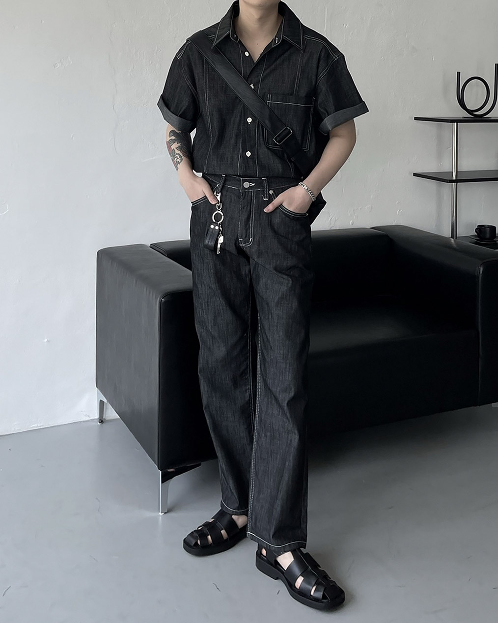 175cm 60kg / 팬츠 S size, 반팔 셔츠 Free Size 착용