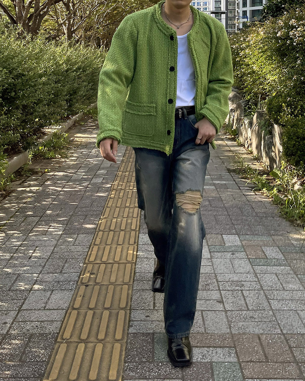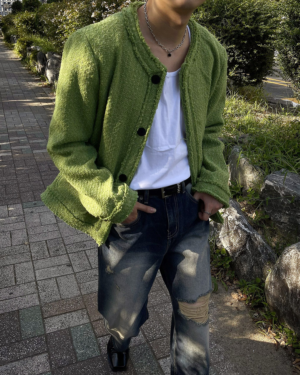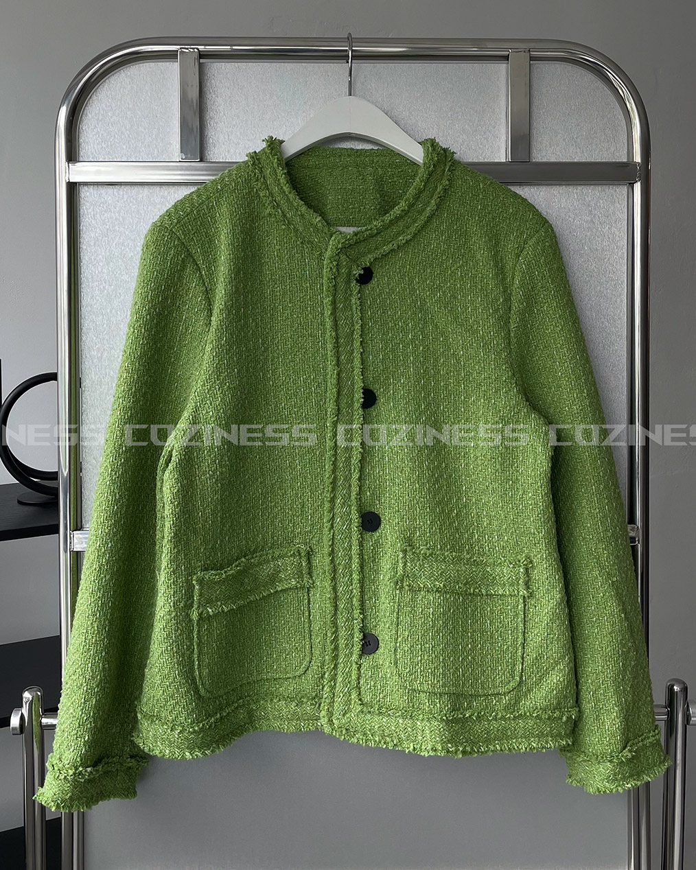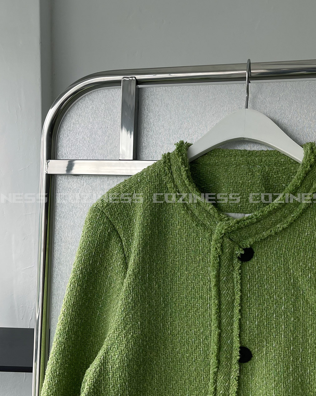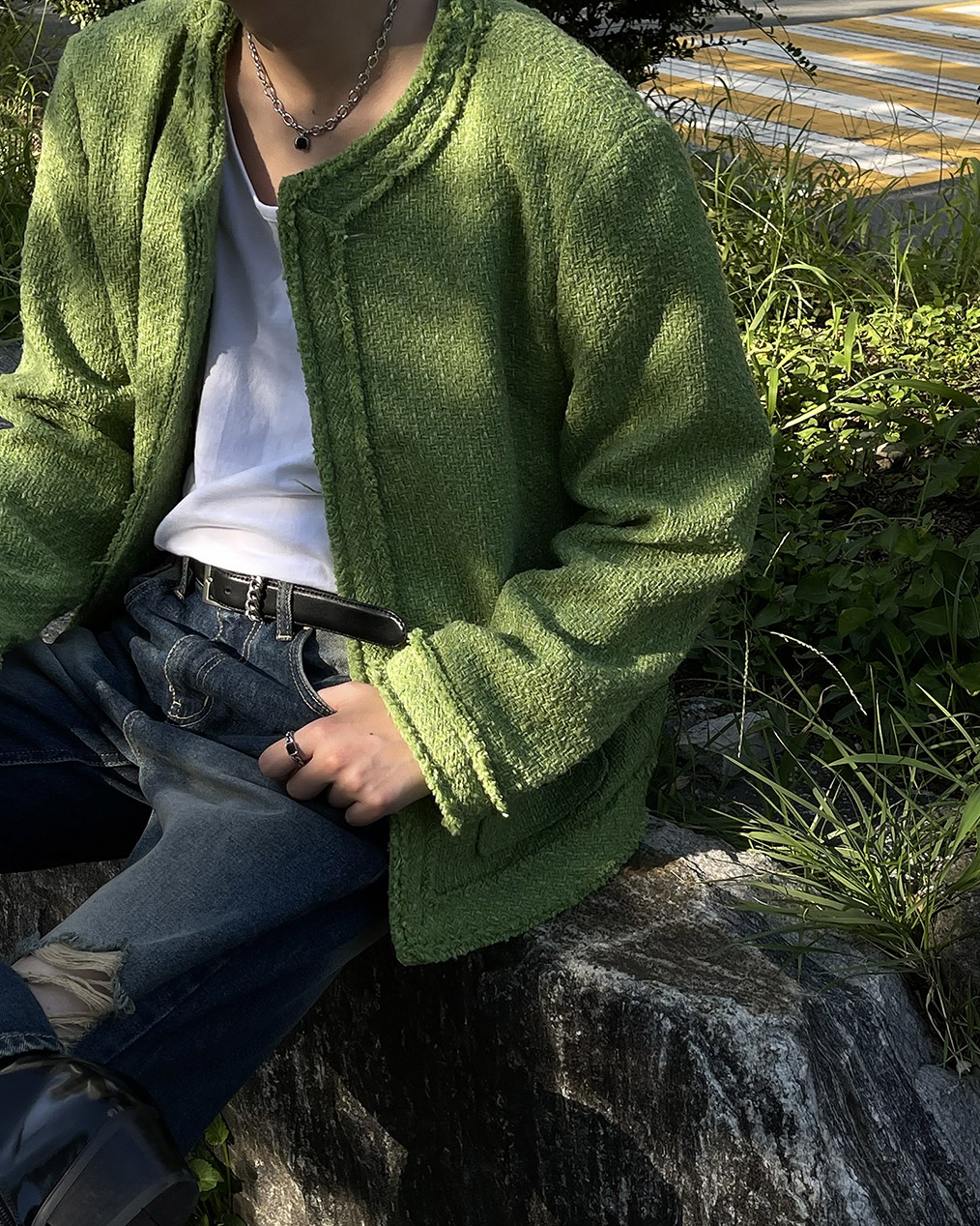 - 무거운 색상의 아우터가 다수인 가을, 겨울에 포인트가 될 그린 색상의 트위드