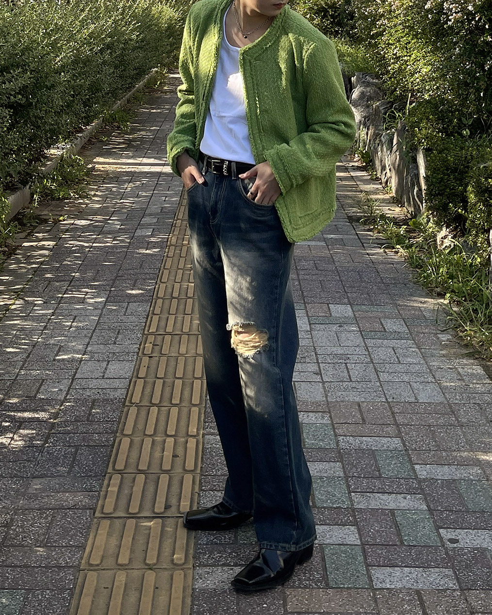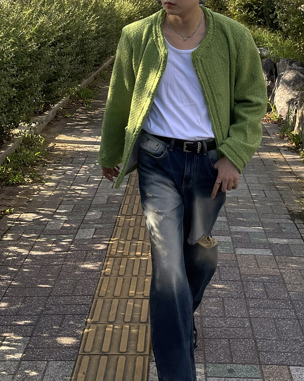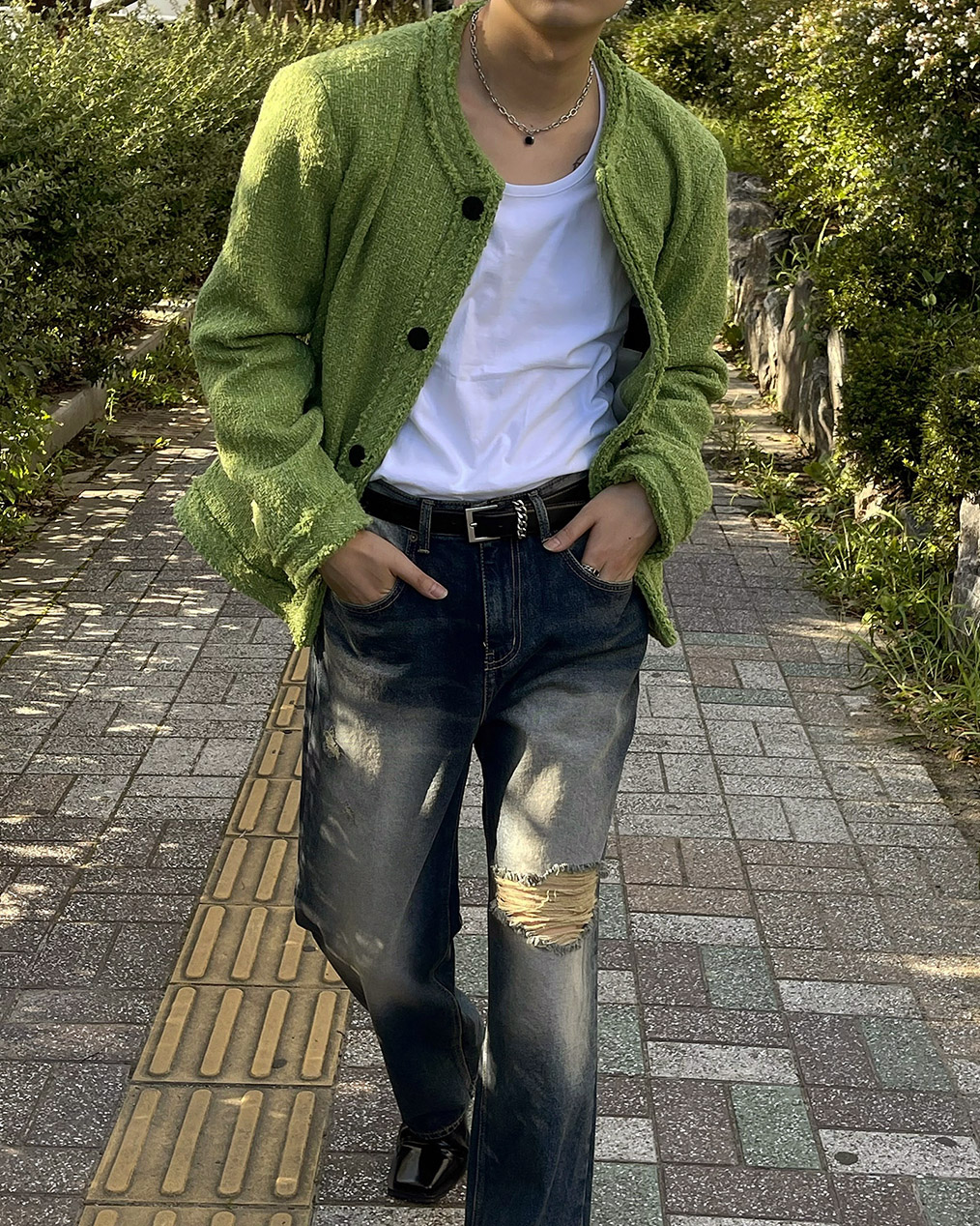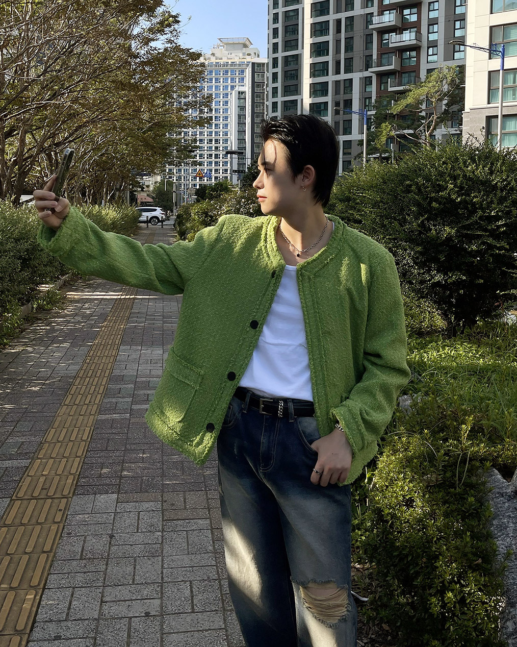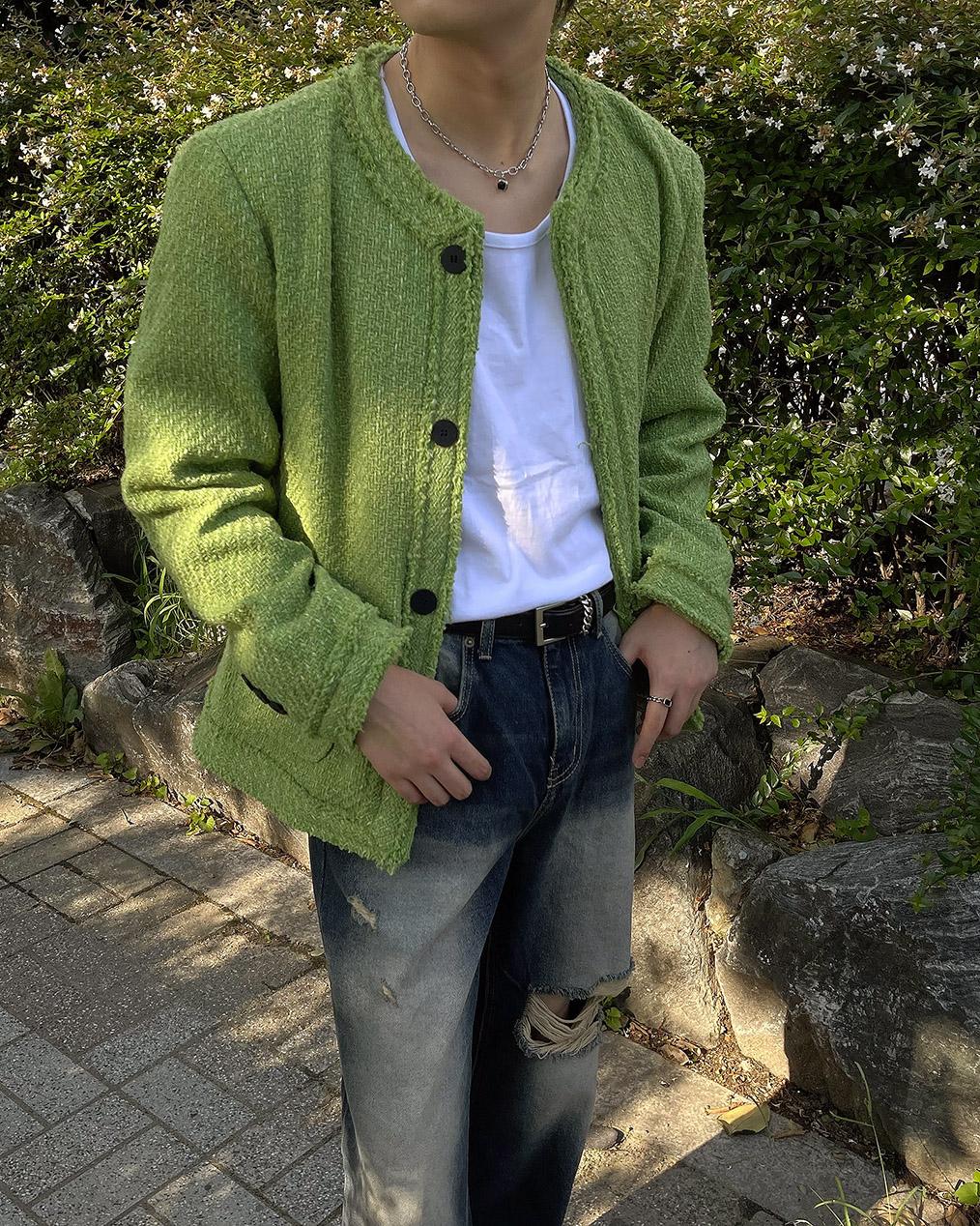 - 무거운 색상의 아우터가 다수인 가을, 겨울에 포인트가 될 그린 색상의 트위드