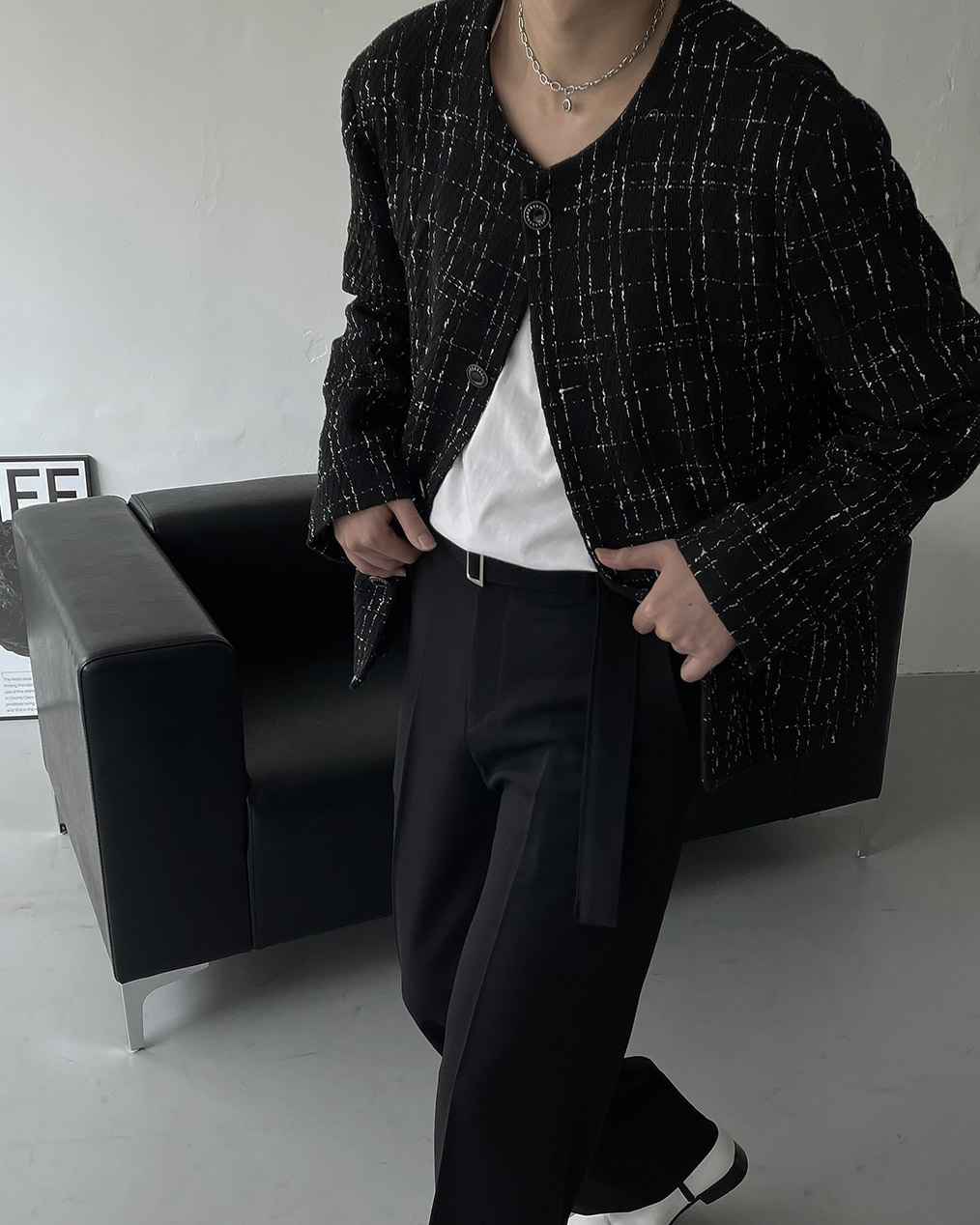 - 각 잡힌 어깨가 핏을 살려줌