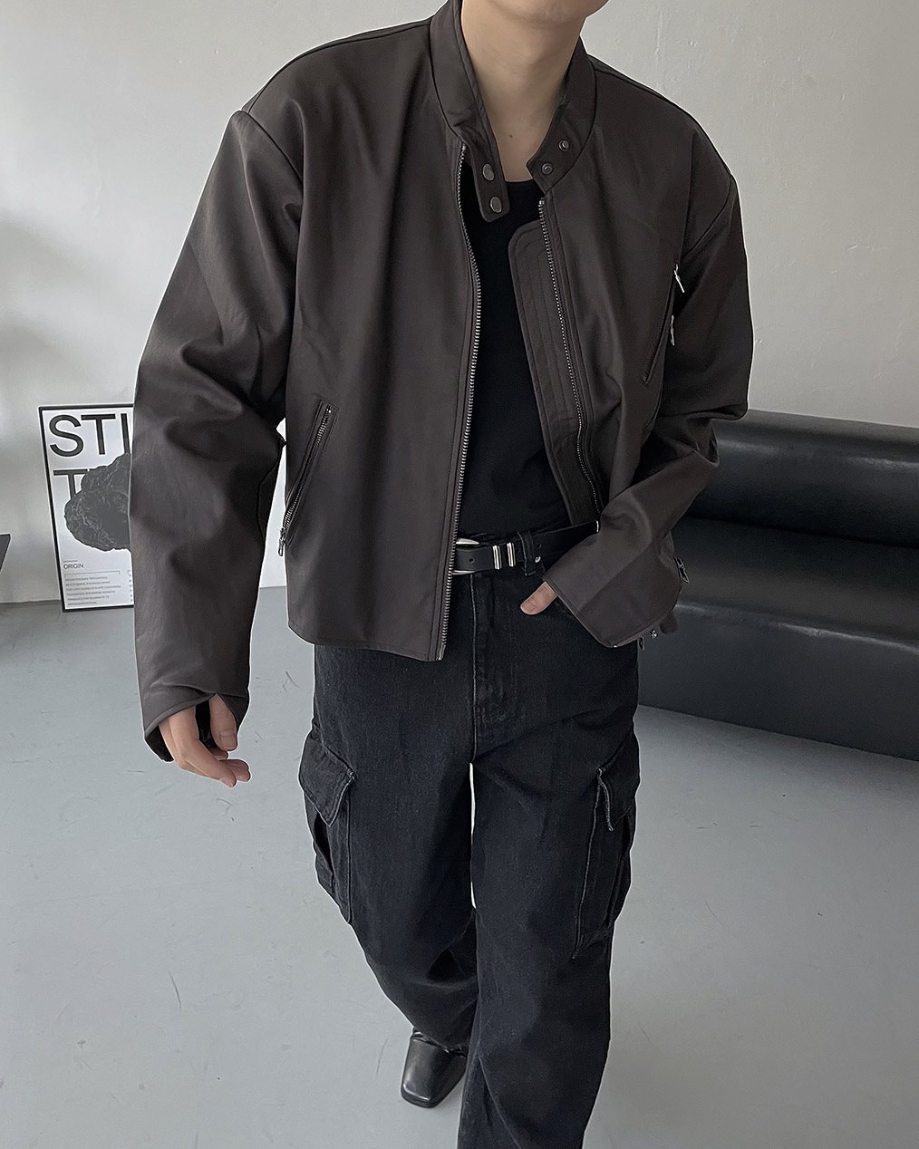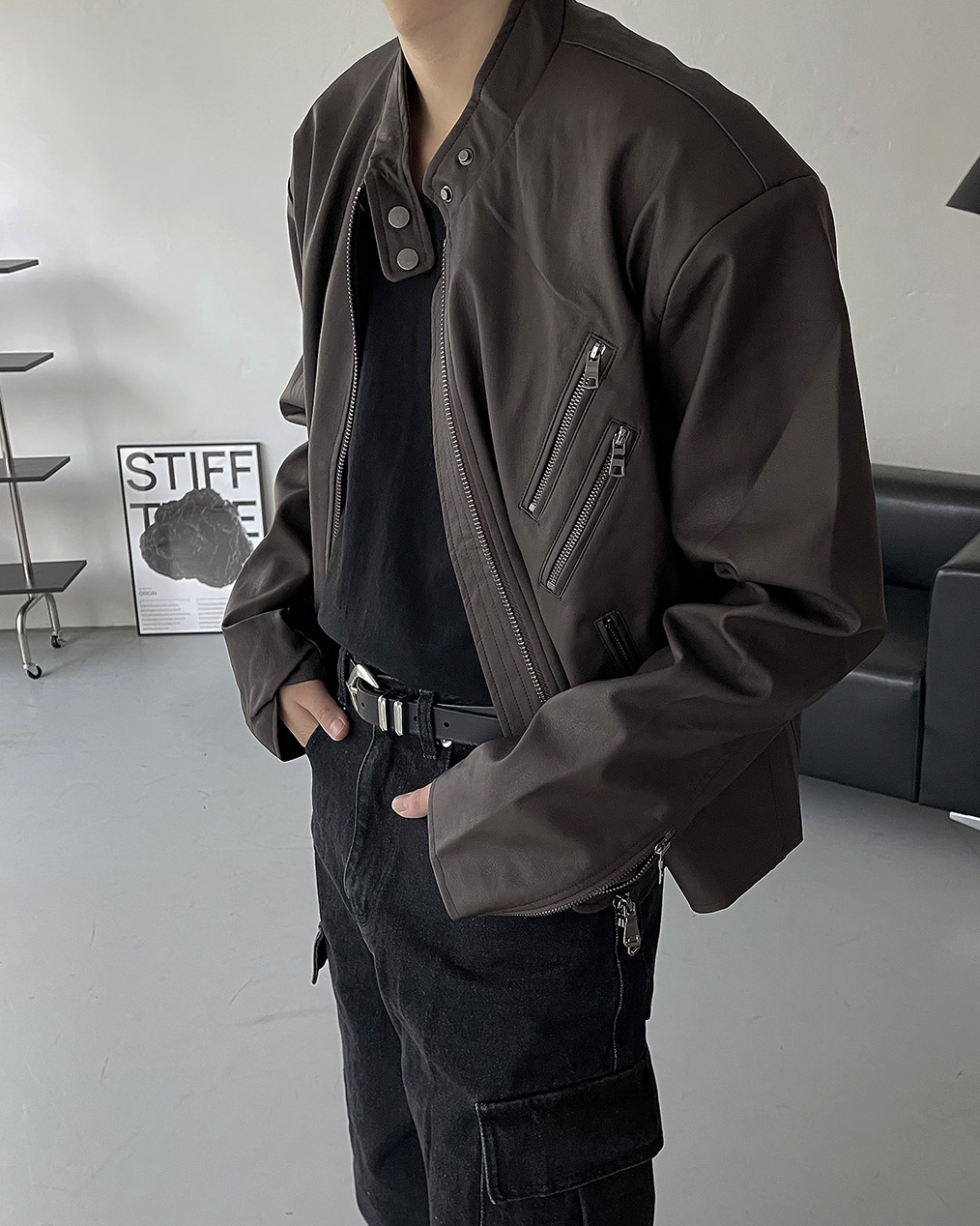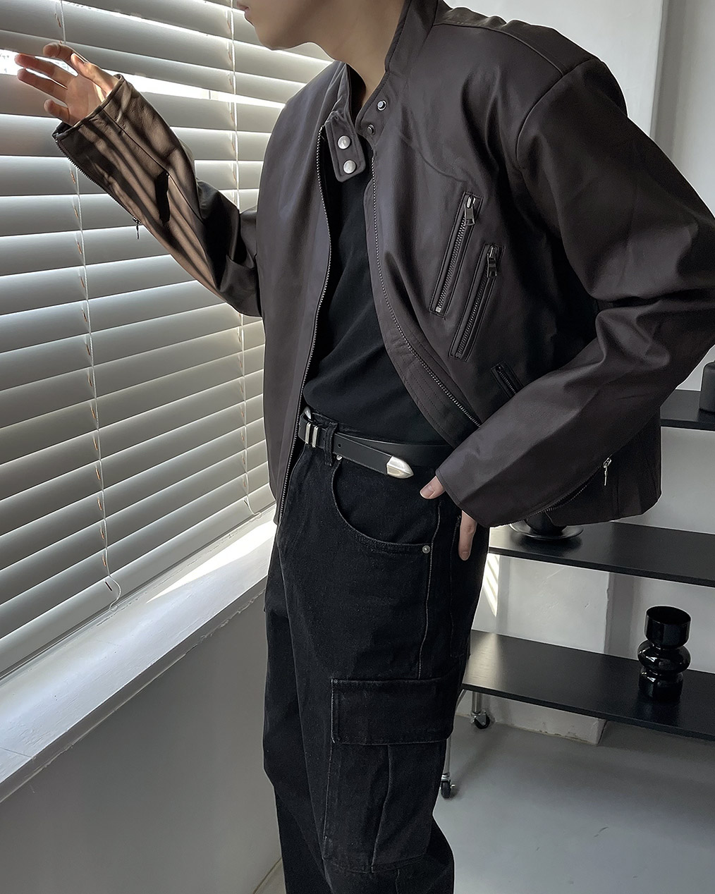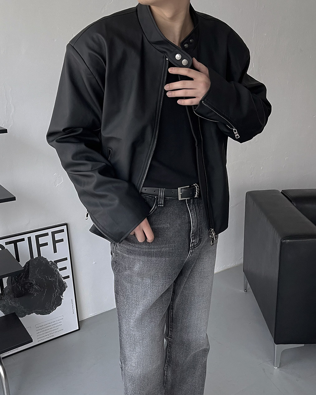 - Y2K 감성의 세미 크롭 레더 자켓