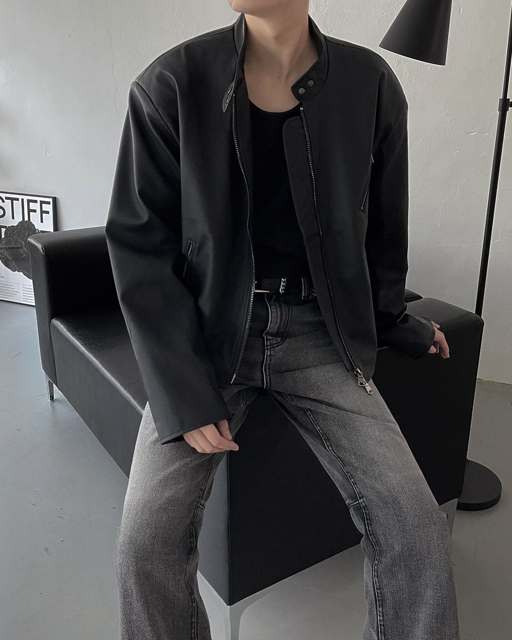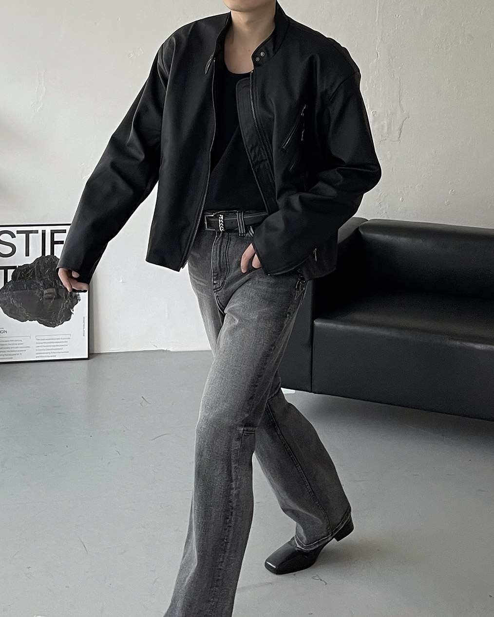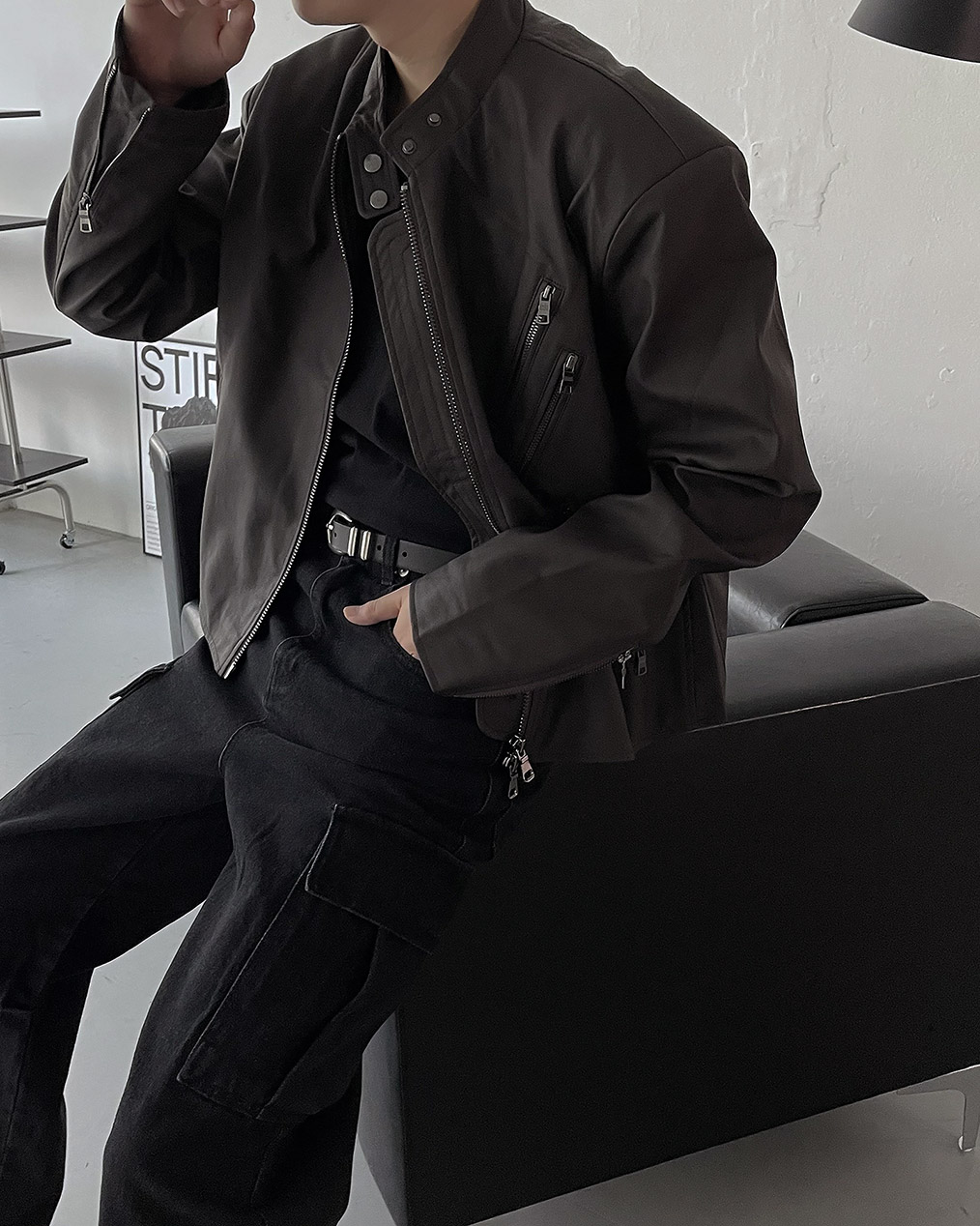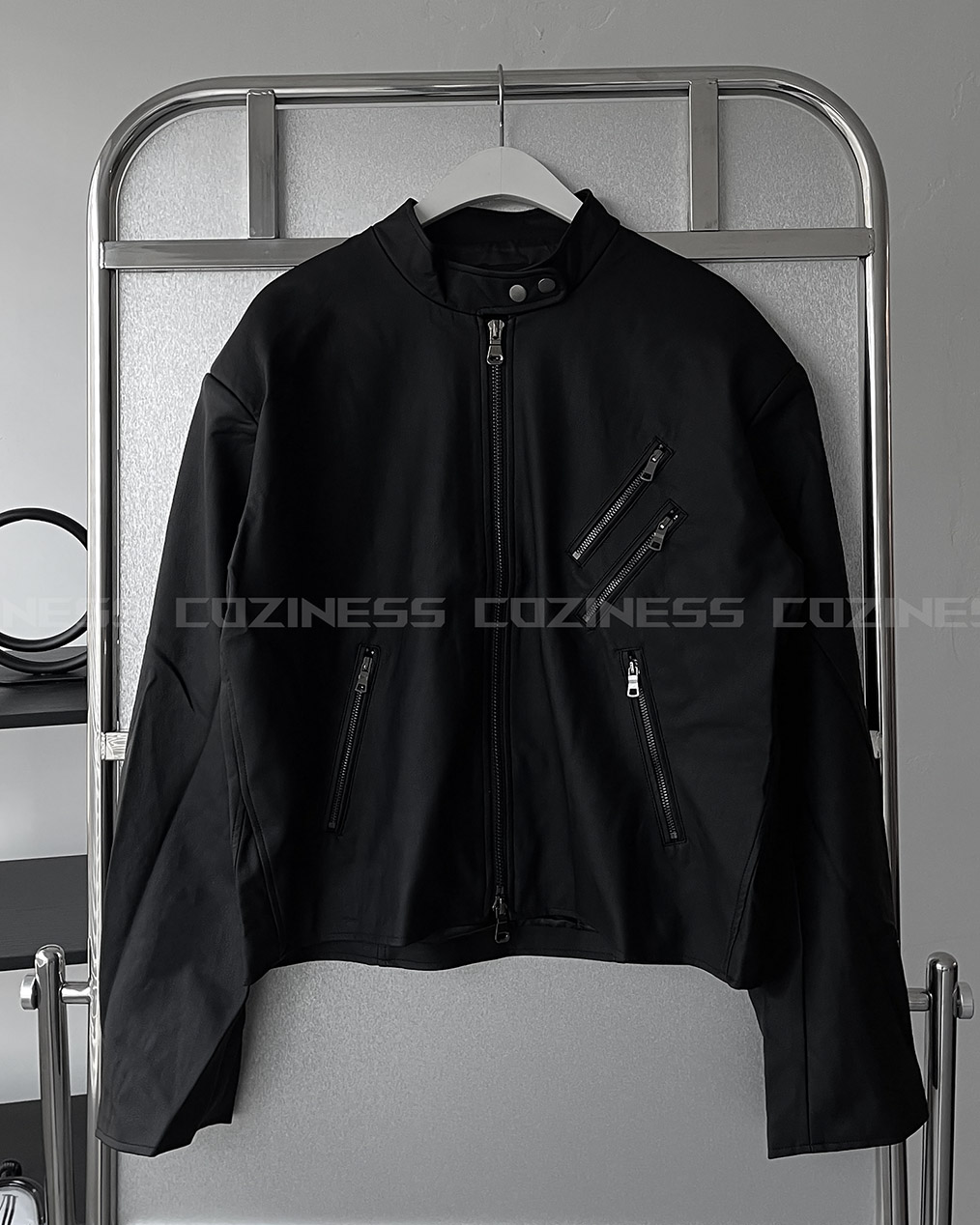 - Y2K 감성의 세미 크롭 레더 자켓