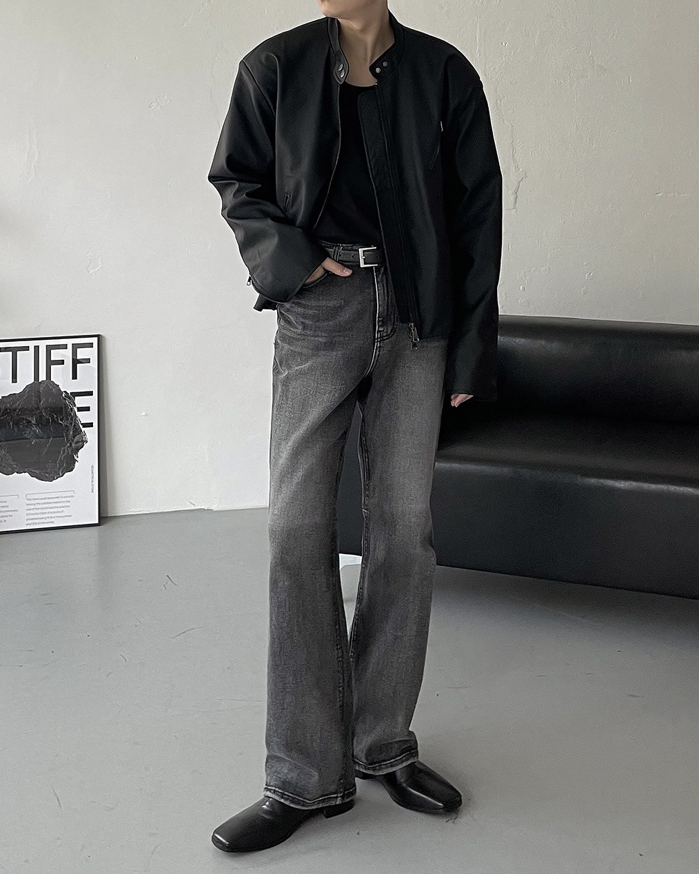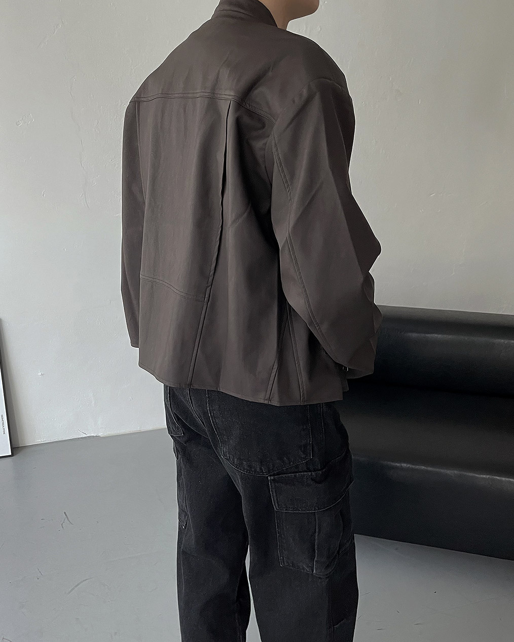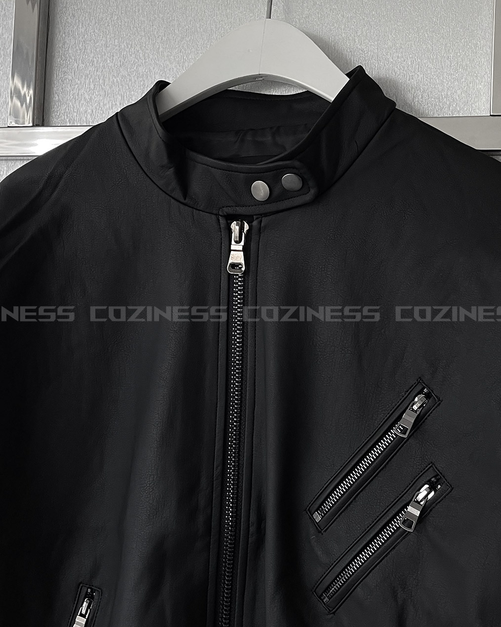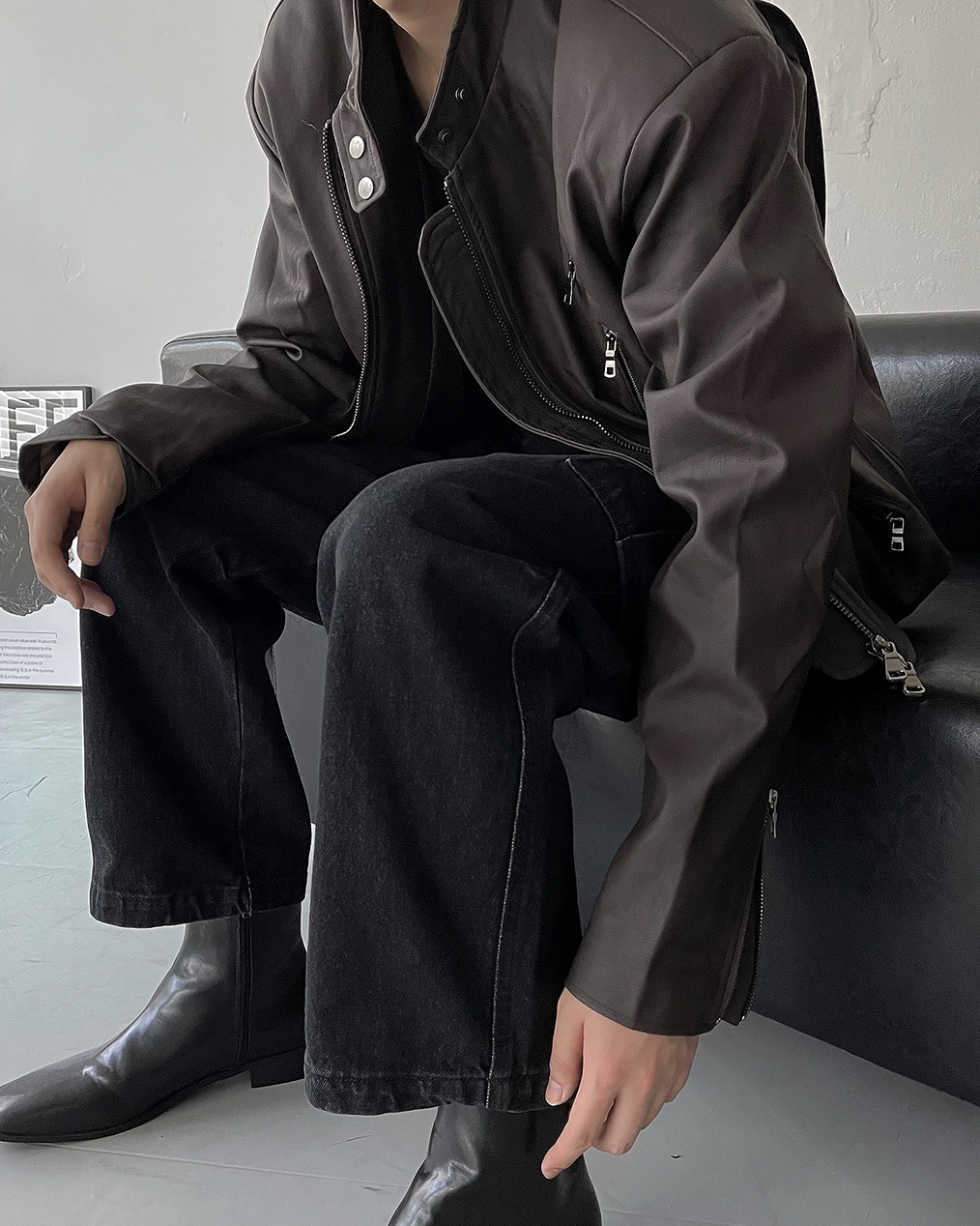 - Y2K 감성의 세미 크롭 레더 자켓