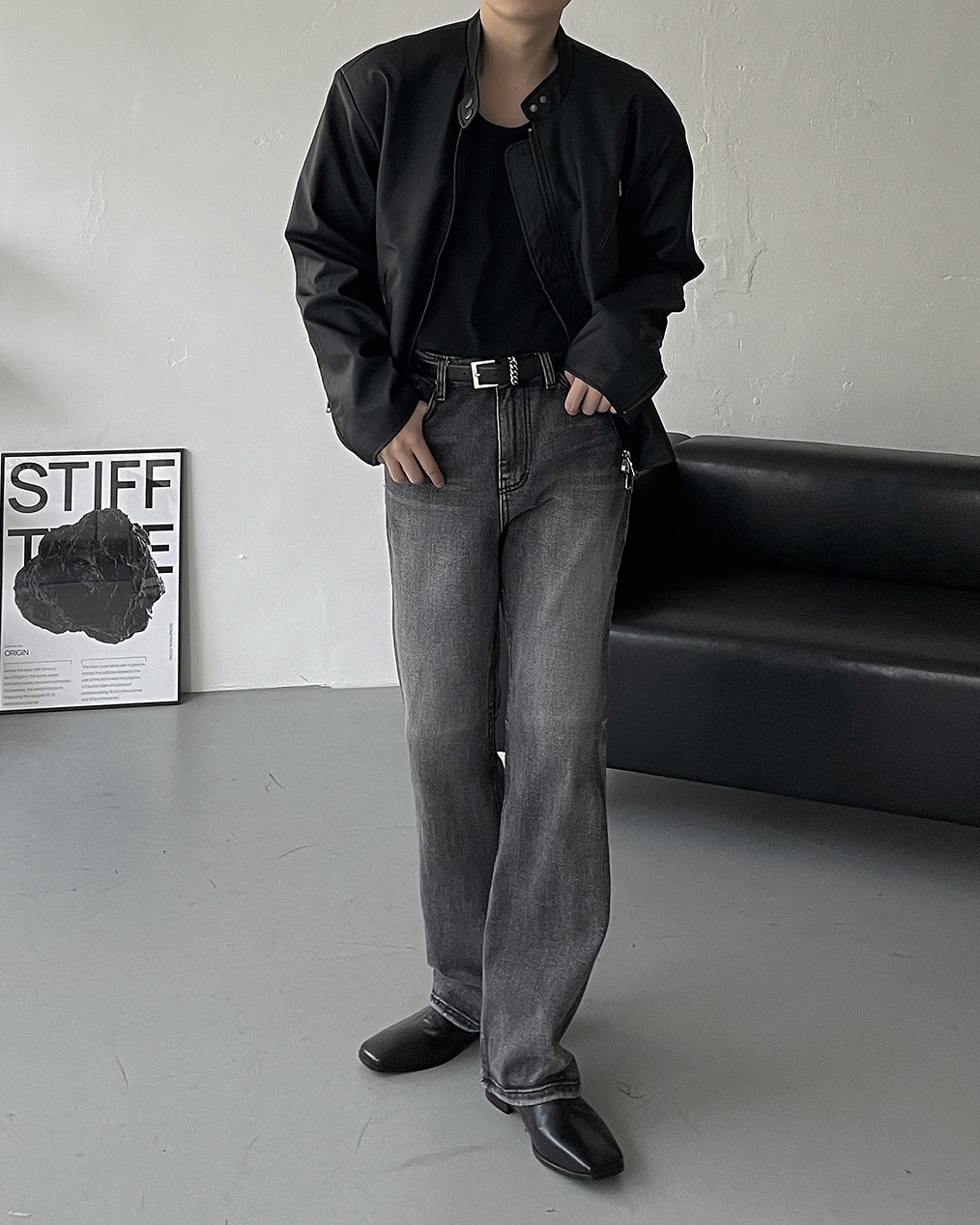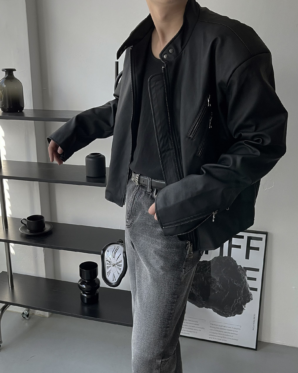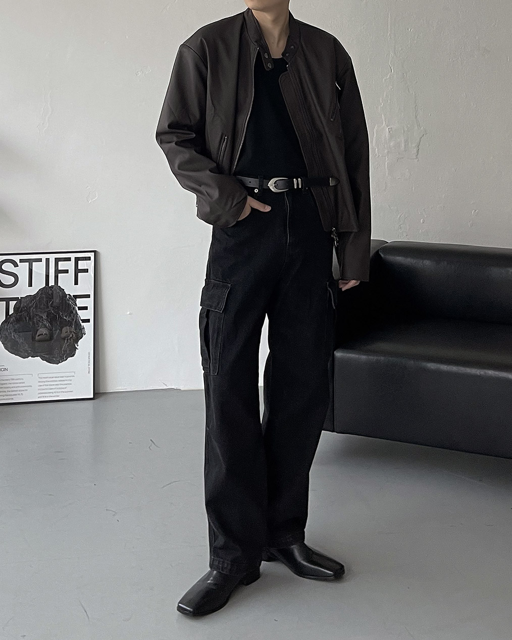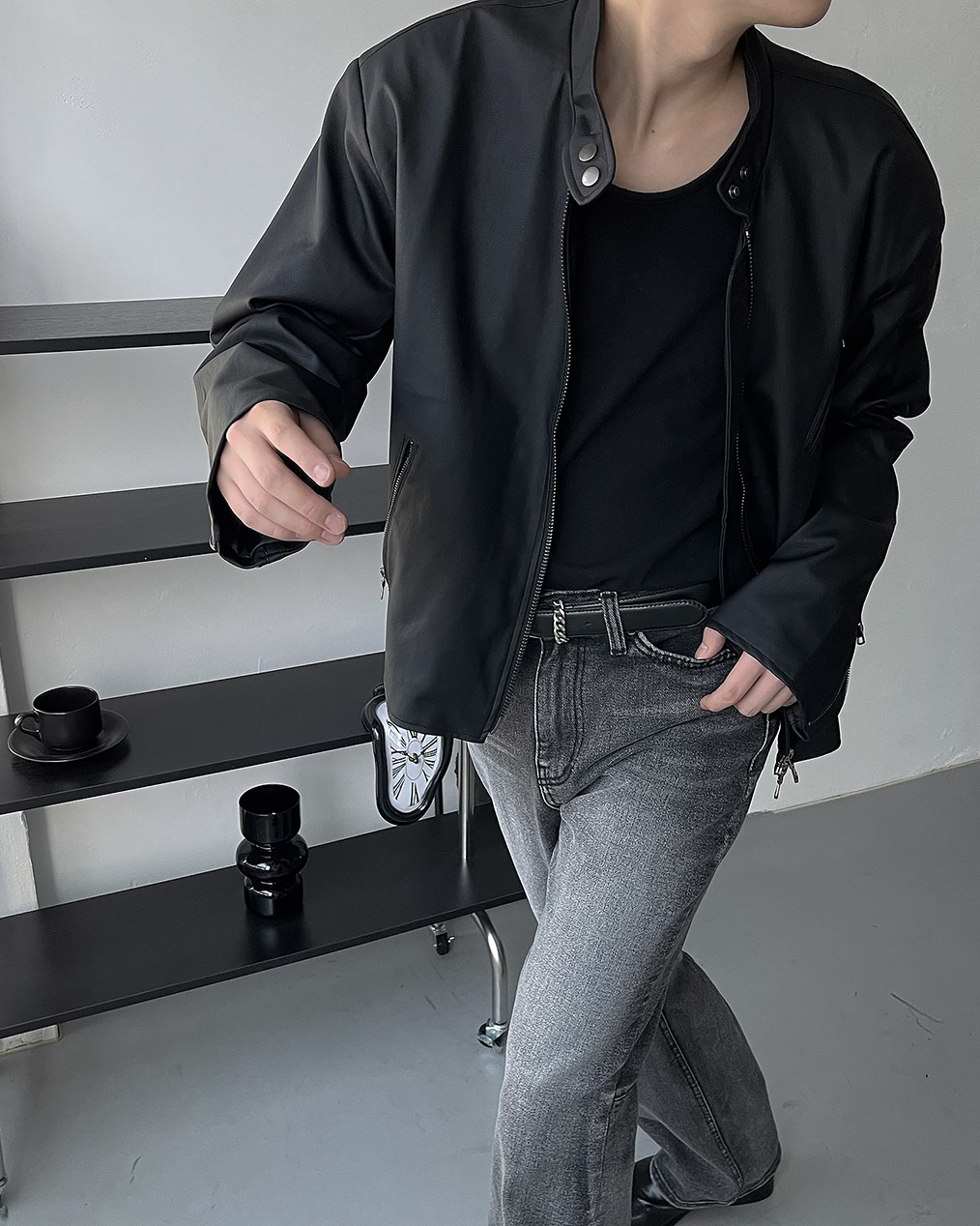 - Y2K 감성의 세미 크롭 레더 자켓