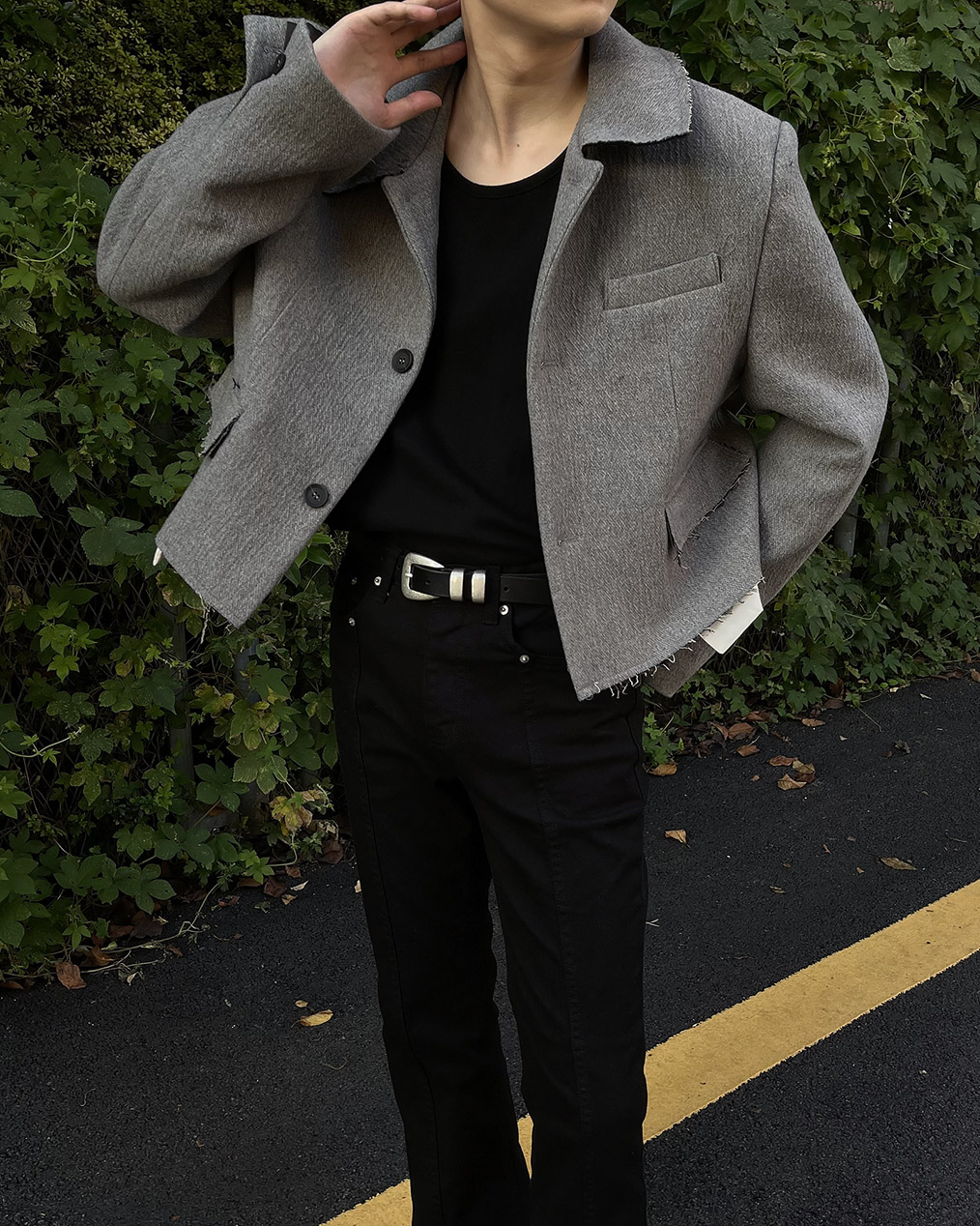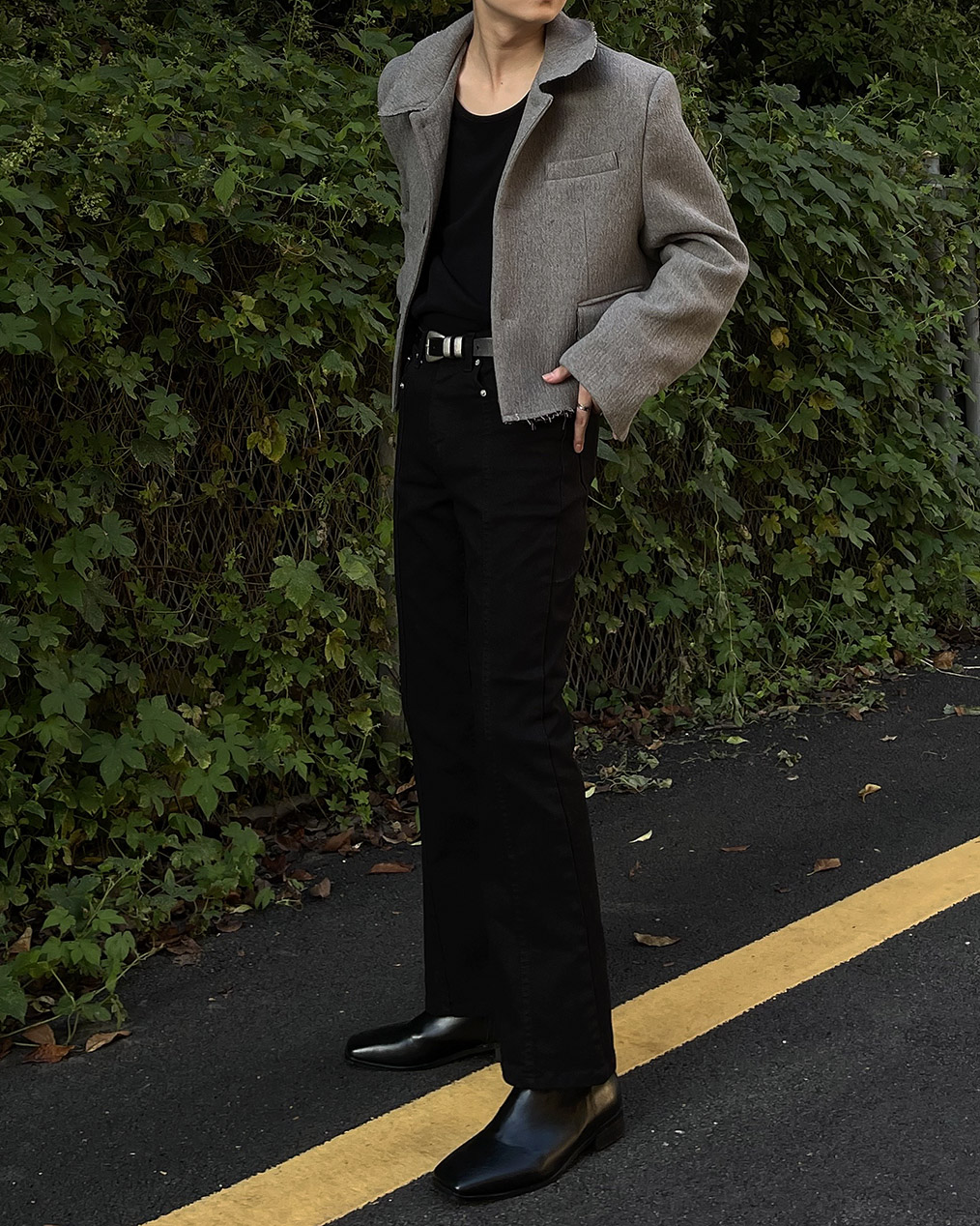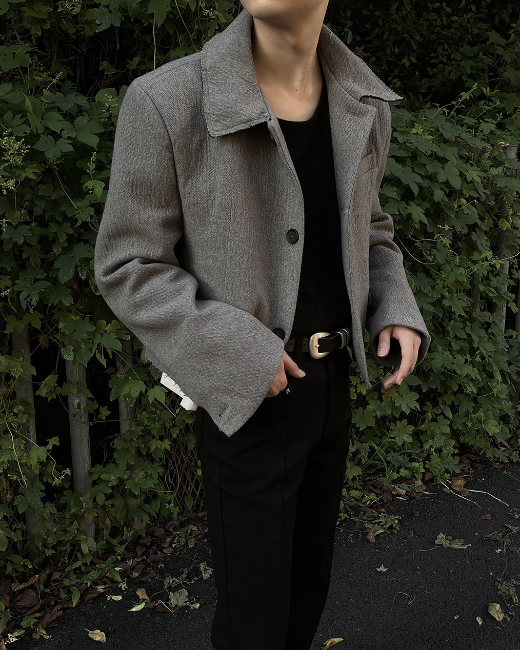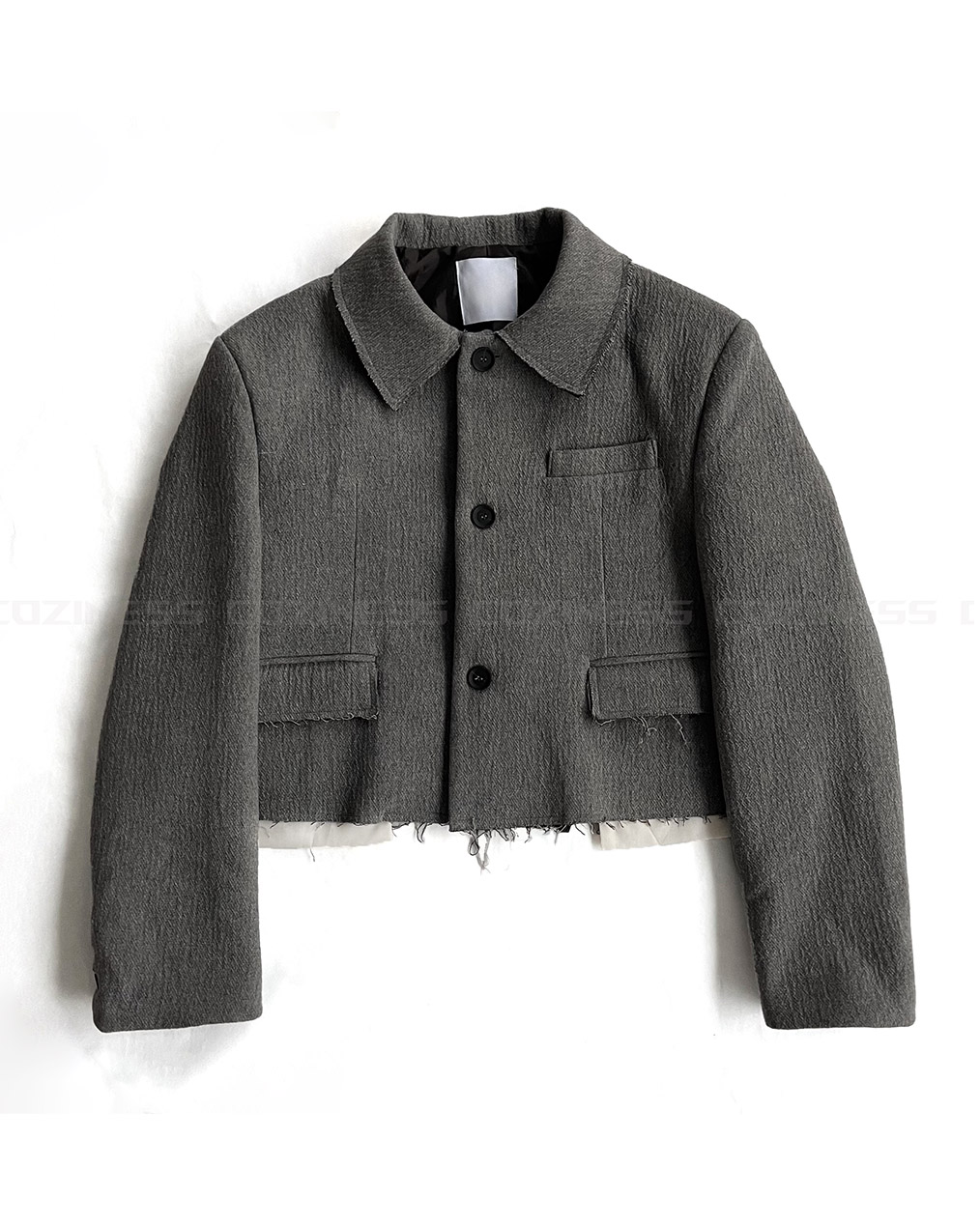 - 울 혼방으로 보온성을 더한 크롭 자켓