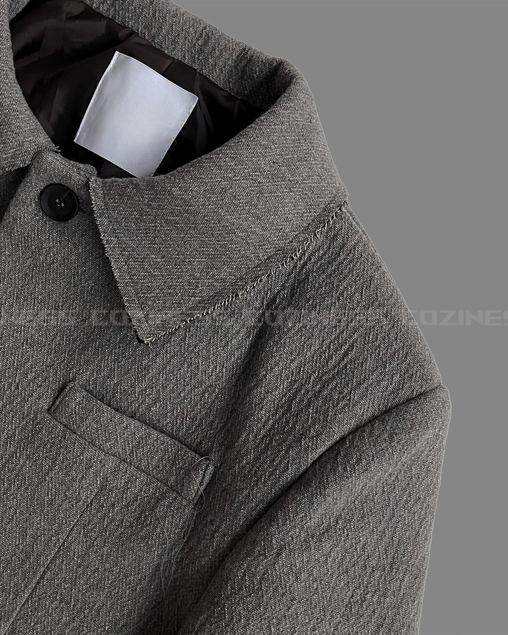 - 살짝 보이는 포켓 라인과 넥카라, 포켓, 밑단 데끼 디테일이 유니크함