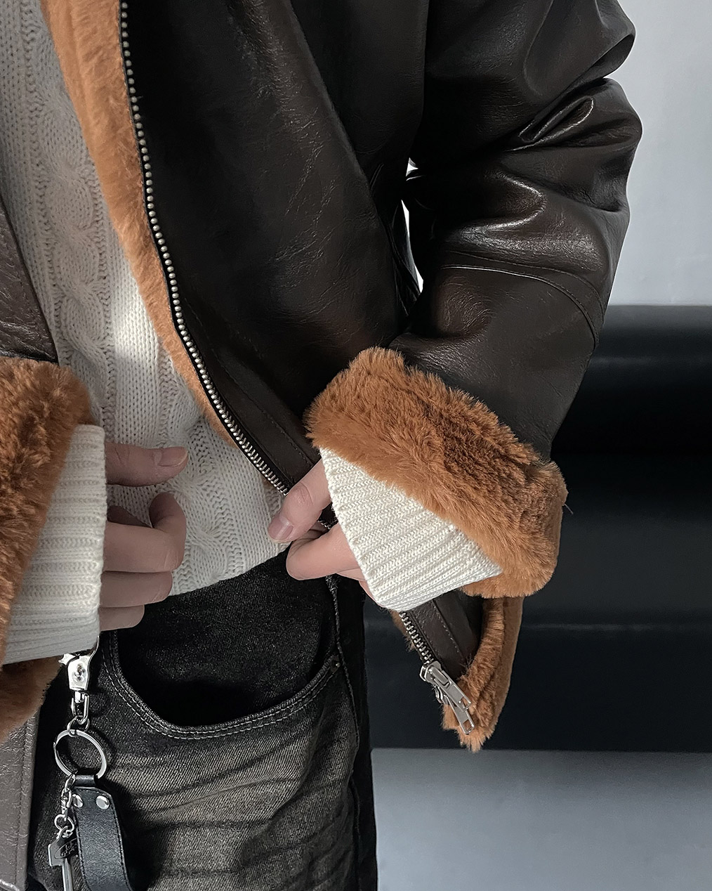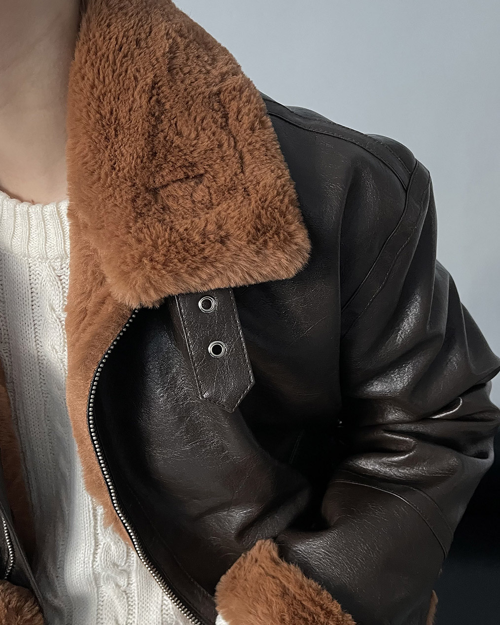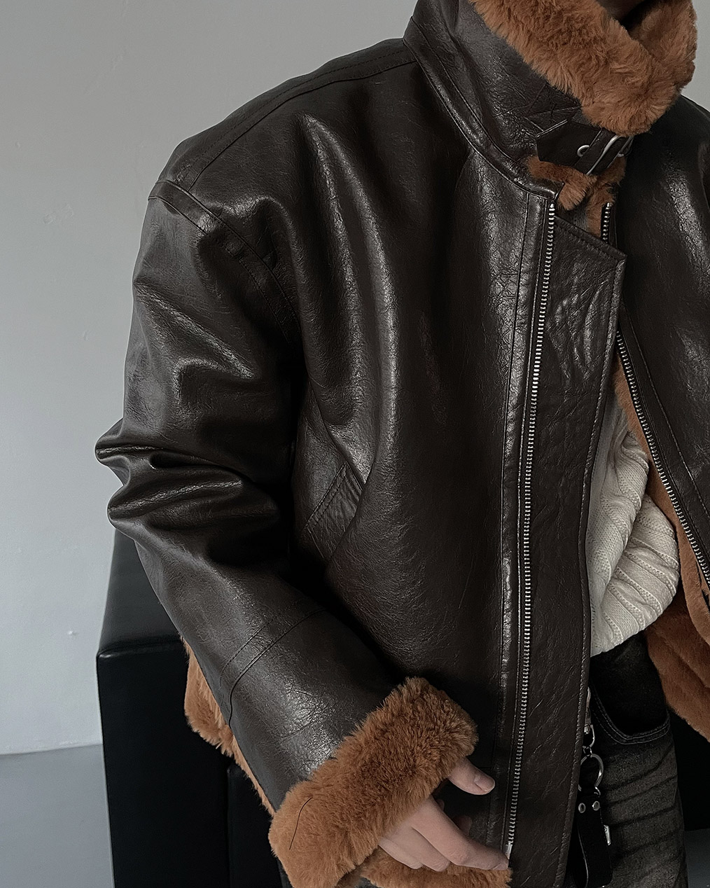 - 안감 부드럽고 포근한 퍼로 멋과 보온성을 더한 무스탕 자켓