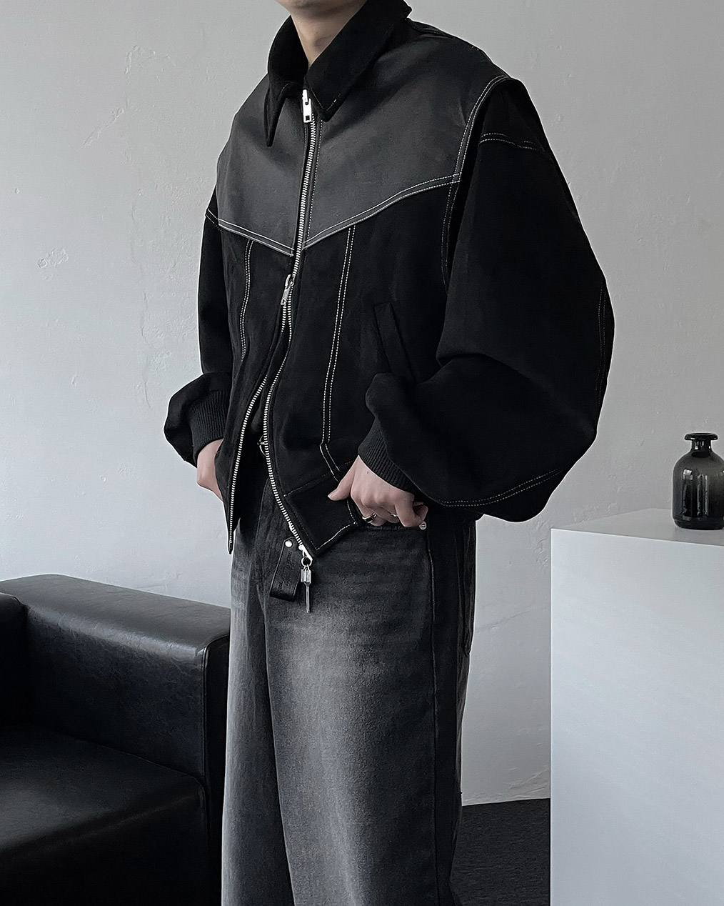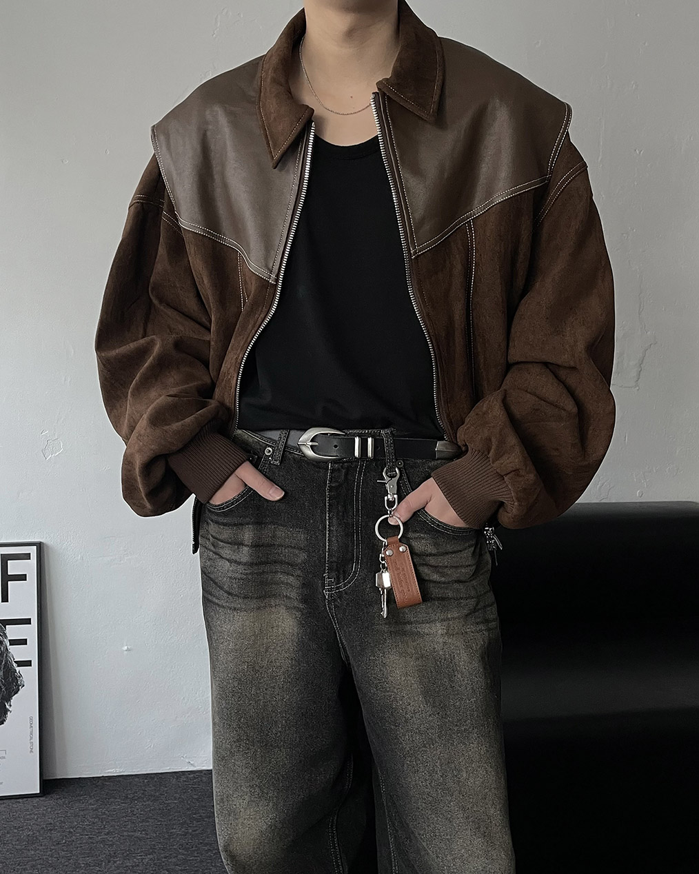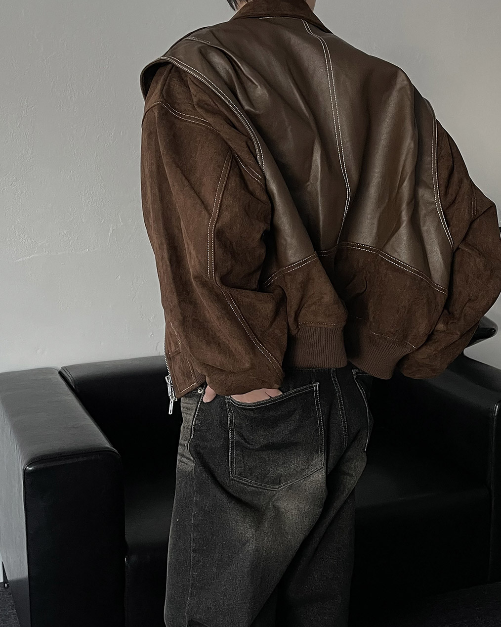 - 부분 스웨이드, 레더 원단을 믹스하여 제작하여 퀄리티 높은 바이퍼 자켓