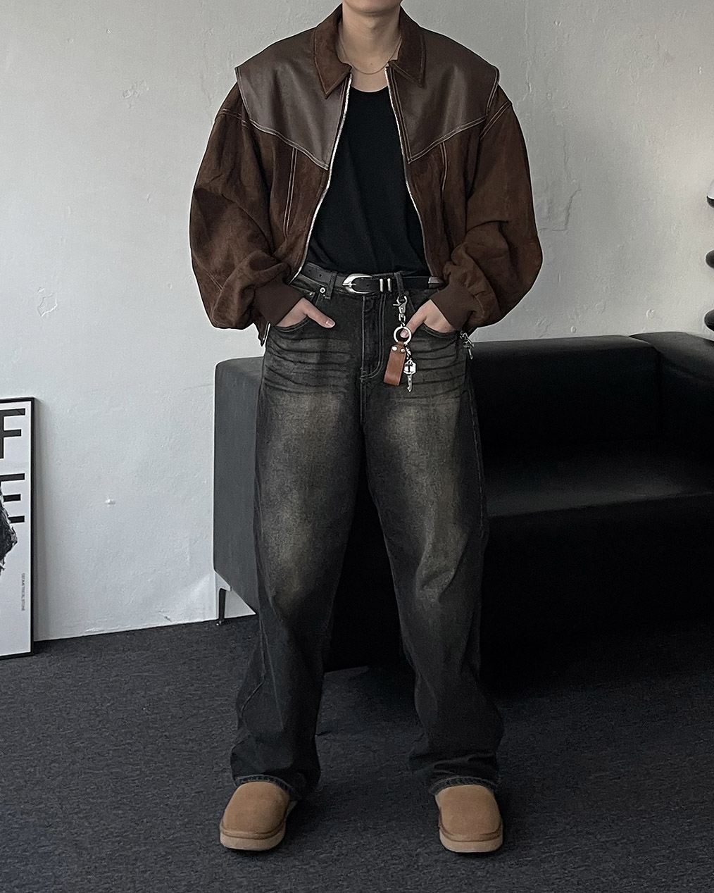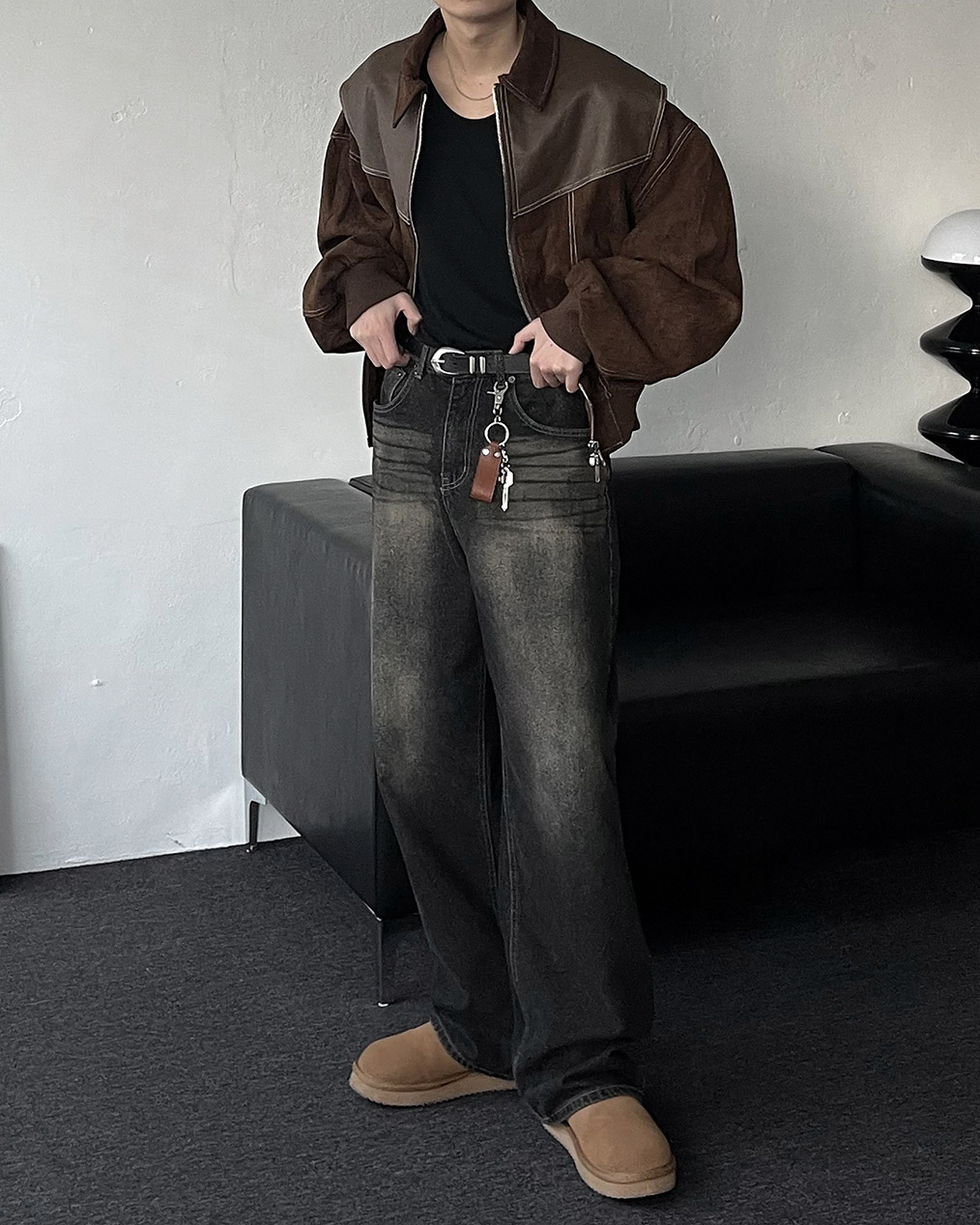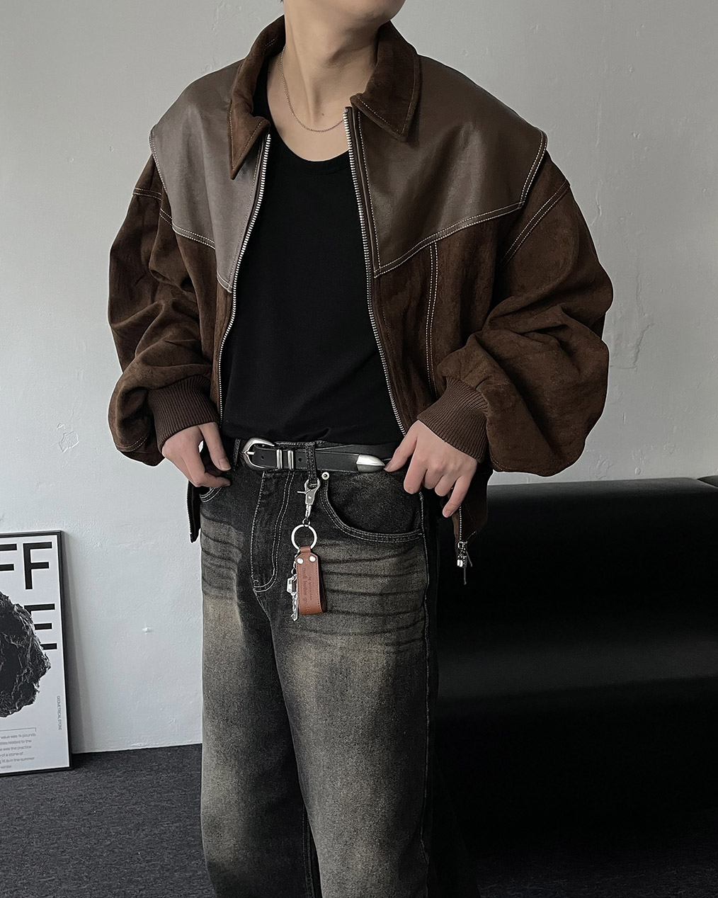- 부분 스웨이드, 레더 원단을 믹스하여 제작하여 퀄리티 높은 바이퍼 자켓