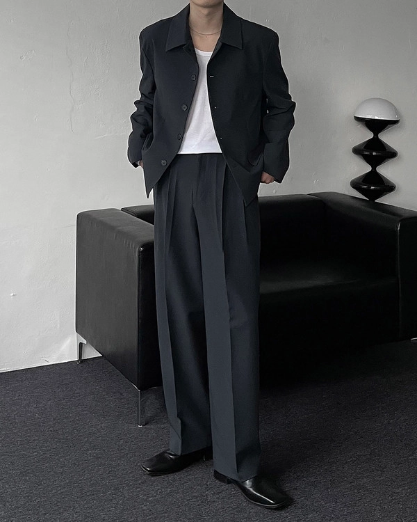 - 전면 투턱이 핏을 잡아주어 깔끔한 실루엣 연출