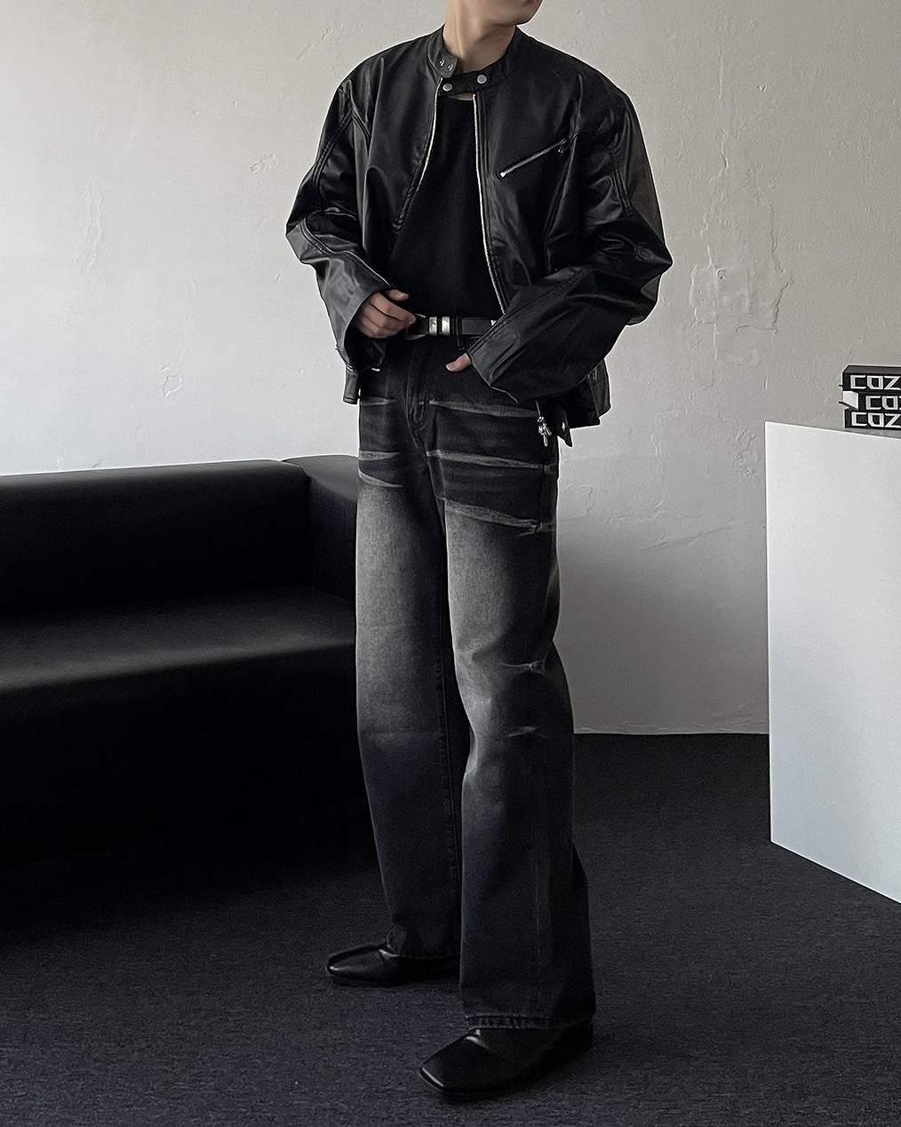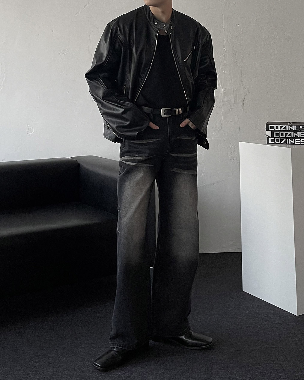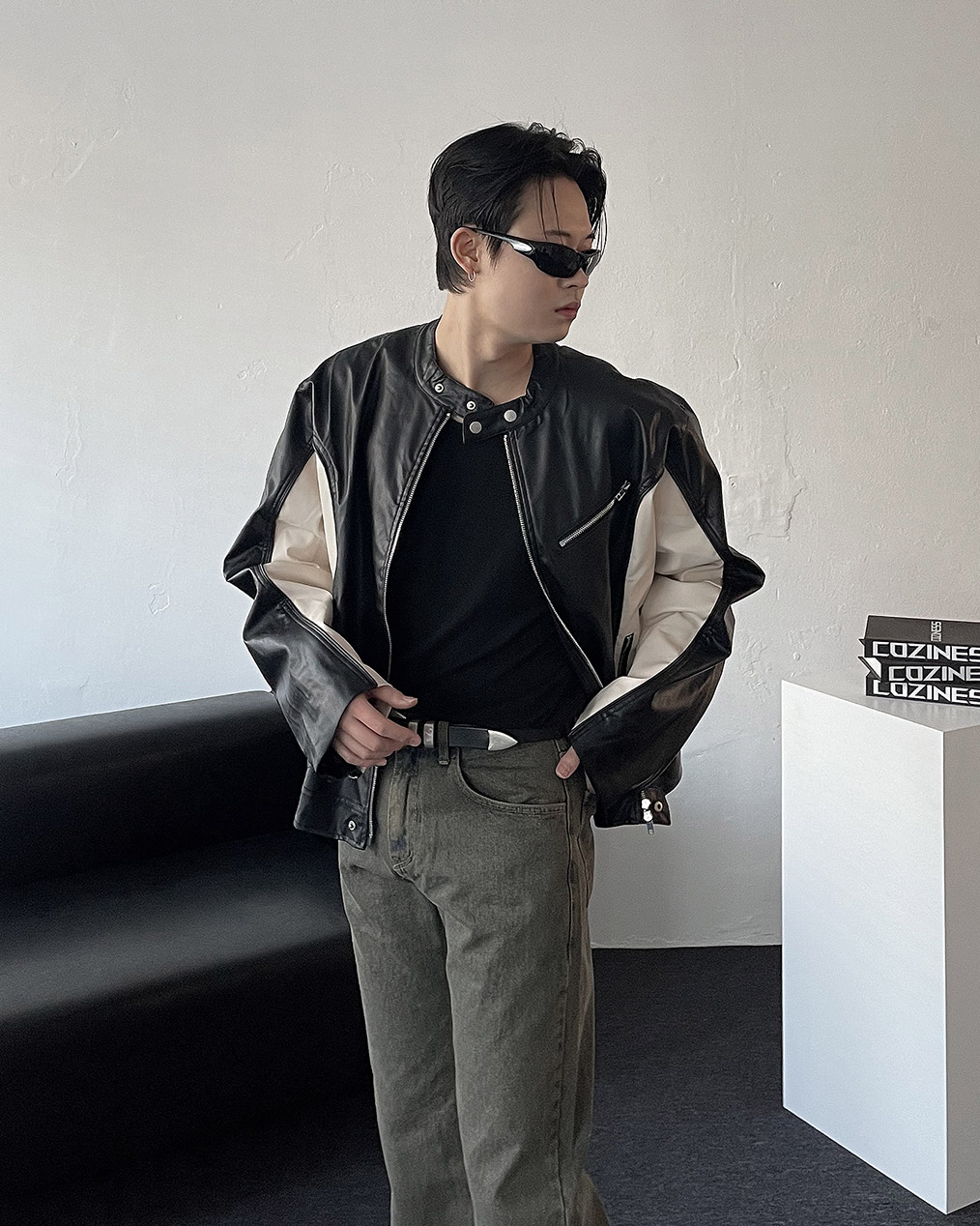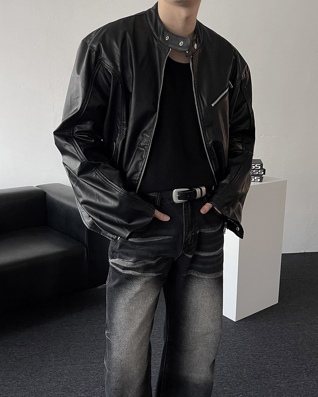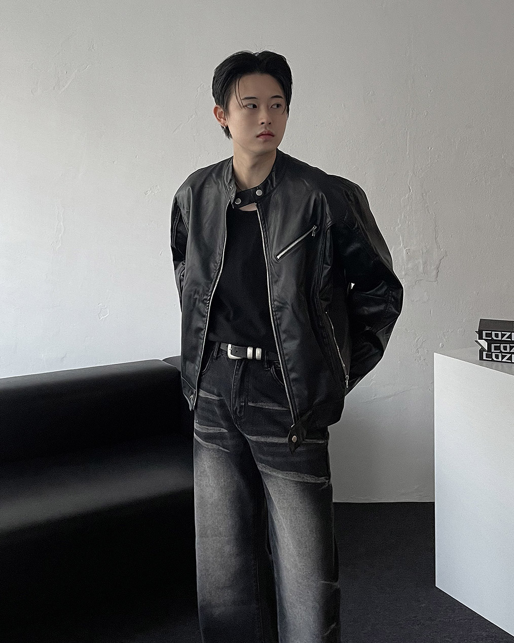 - 섹시, 시크한 무드의 차이나 카라 오버핏 라이더 자켓