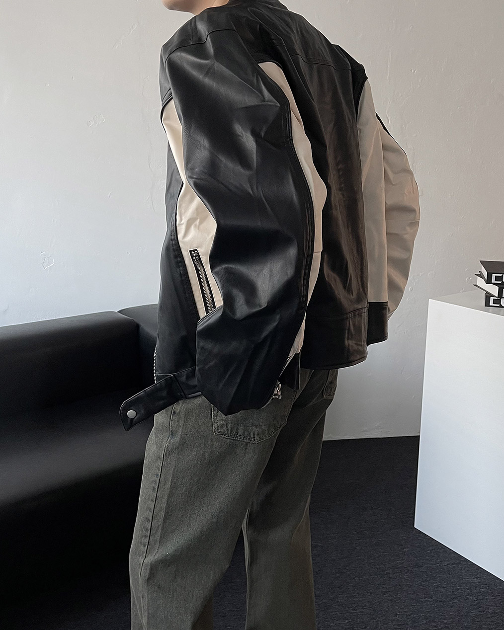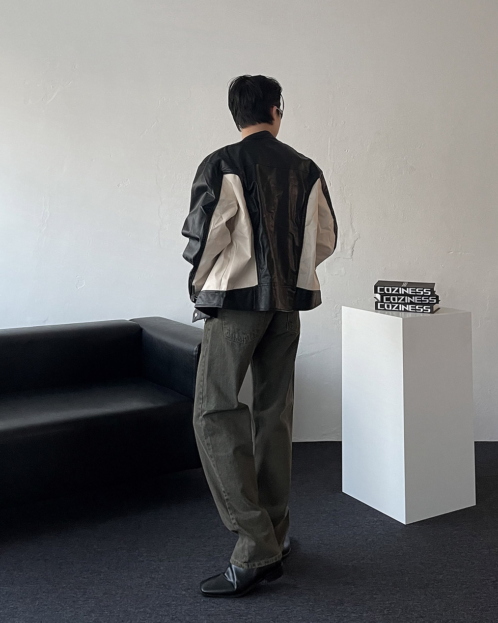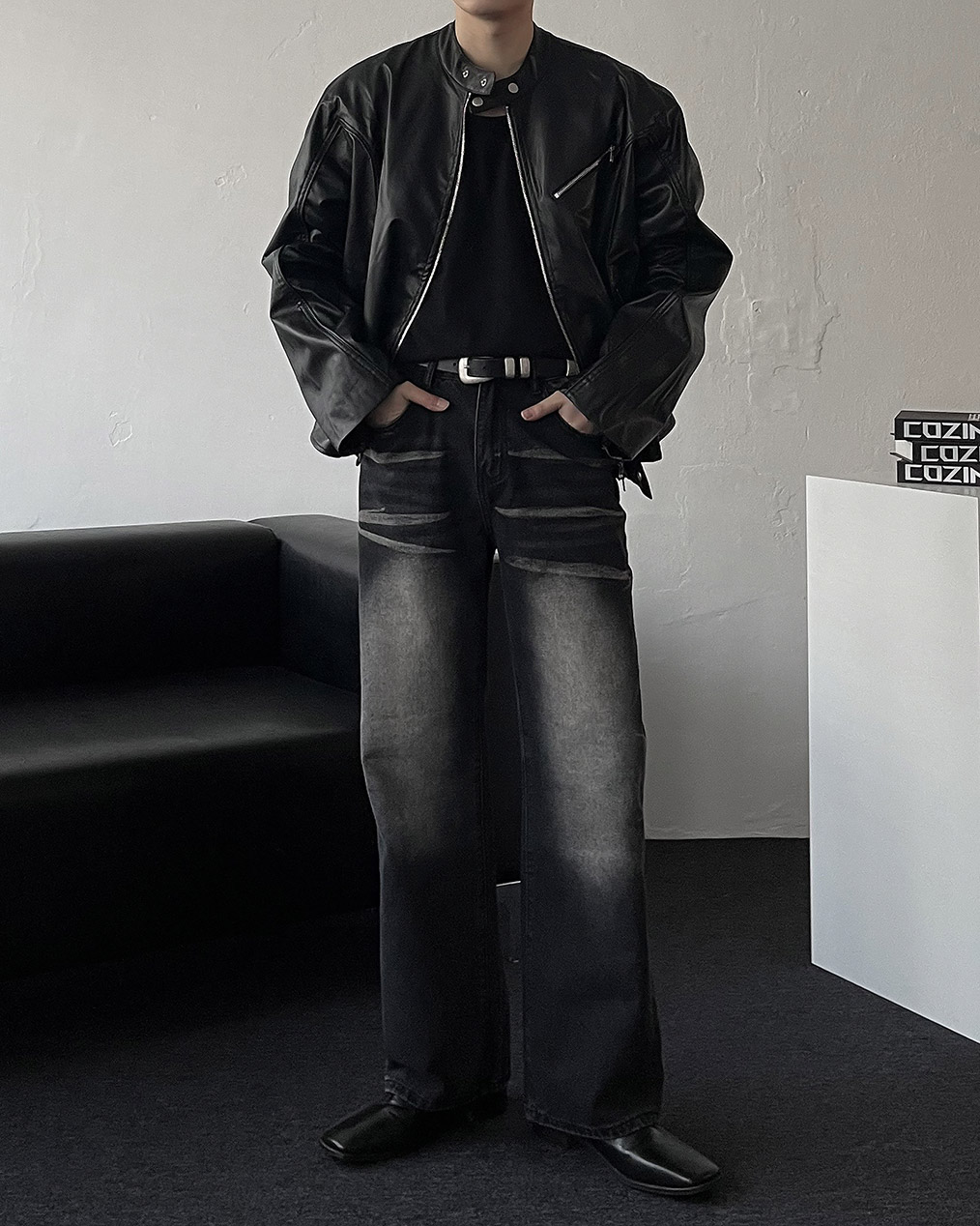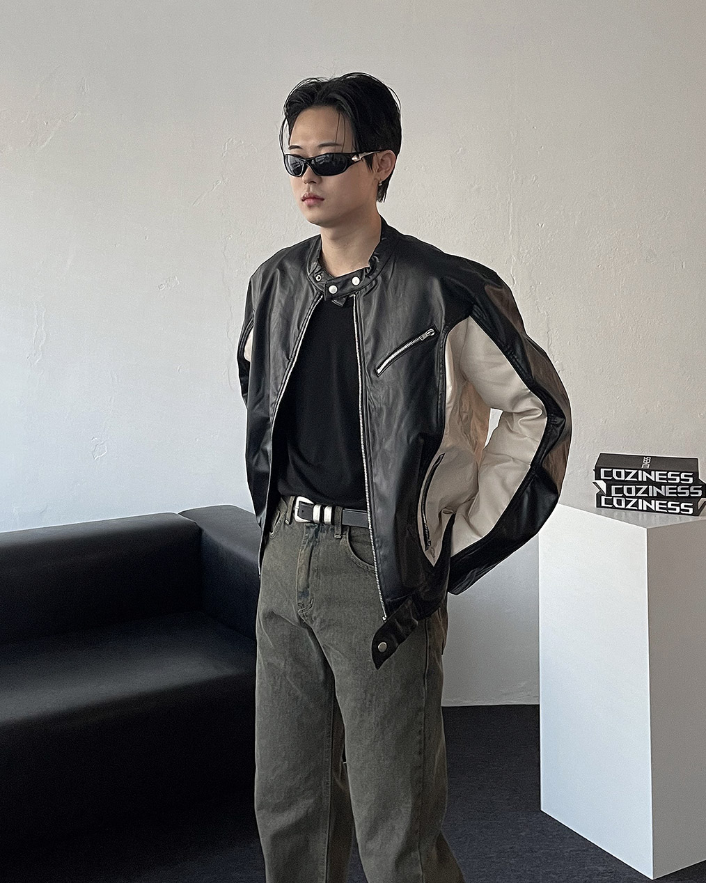 - 섹시, 시크한 무드의 차이나 카라 오버핏 라이더 자켓