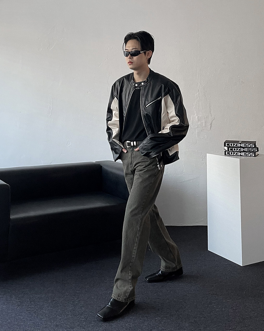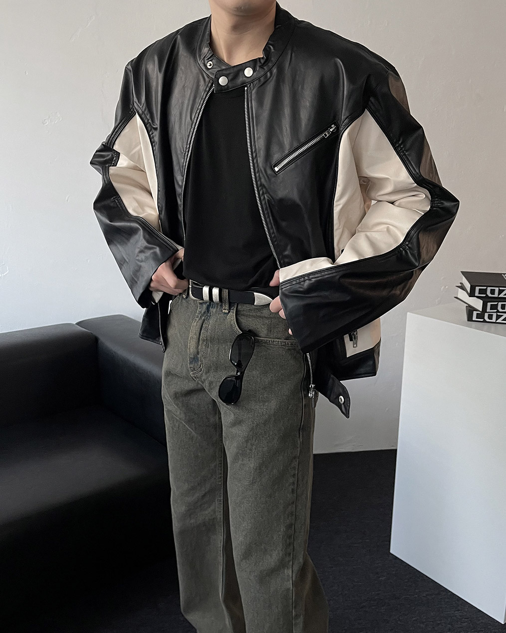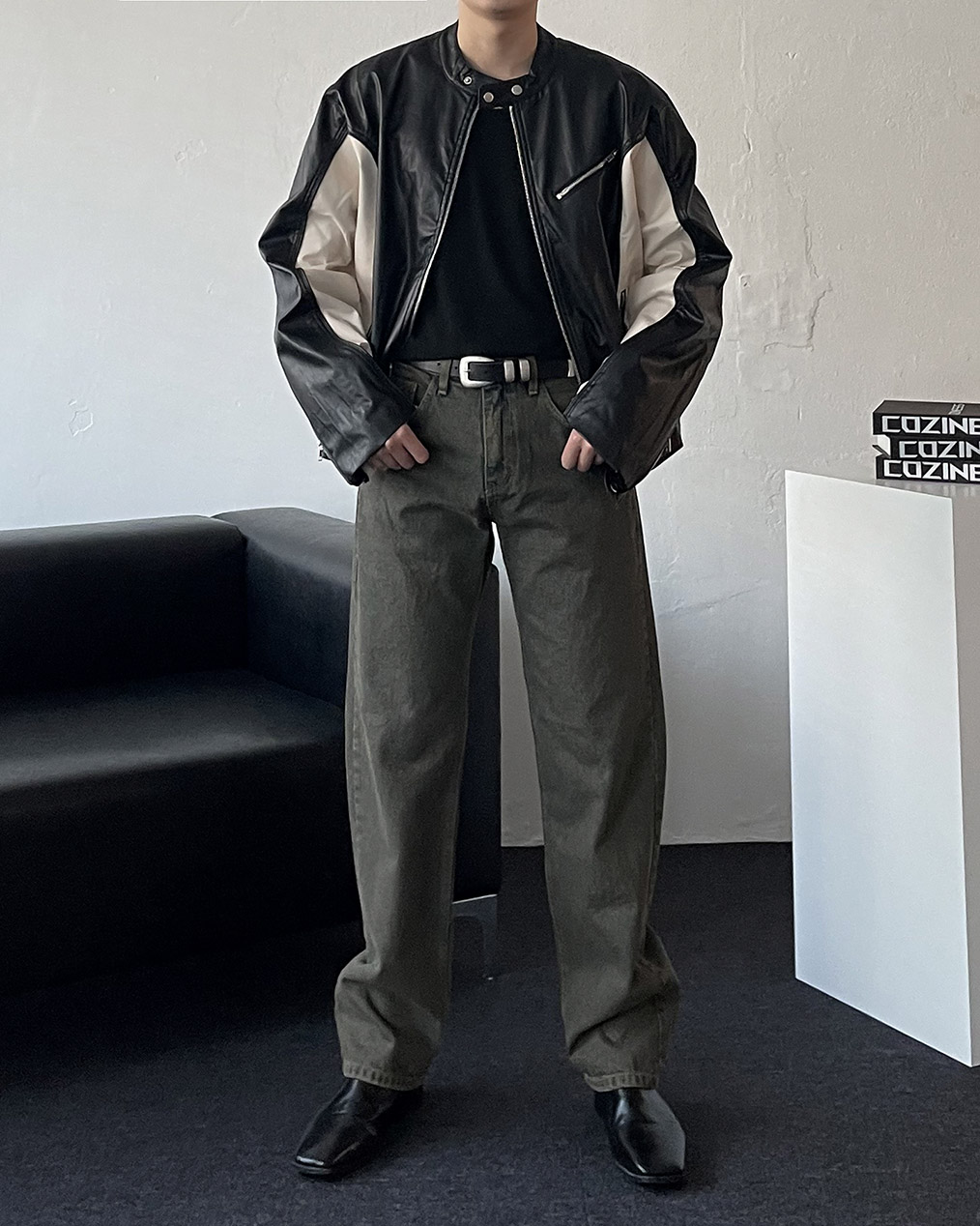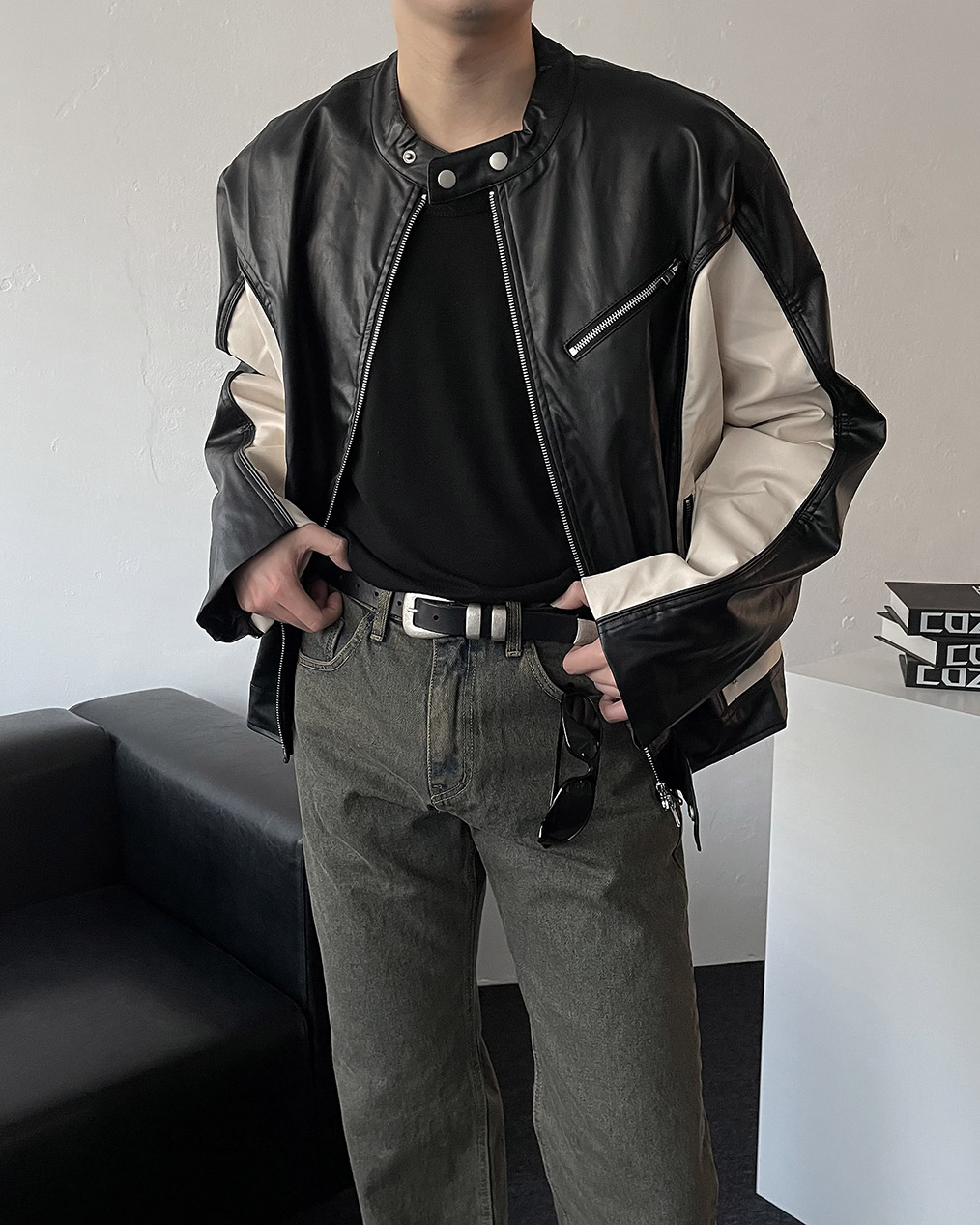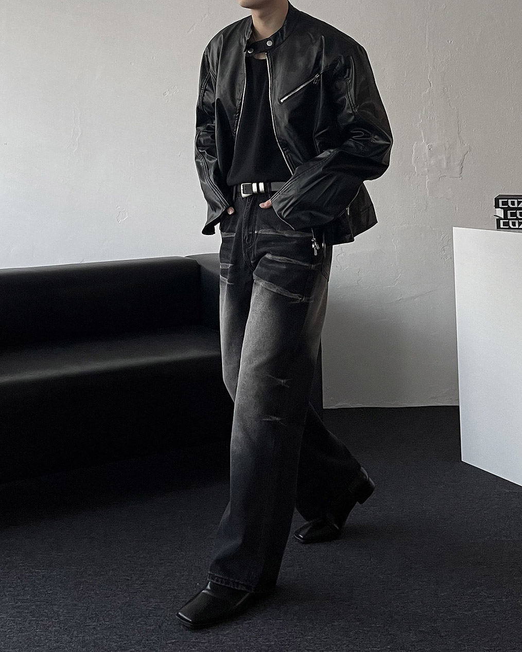 - 섹시, 시크한 무드의 차이나 카라 오버핏 라이더 자켓