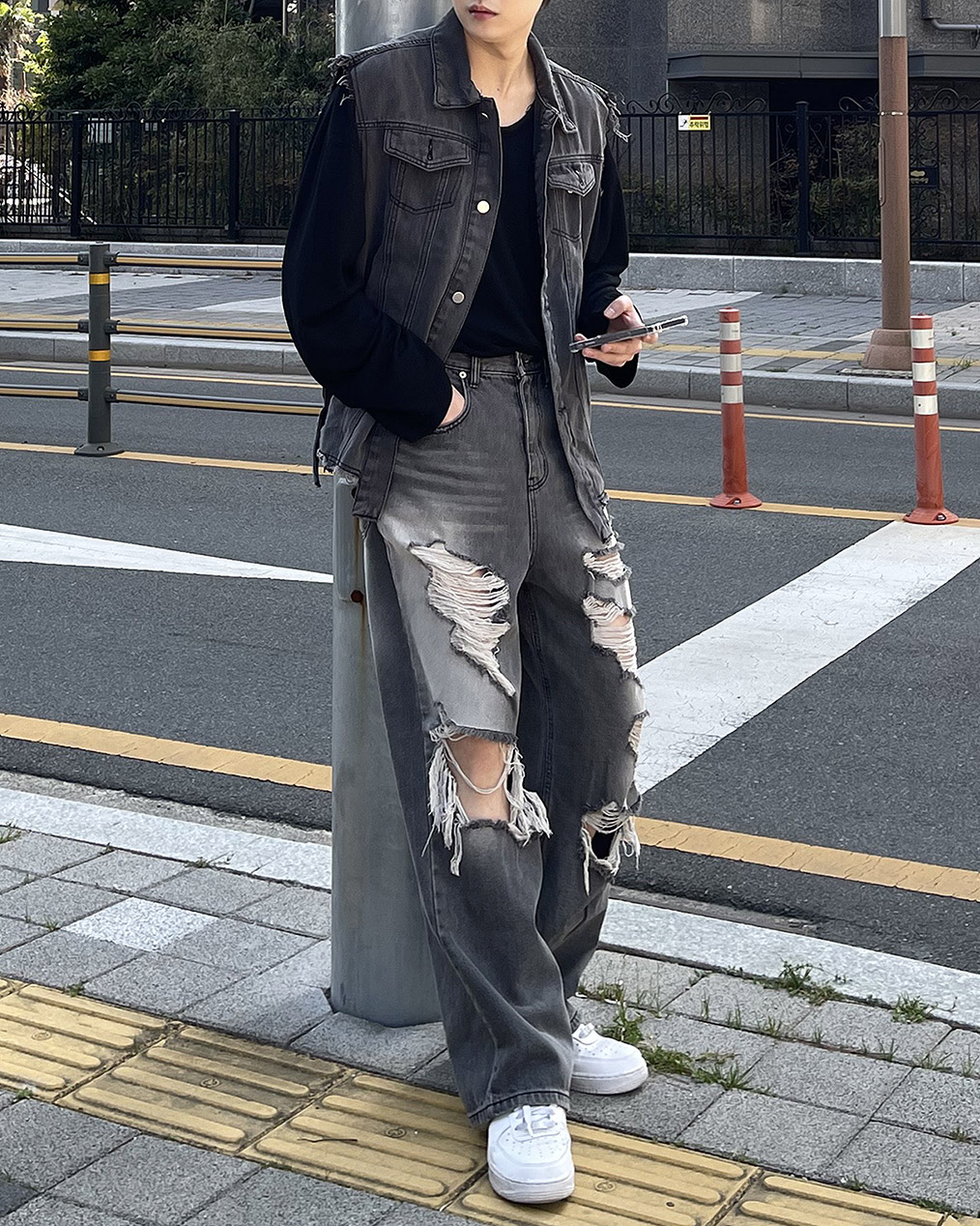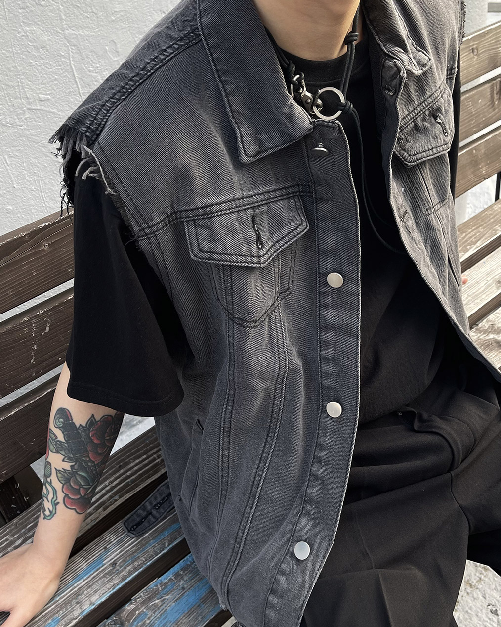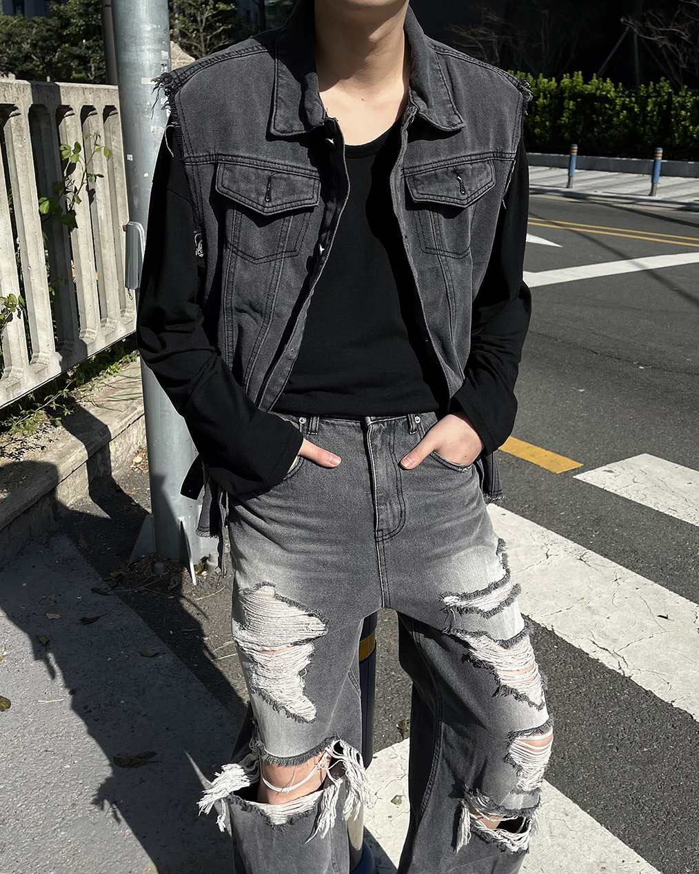 - 빈티지한 무드의 흑청 베스트