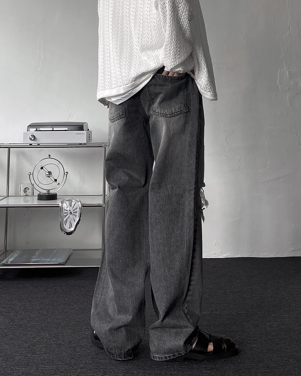 - 은은한 그레이 워싱으로 다양한 코디에 활용하기 좋은 데님 팬츠