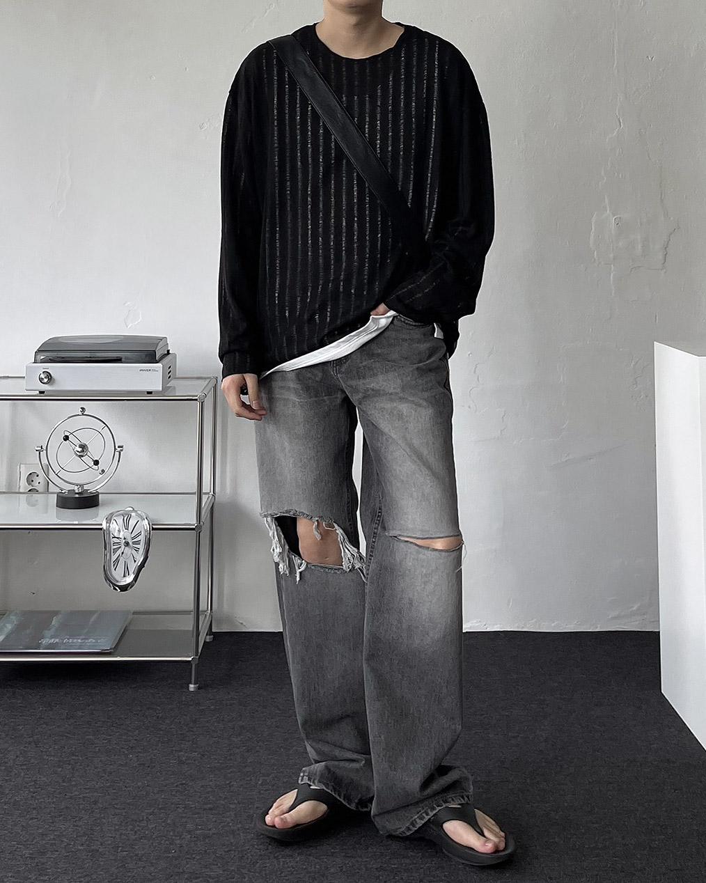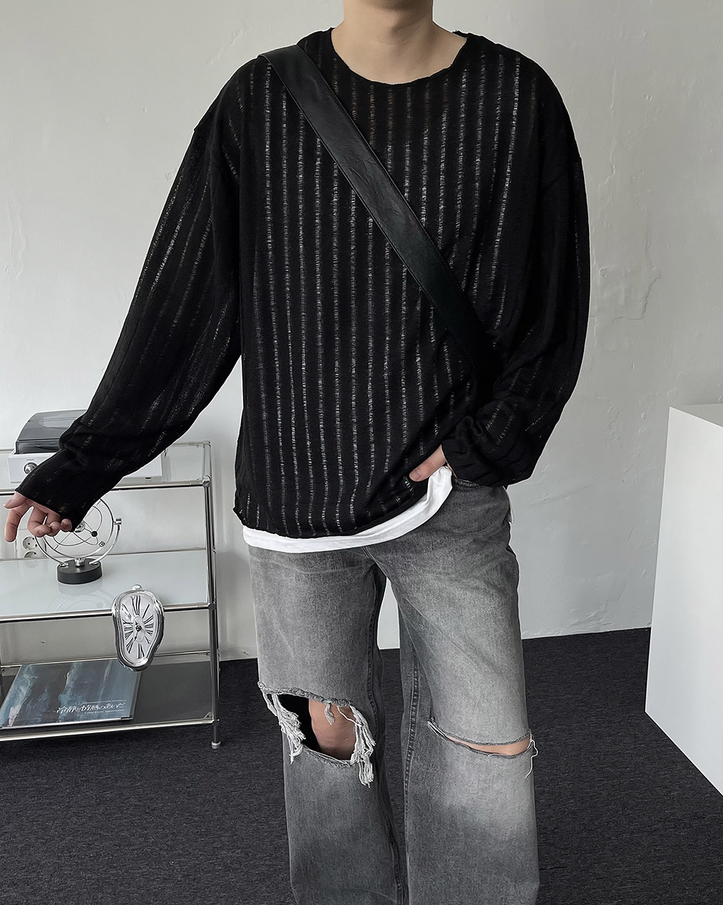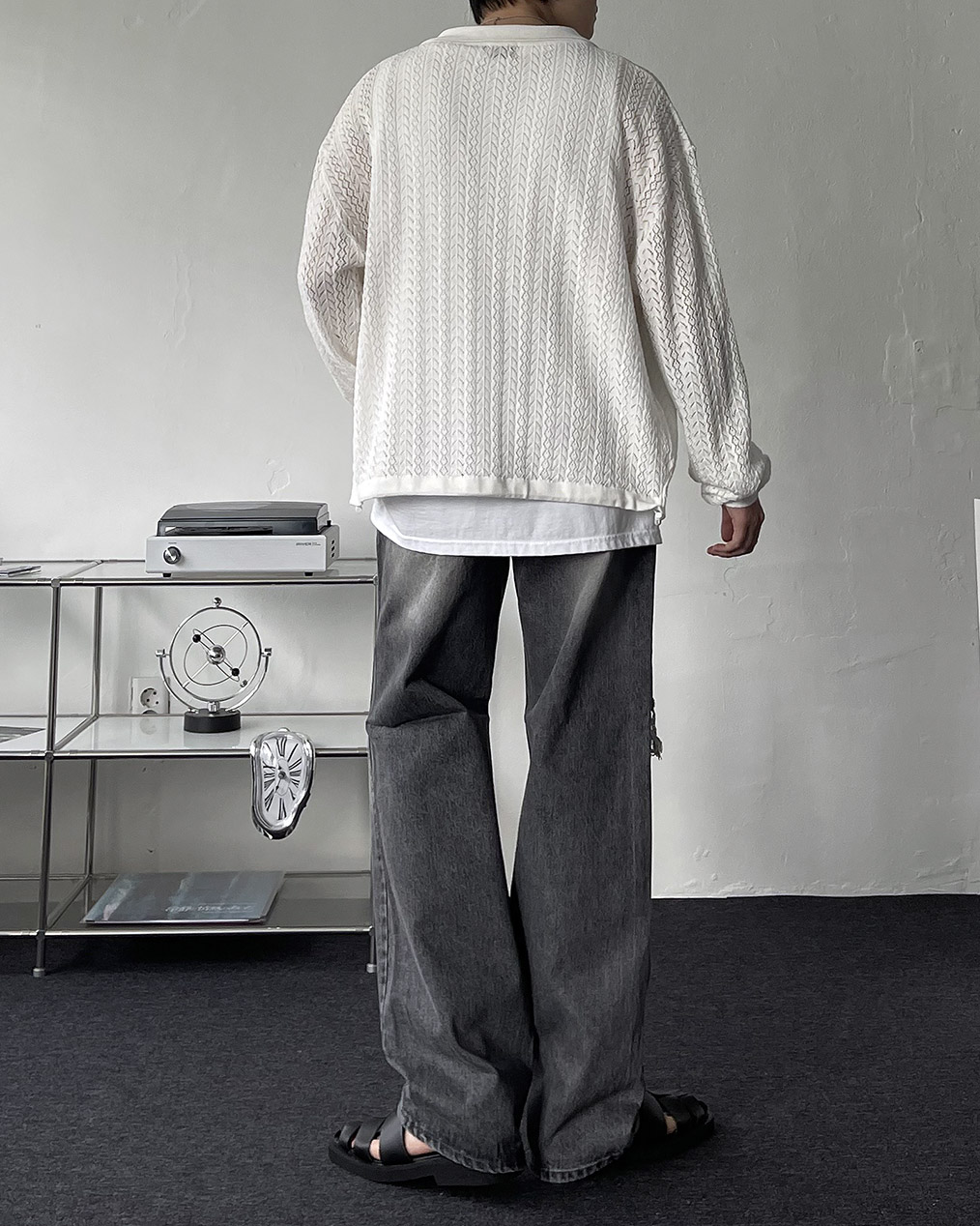 - 롱한 기장으로 밑단이 곱창 지는 루즈핏 실루엣