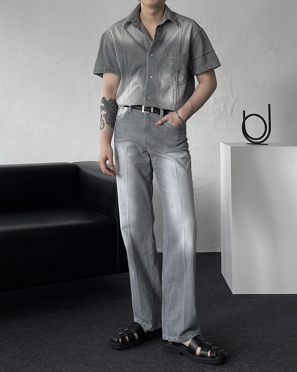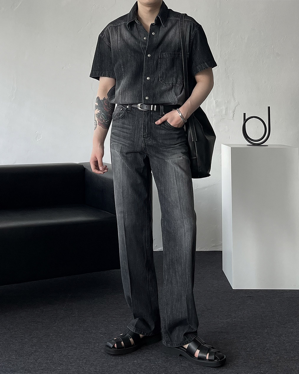 - 적당한 두께감에 시원한 쿨에버 소재로 제작, 여름 내내 착용하기 좋은 데님 반팔 셔츠