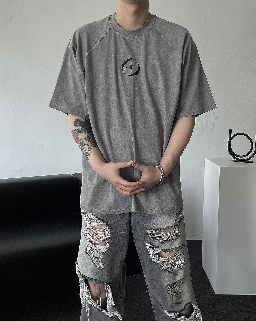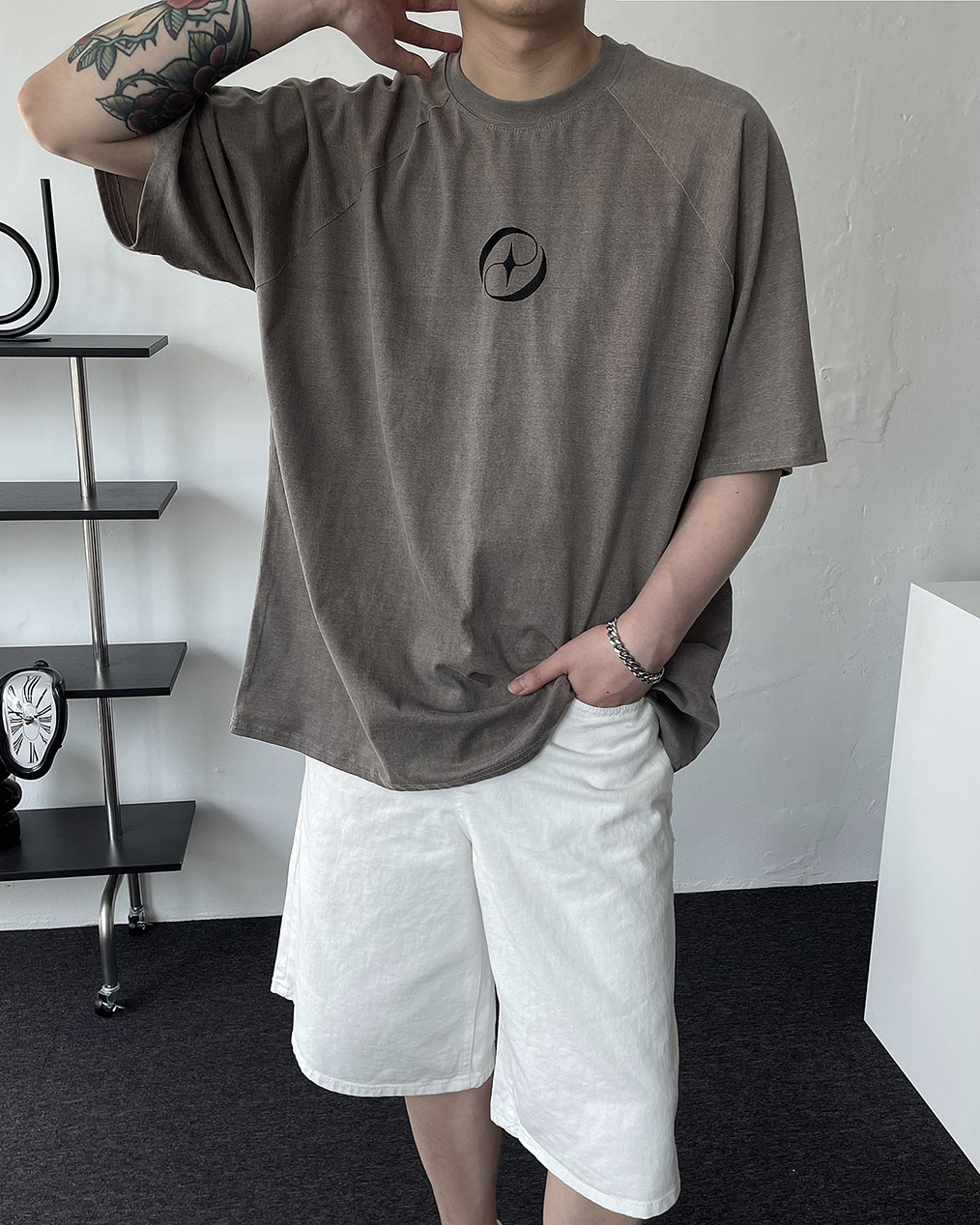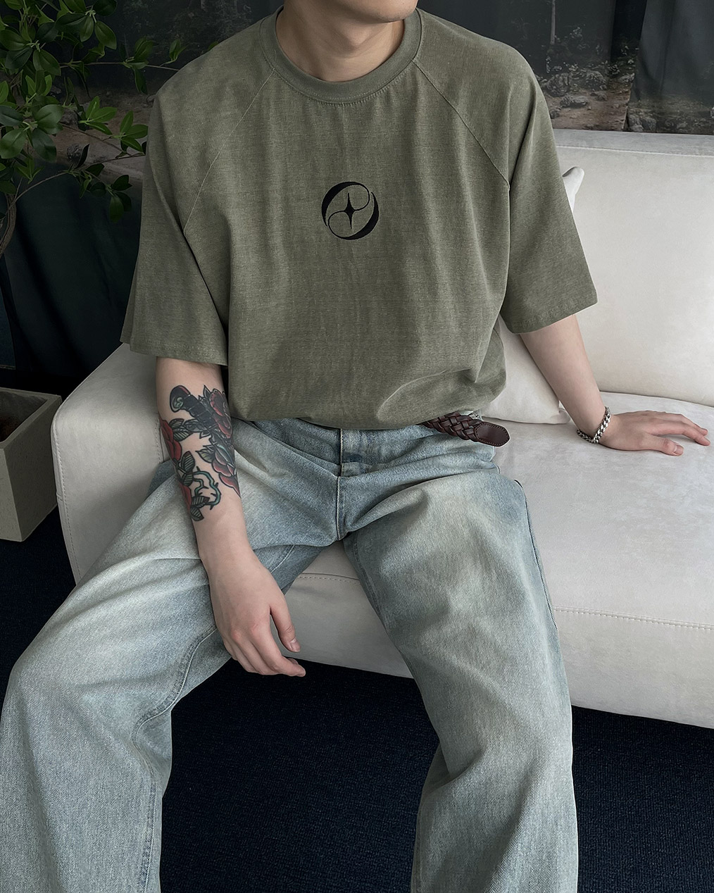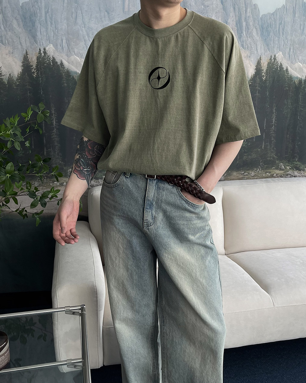 - 빈티지한 피그먼트 워싱 색상의 프린팅 반팔 티셔츠