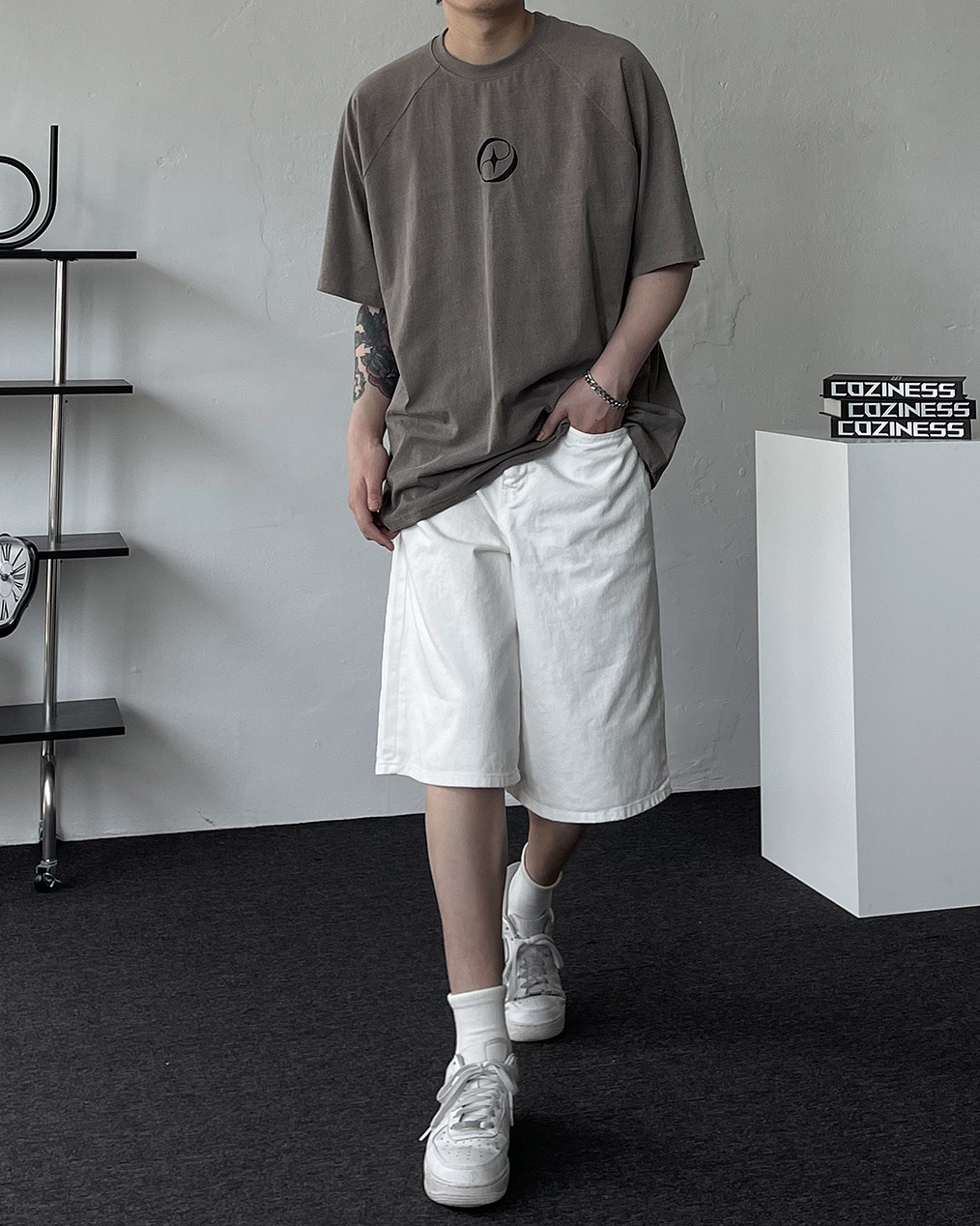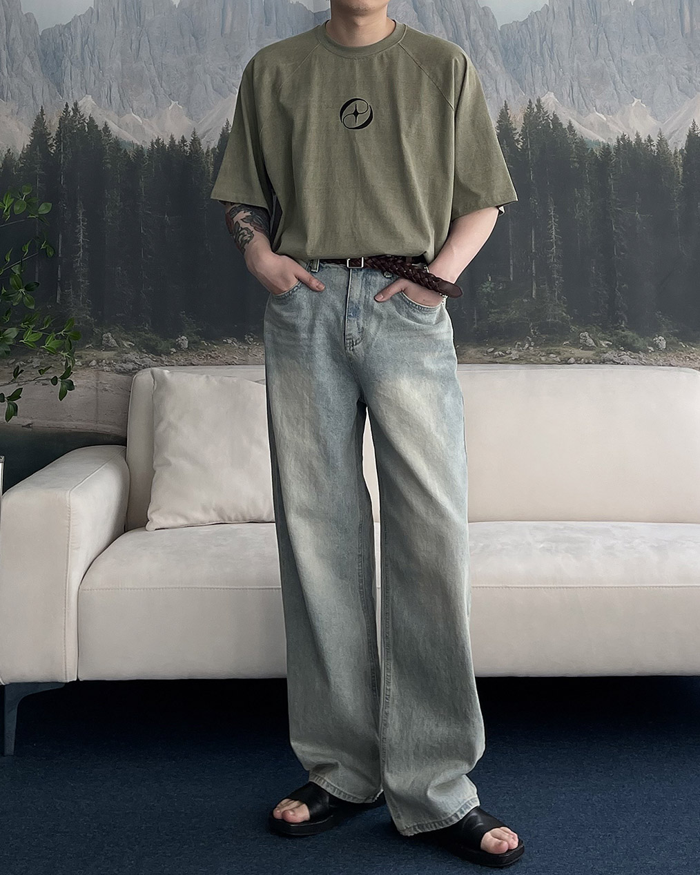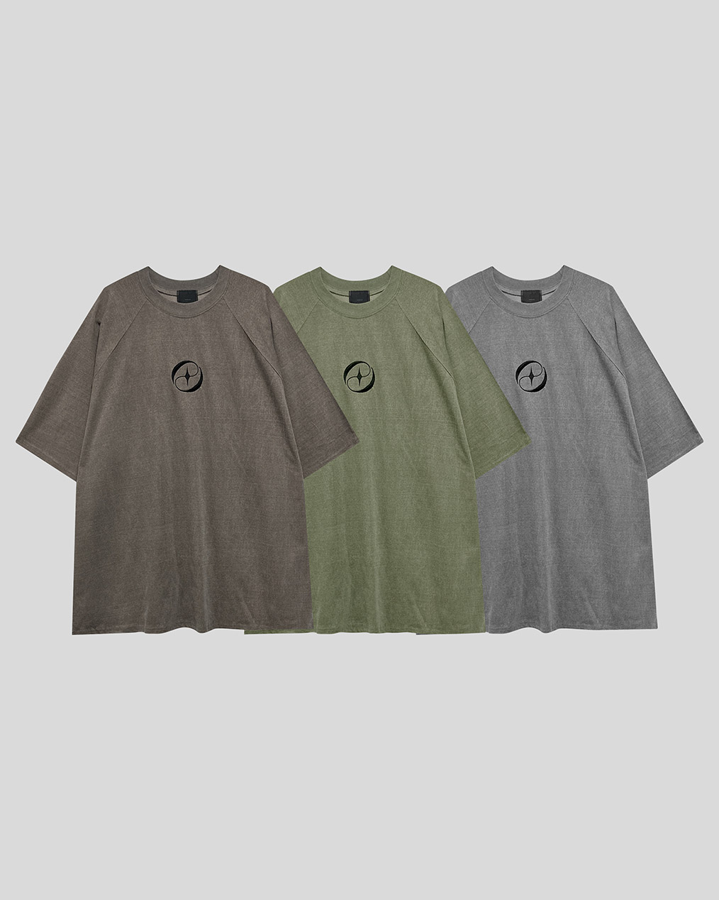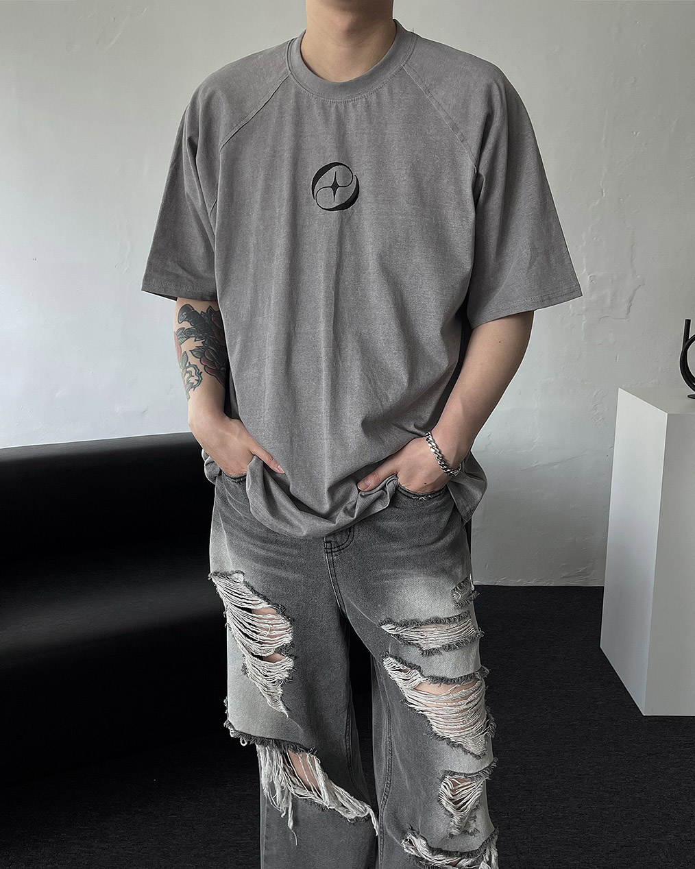 - 빈티지한 피그먼트 워싱 색상의 프린팅 반팔 티셔츠