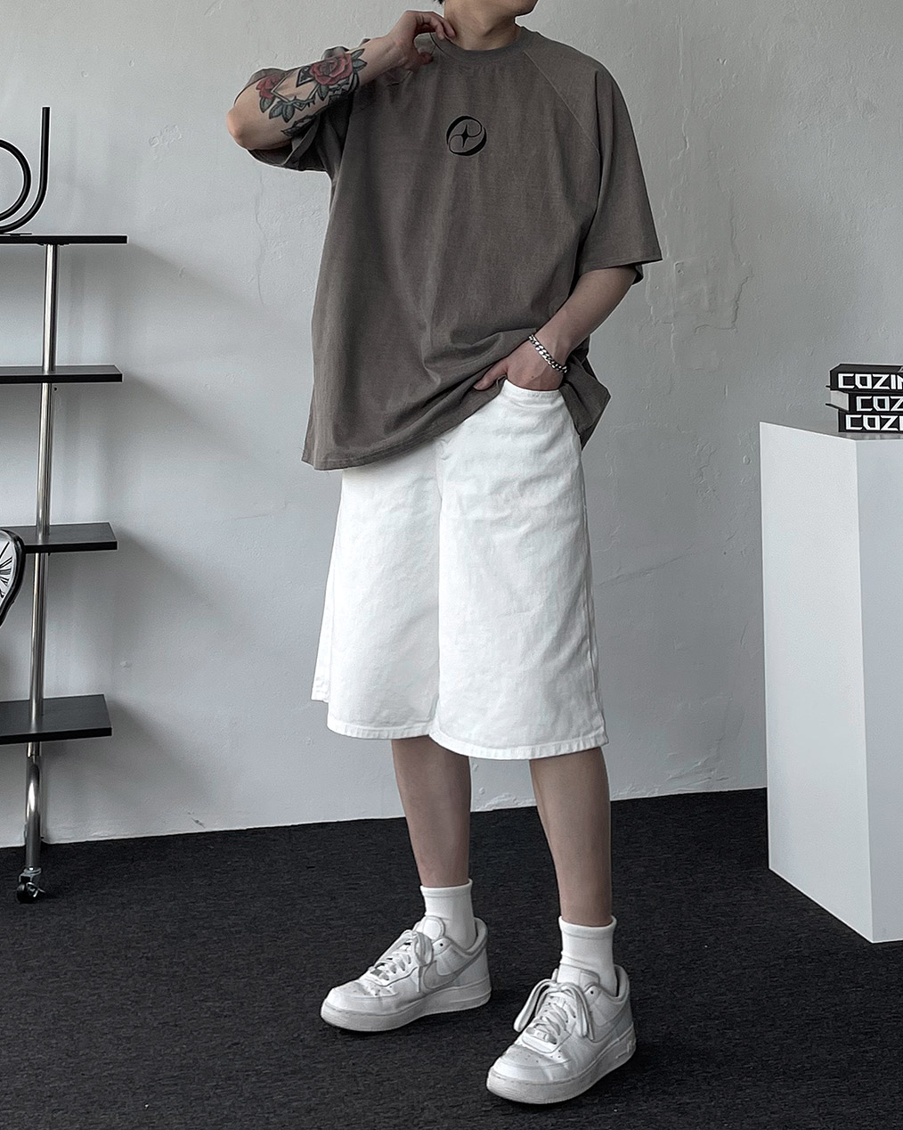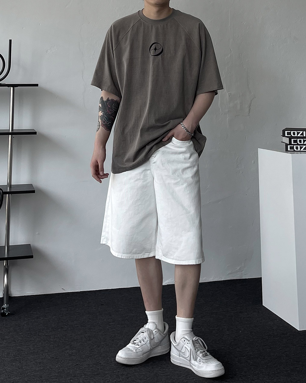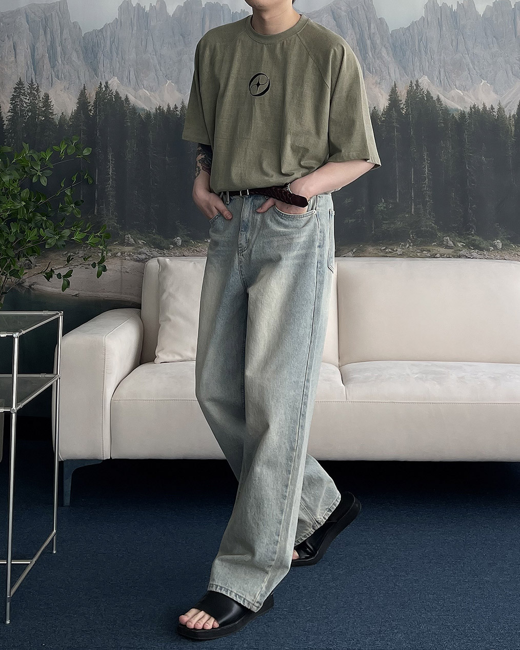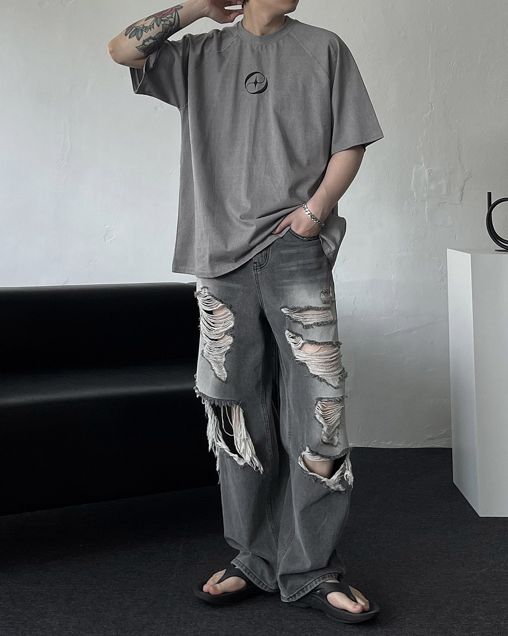 - 빈티지한 피그먼트 워싱 색상의 프린팅 반팔 티셔츠