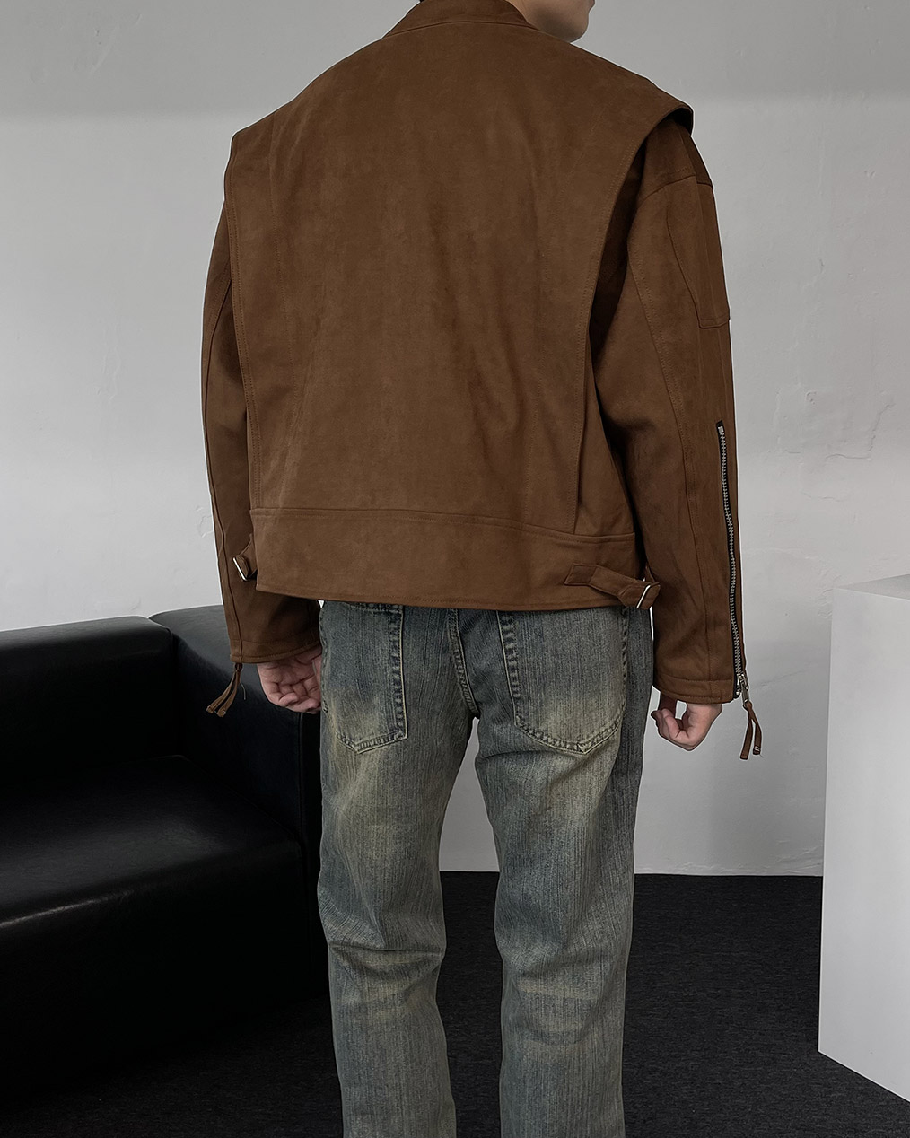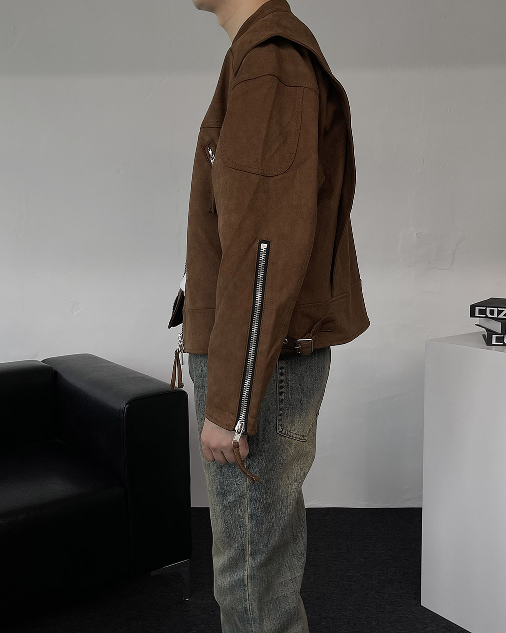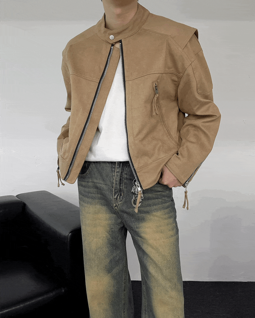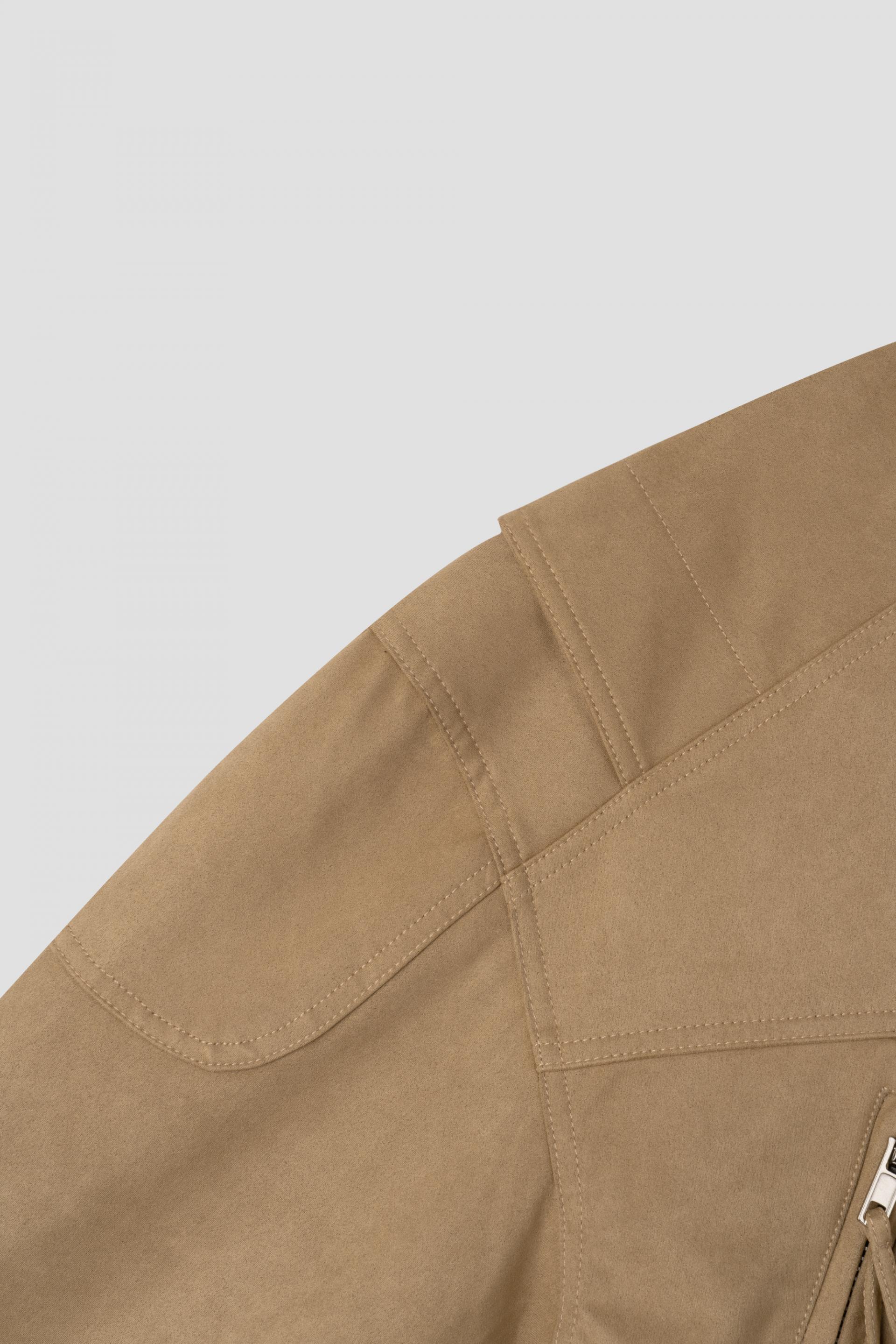 - 톤 다운된 컬러와 디테일이 돋보이는 스웨이드 크롭 자켓