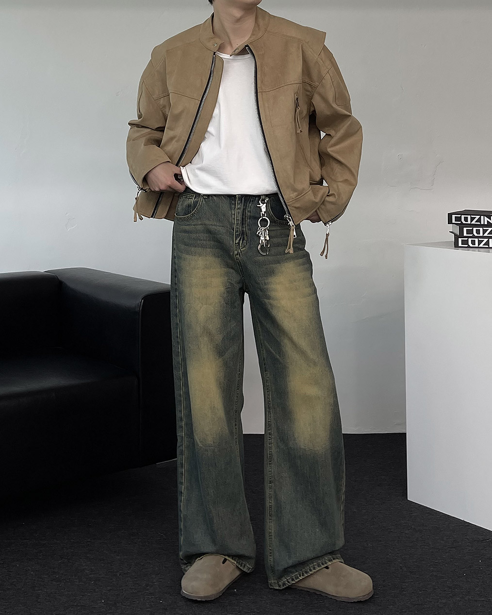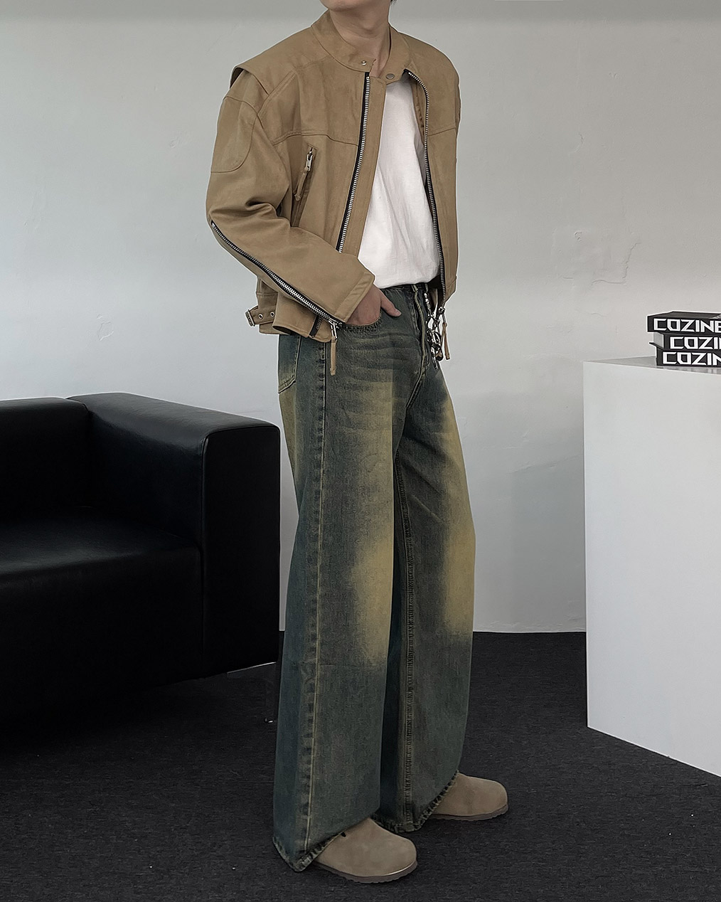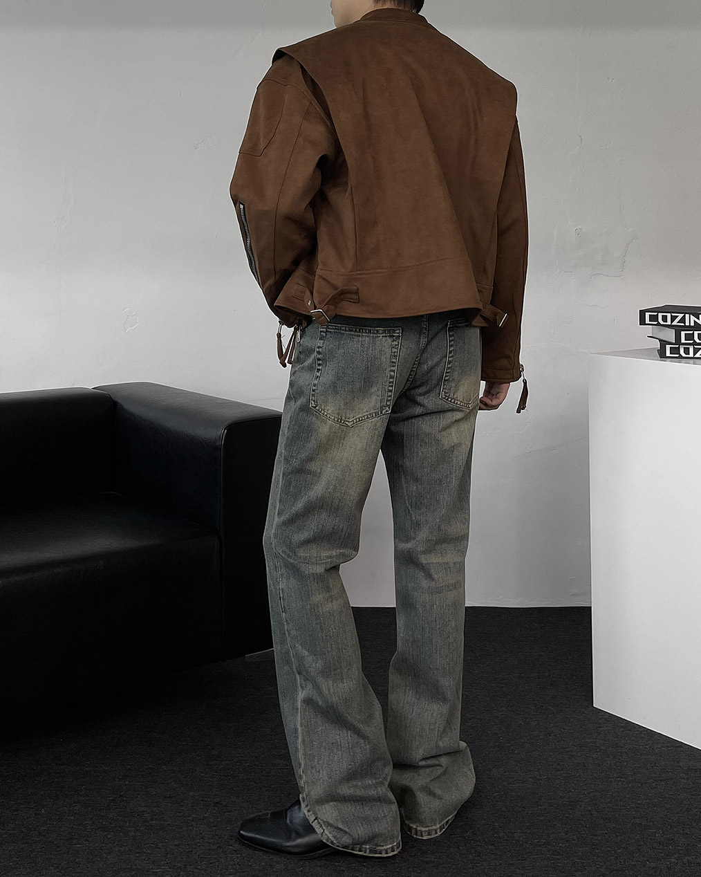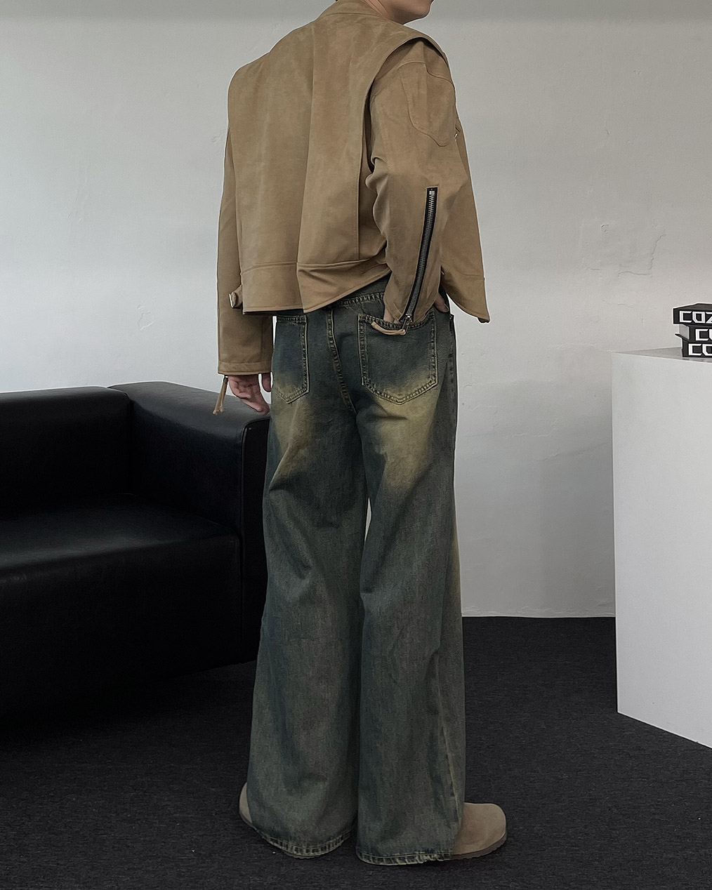 - 톤 다운된 컬러와 디테일이 돋보이는 스웨이드 크롭 자켓