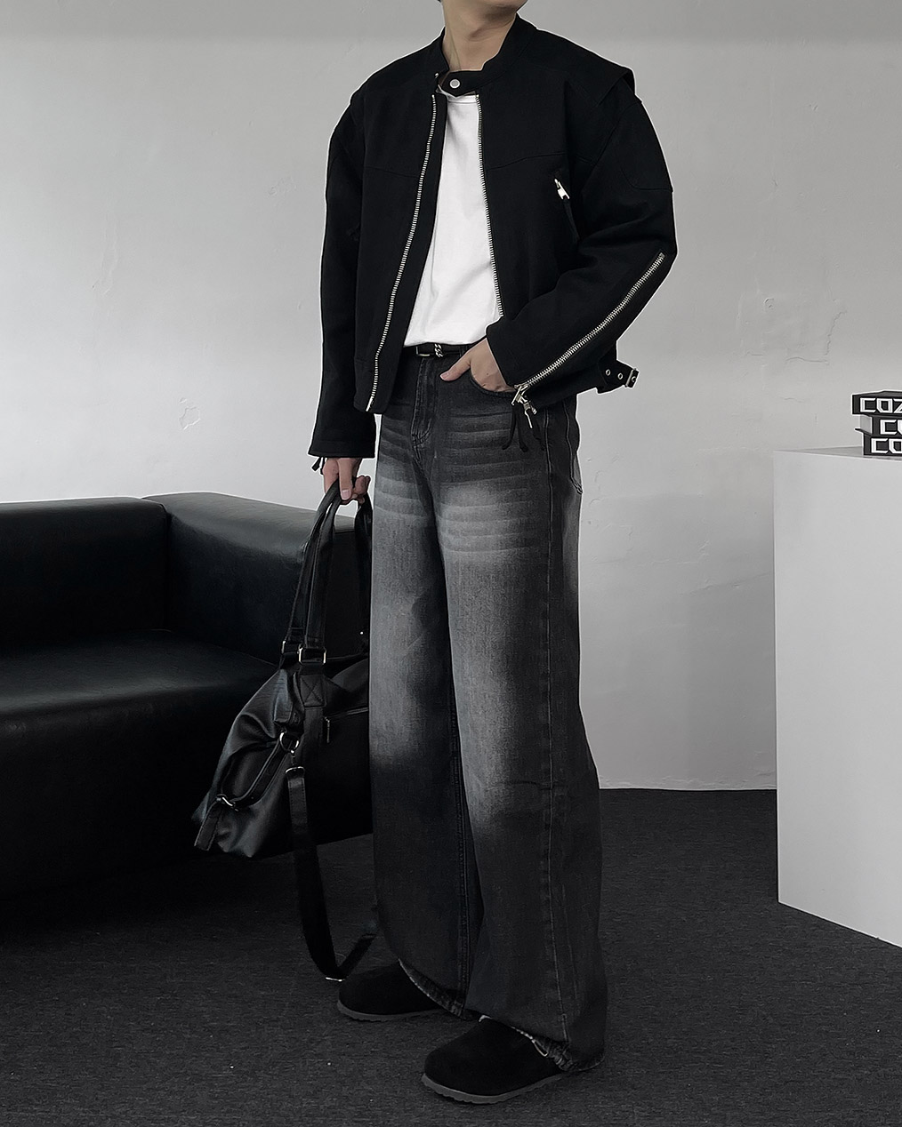 - 바이커 재킷 디자인에 크롭 기장