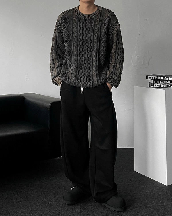- 4계절용, 기모 2가지 버전으로 제작된 사이드 스냅 디테일이 매력적인 밴딩 와이드 팬츠