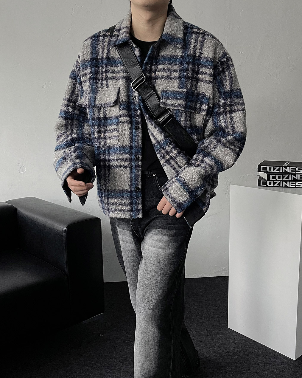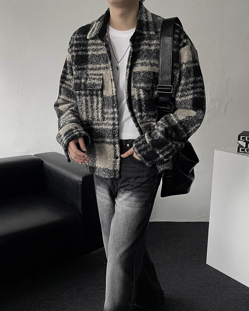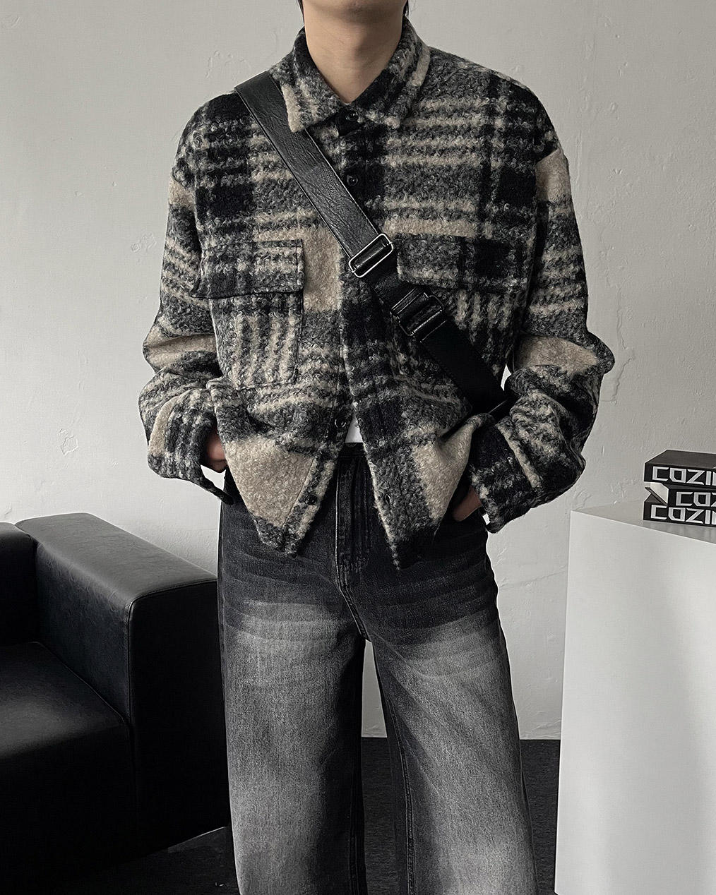 - 타탄체크, 전면 포켓 디테일