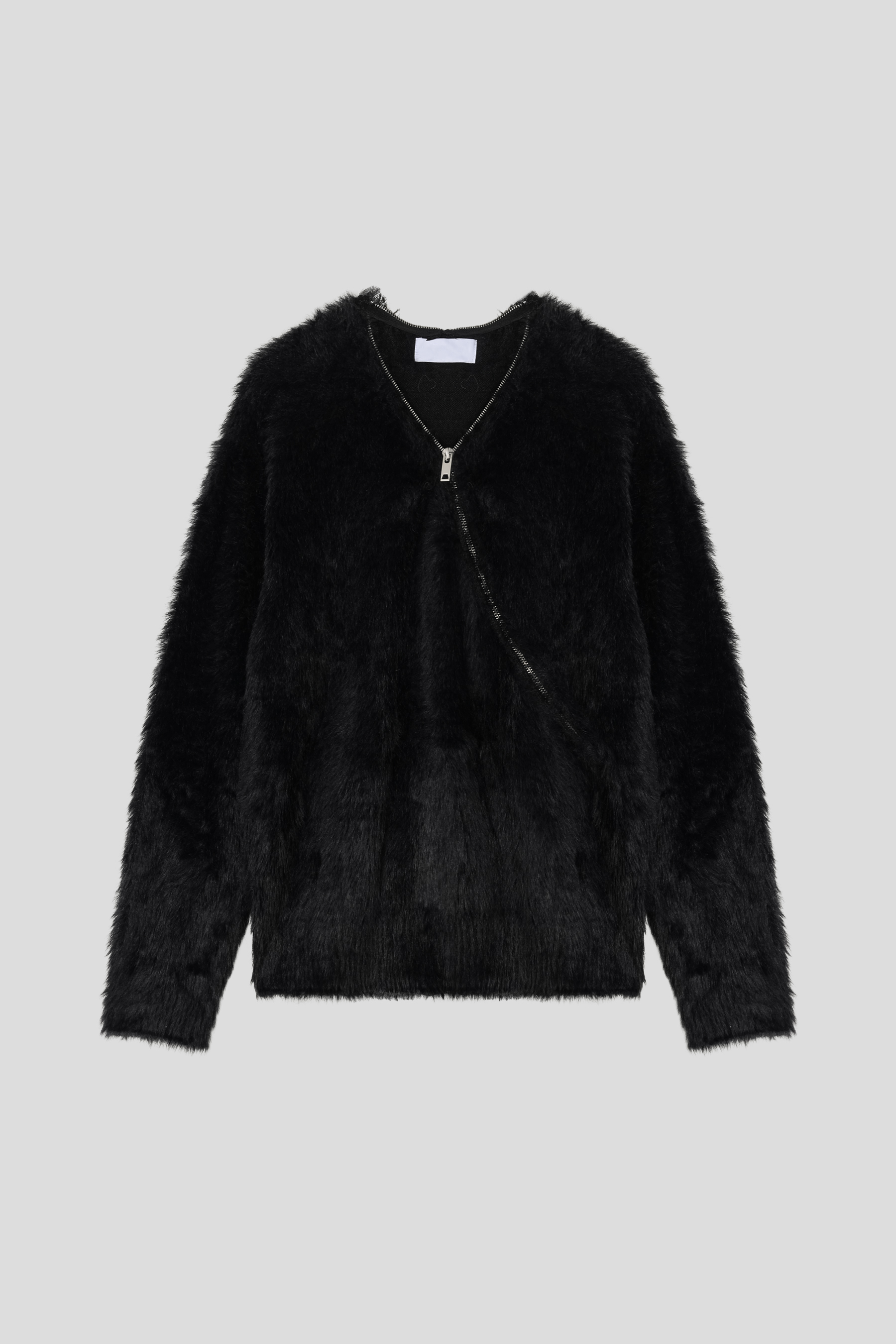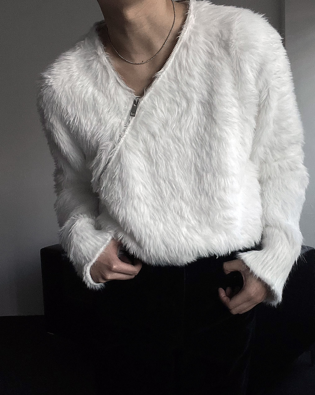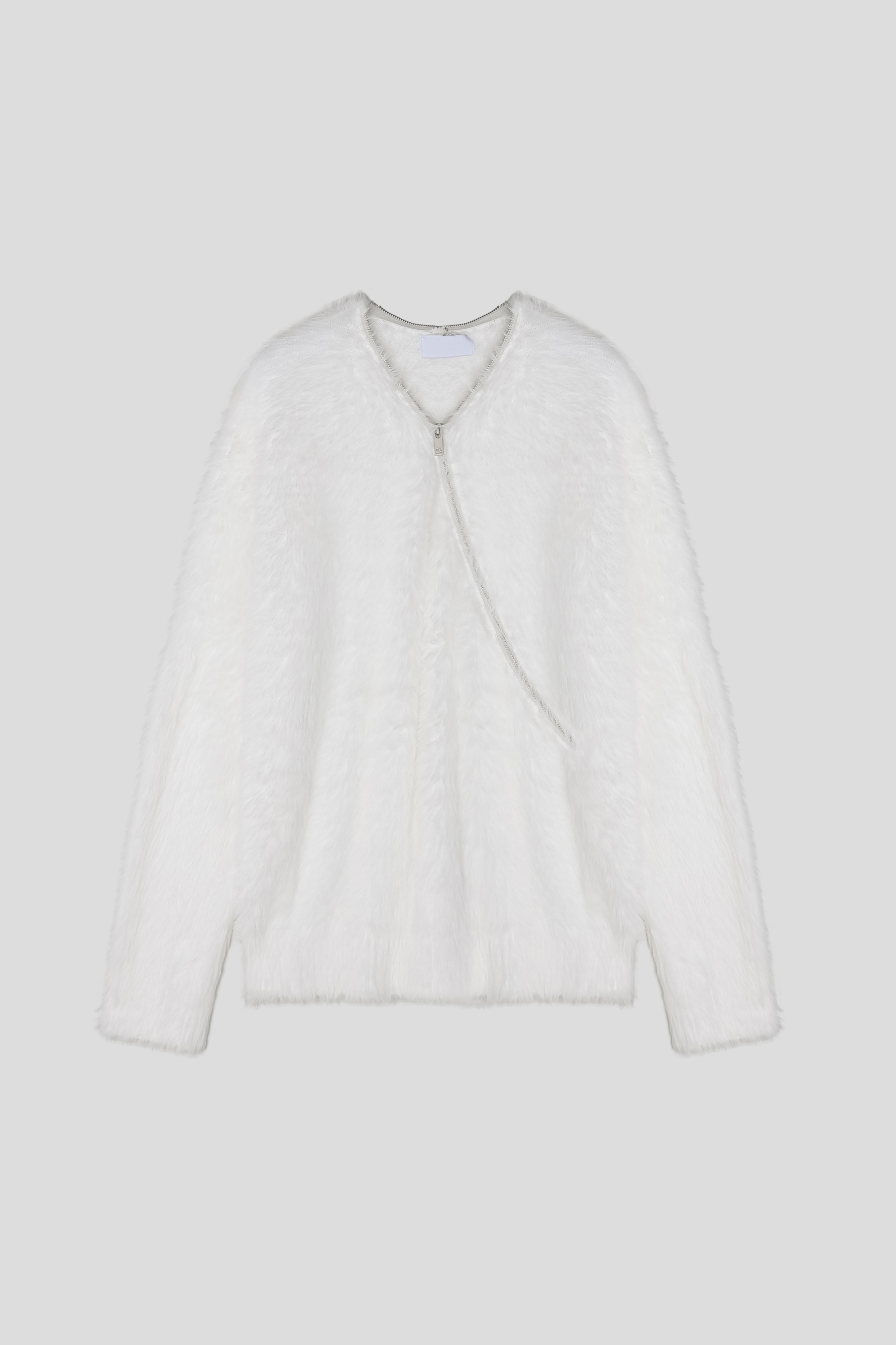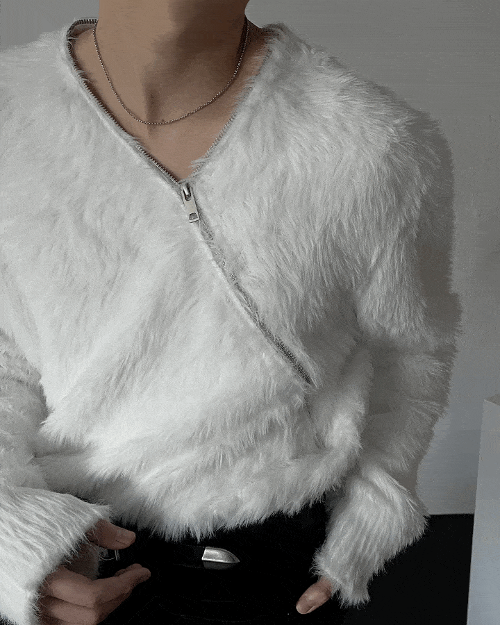 - 넥 라인 사선 지퍼 디테일이 유니크한 앙고라 니트