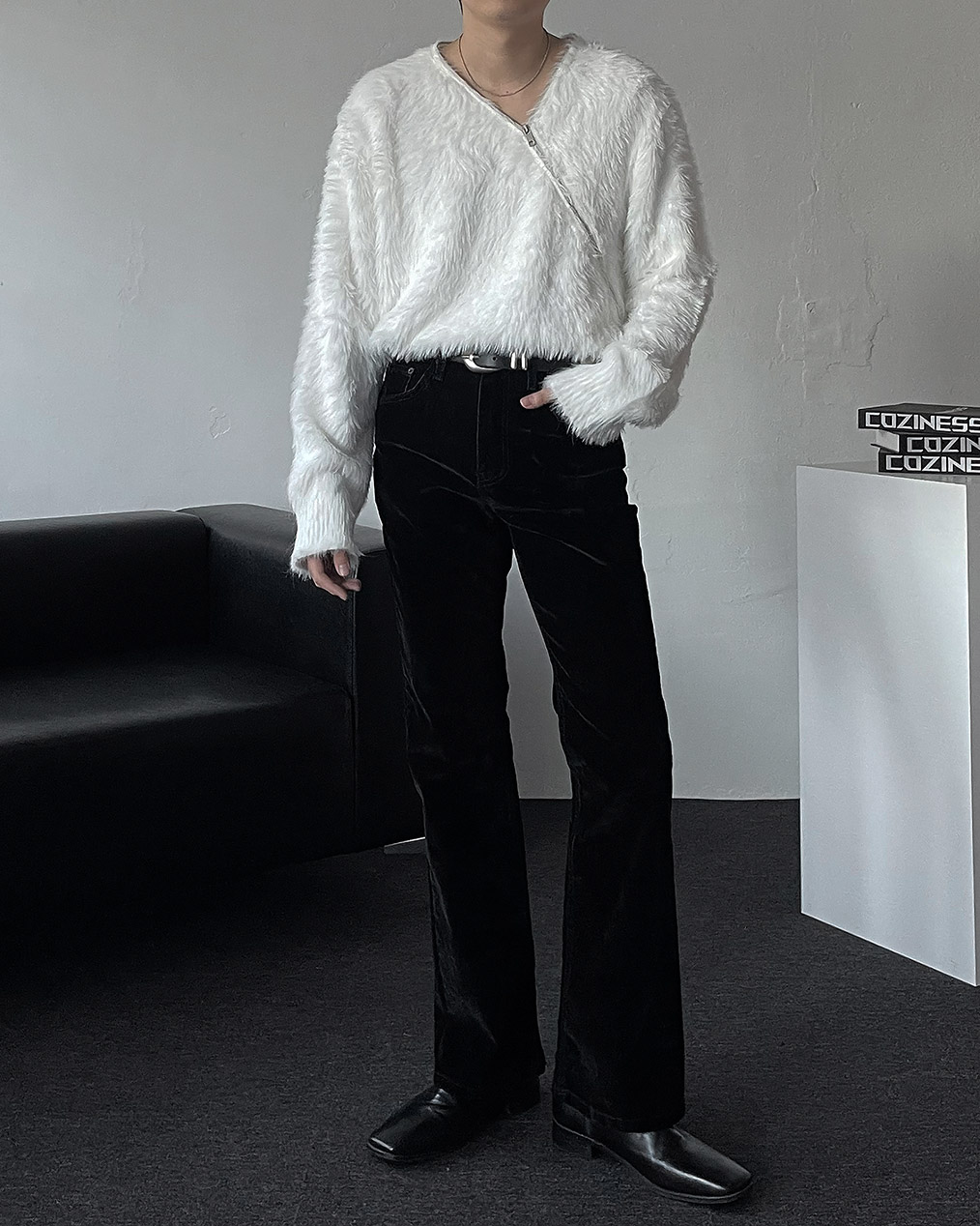 - 루즈핏 실루엣, 부드러운 퍼 텍스처가 매력적