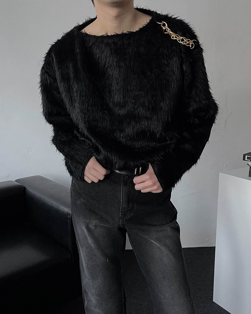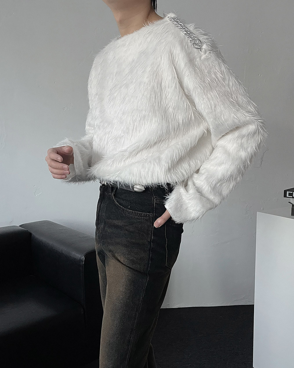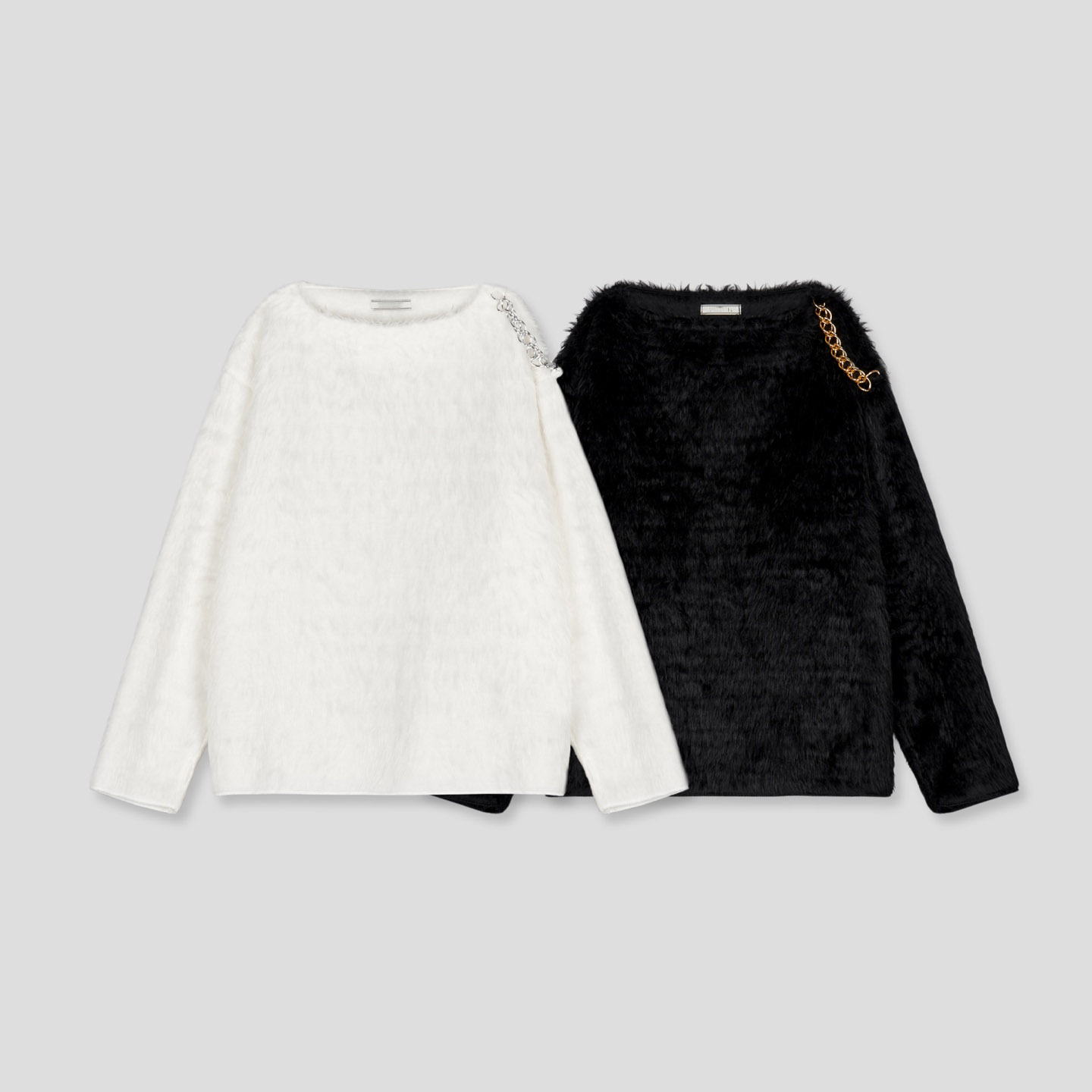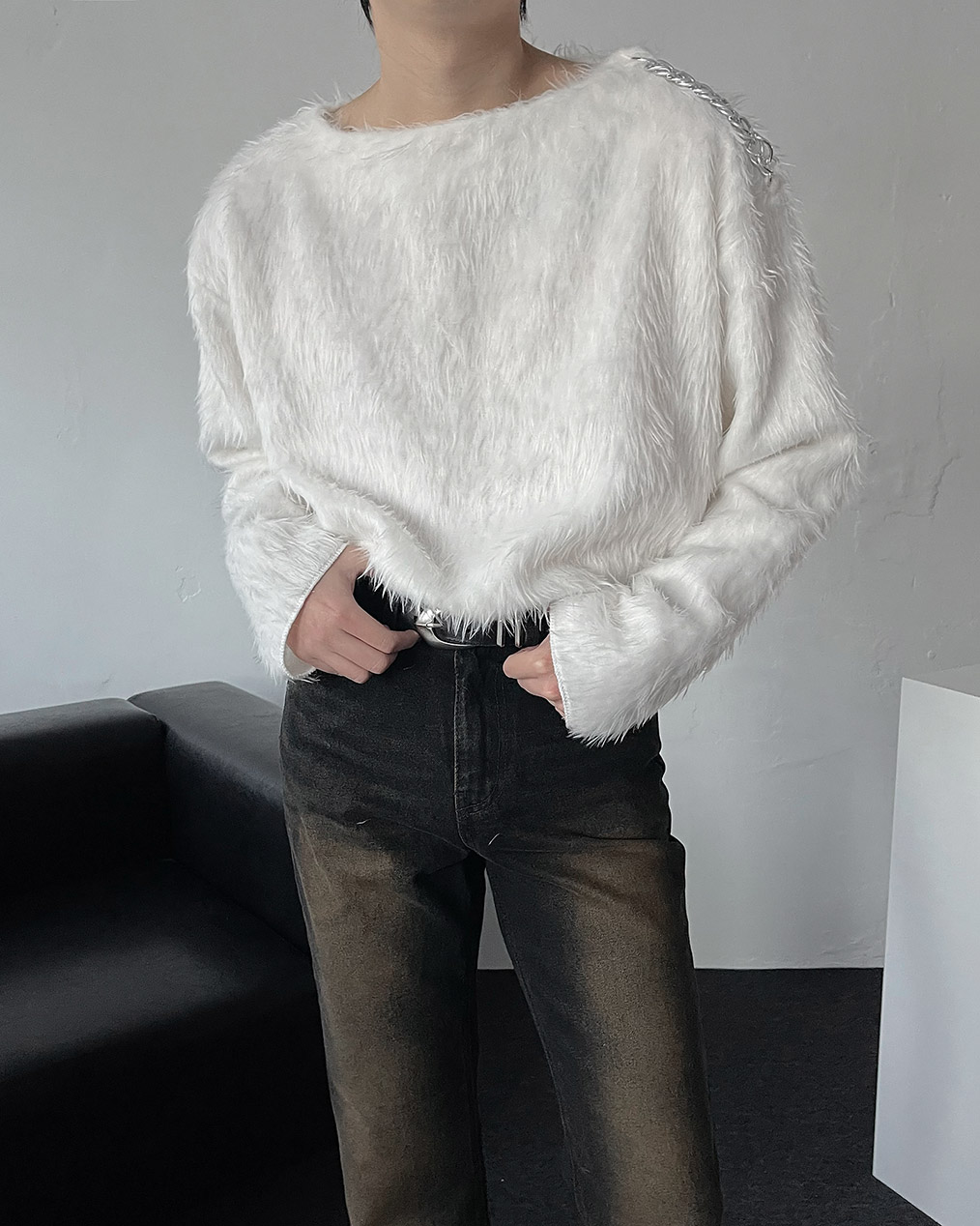 - 어깨 체인 디테일이 유니크해 포인트 주기 좋은 헤어리 앙고라 니트