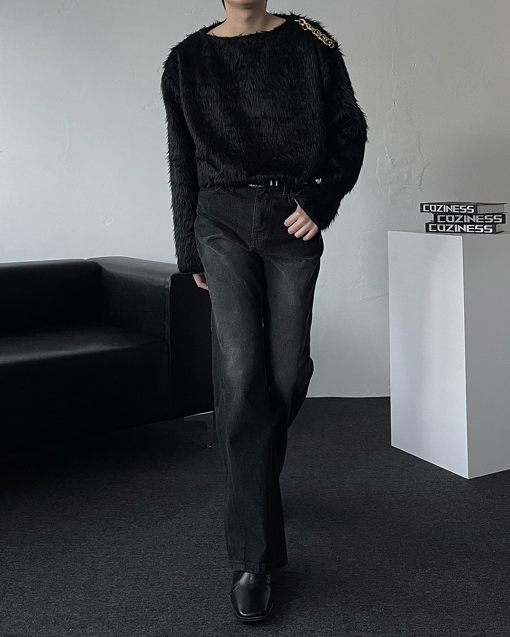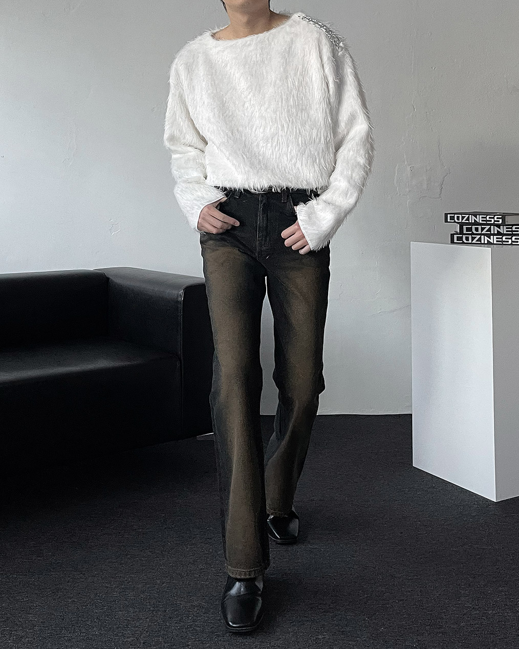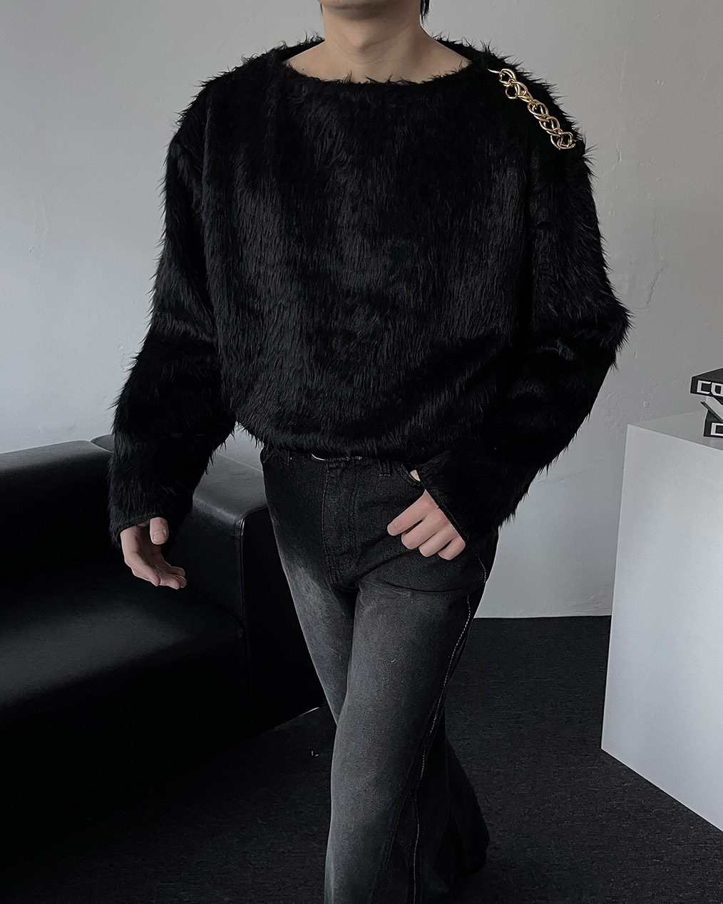 - 어깨 체인 디테일이 유니크해 포인트 주기 좋은 헤어리 앙고라 니트