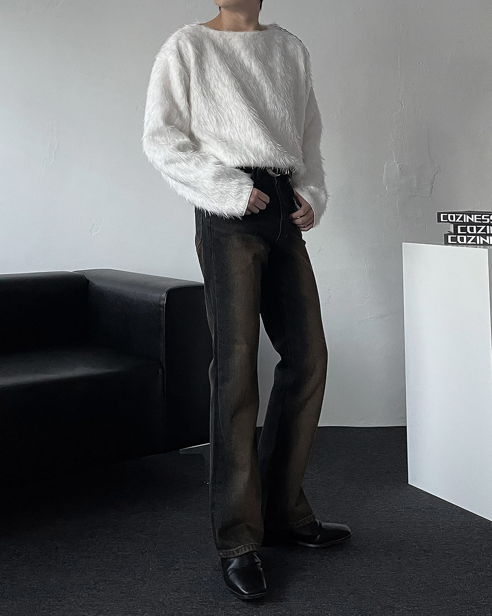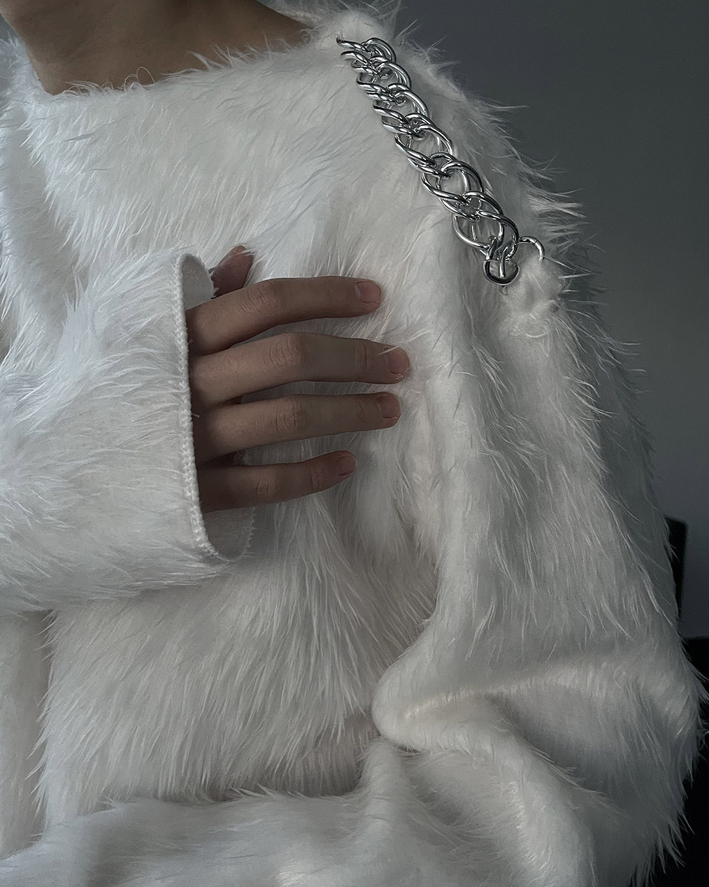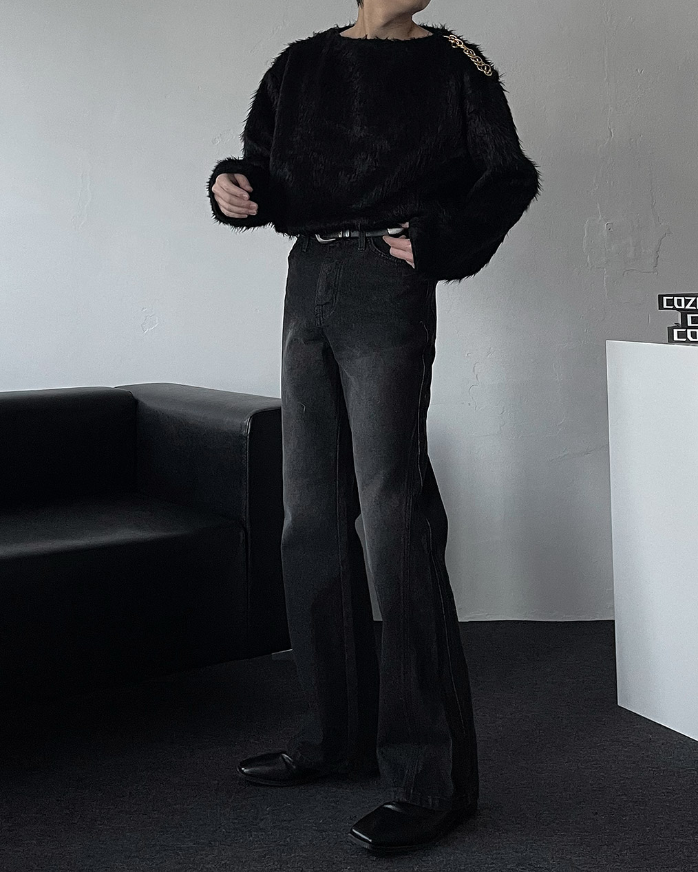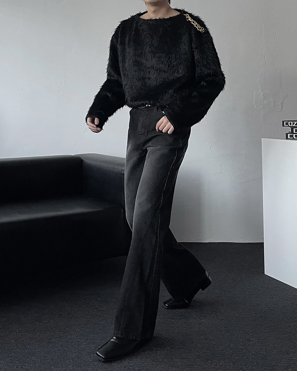 - 어깨 체인 디테일이 유니크해 포인트 주기 좋은 헤어리 앙고라 니트