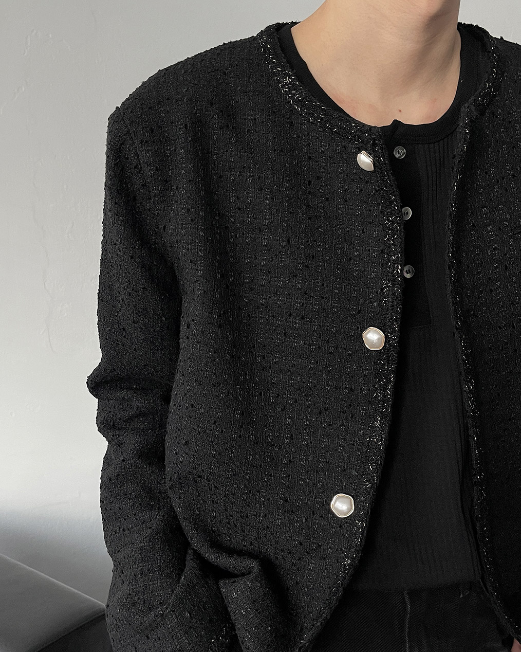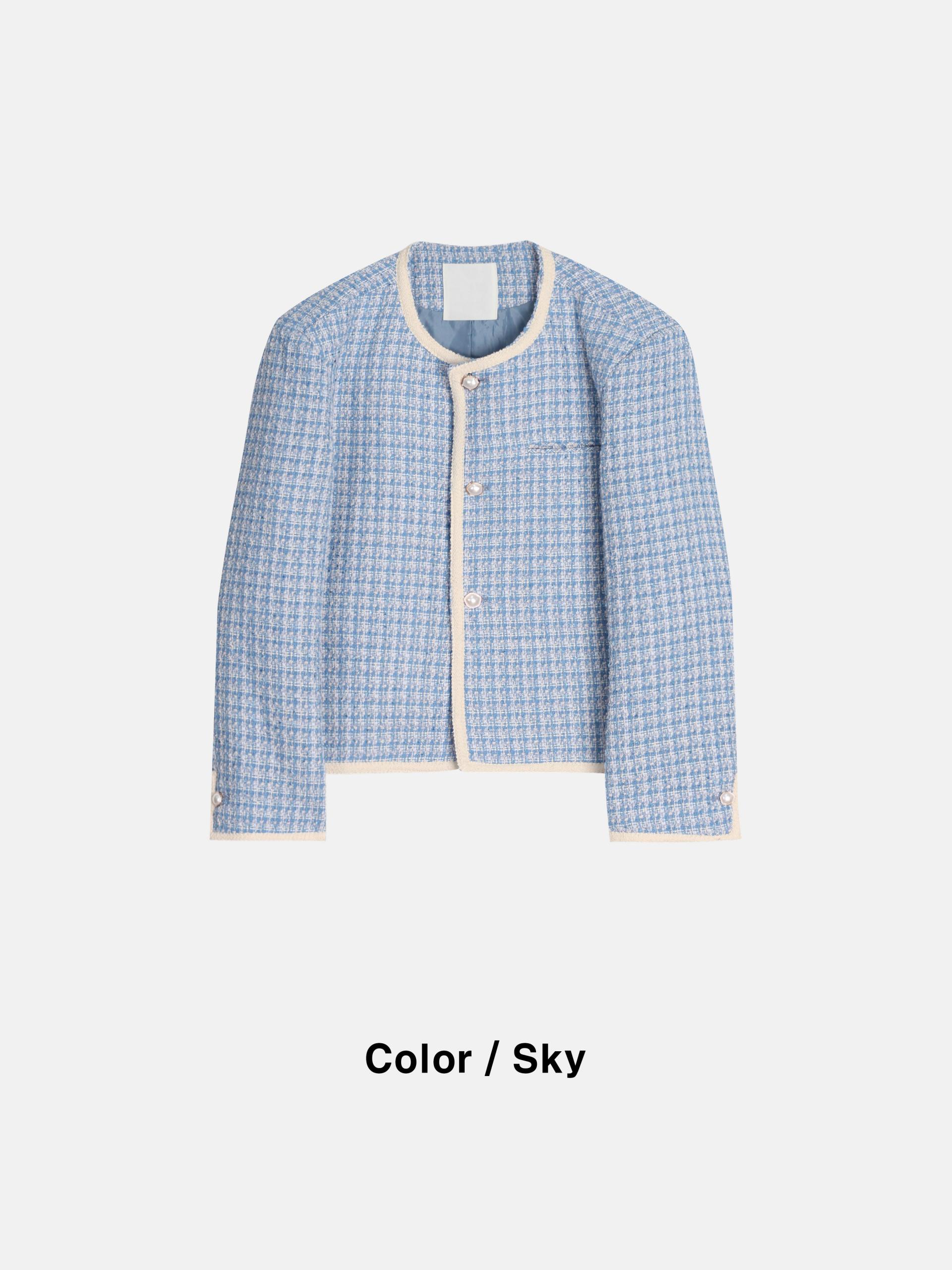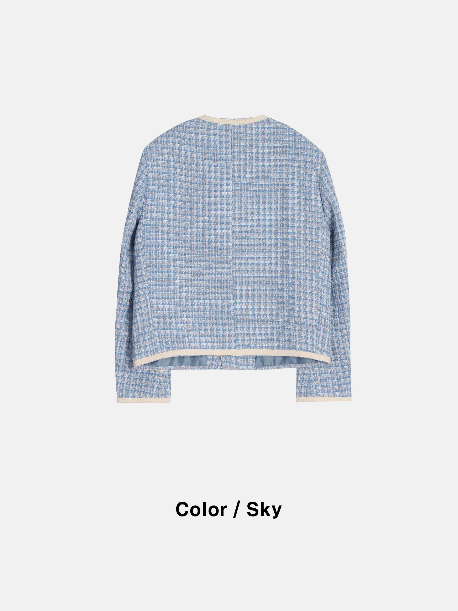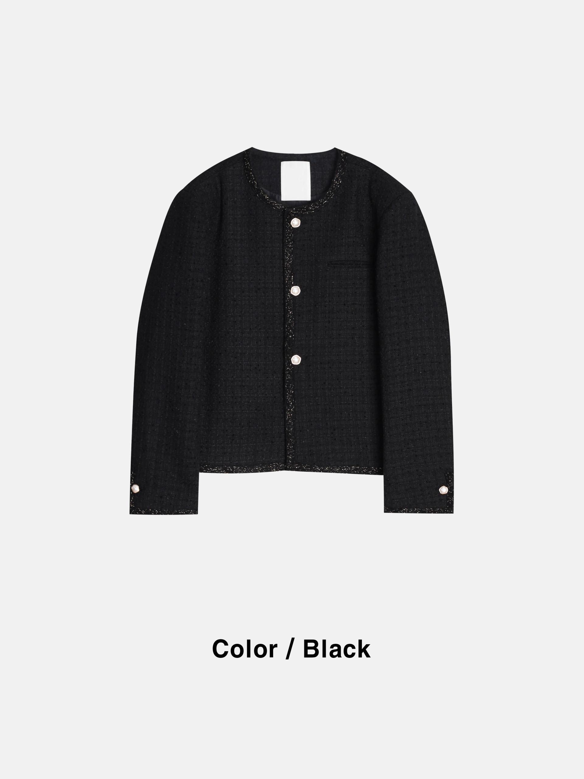 - 브랜드 퀄리티로 제작된 노카라 라운드 트위드 자켓