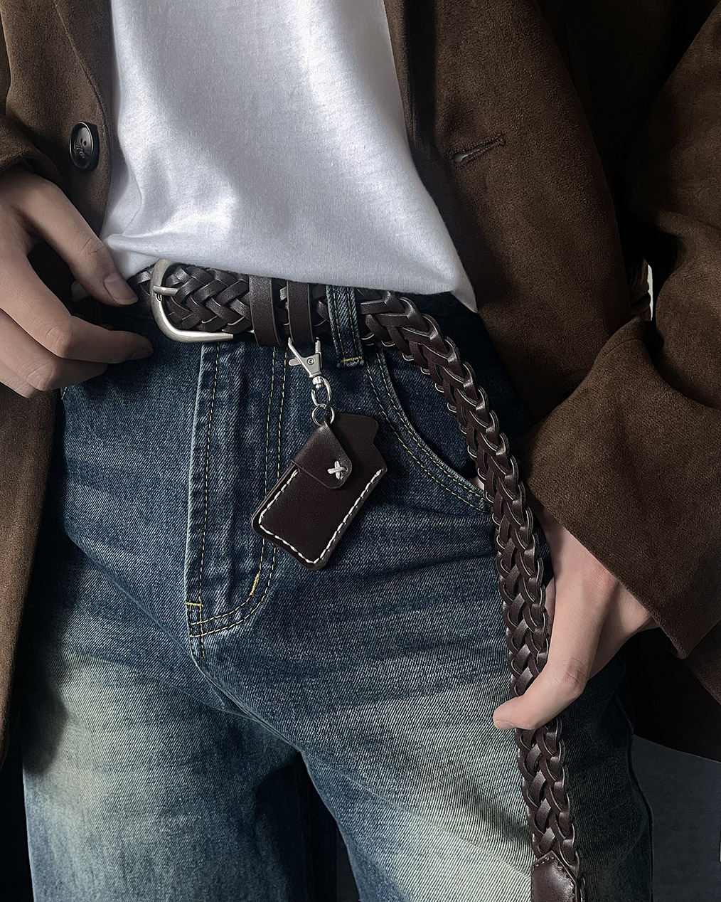 - 위빙 패턴의 레더 벨트