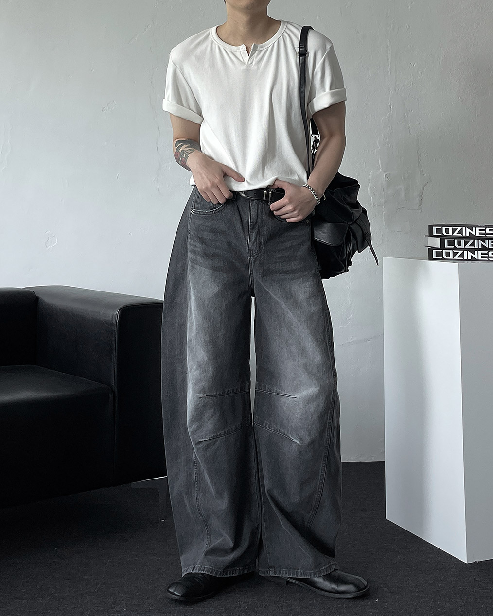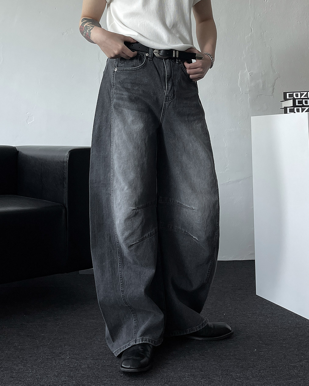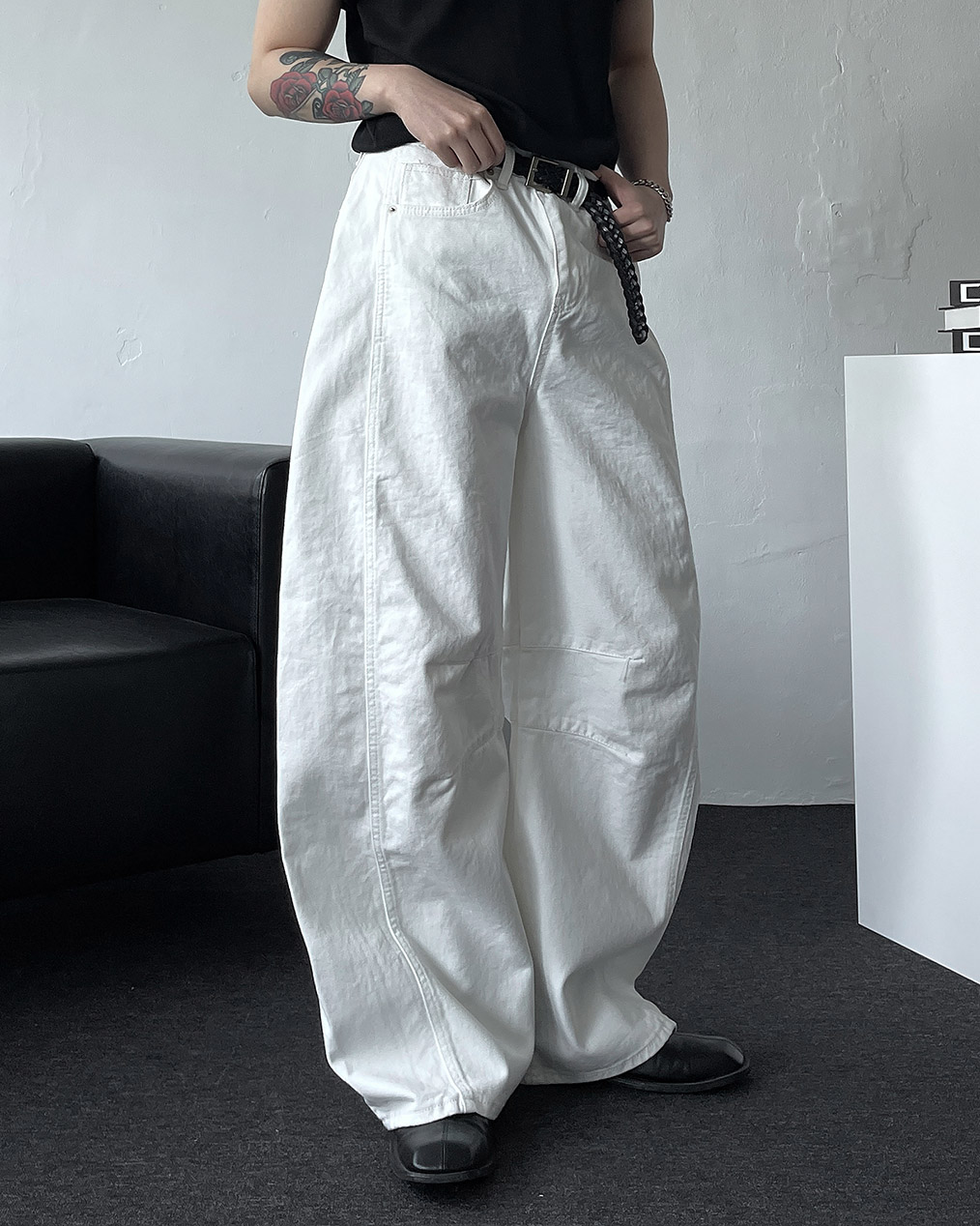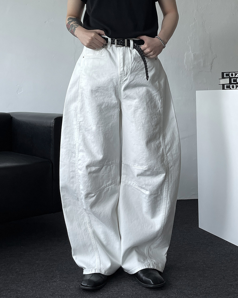 - 세련된 실루엣과 트렌디한 무드를 더한 벌룬 와이드 데님 팬츠